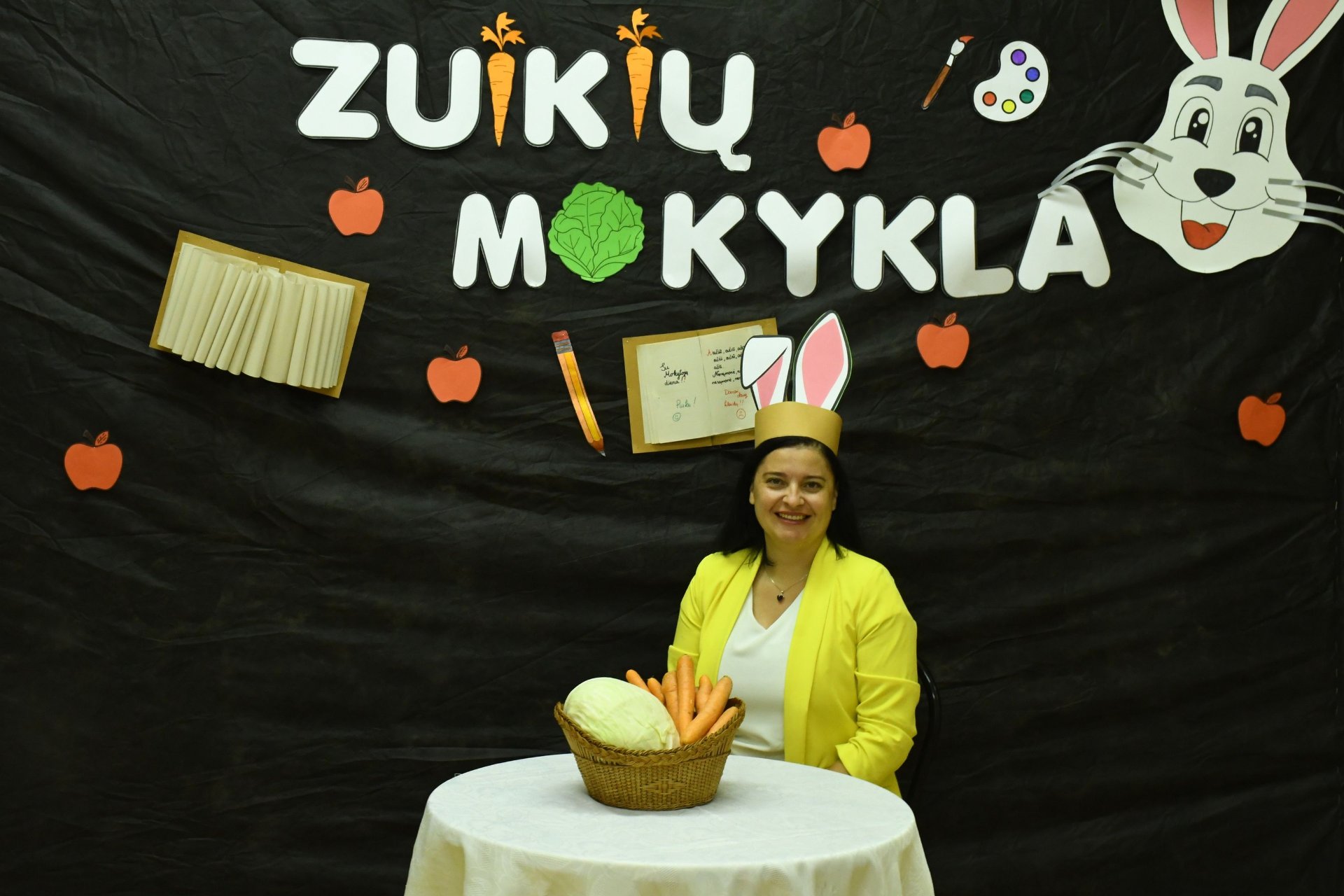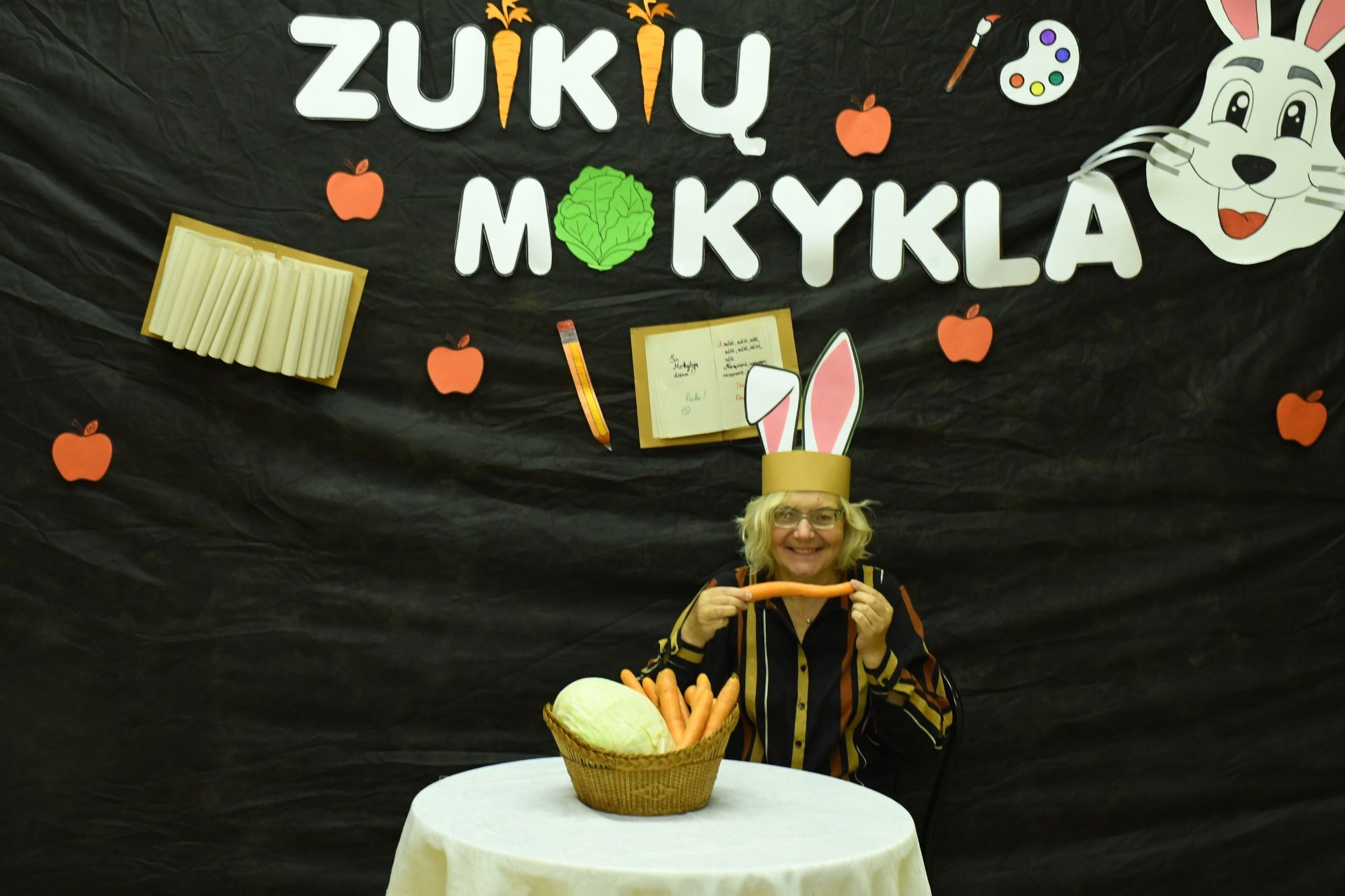 Po trijų pamokų pedagogai rinkosi į aktų salę – „zuikių“ mokyklą. „Zuikienė“ vedė mokytojams keturias pamokas. Fizinio ugdymo mokytojai rideno kopūstus, matematikos - sprendė loginius uždavinius. Per technologijų pamoką užmerktomis akimis reikėjo nupieštam žmogučiui „įdėti“ širdį, o biologijos žinių prireikė norint pripūsti balionus – buvo atliktas praktinis darbas ,,Plaučių tūrio matavimas“. Už puikius pasiekimus „zuikių“ mokyklos direktorius apdovanojo ,,mokinius" morkomis. Muzikinį kūrinį pianinu atliko Kajus. Gimnazijos pirmokai mokytojams padovanojo per technologijų pamokas „išaugintas“ gėles.