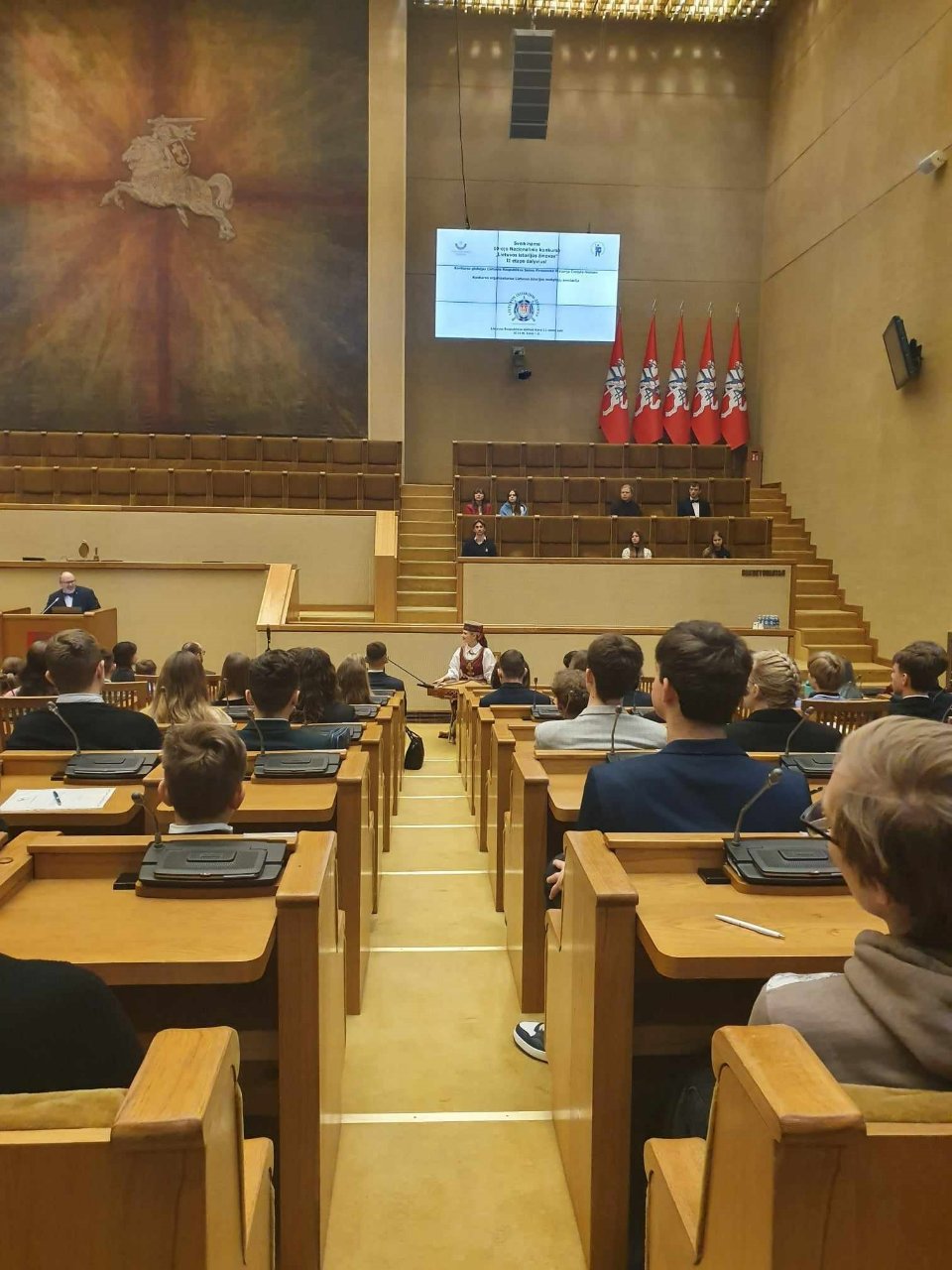 Kovo 1 dieną Lietuvos Respublikos Seimo rūmų Kovo 11-osios salėje vyko konkurso „Lietuvos istorijos žinovas“ II etapas. Jame dalyvavo mūsų gimnazijos IV c klasės mokinys Vincentas Lekas, kuris gavo padėką už parodytas puikias istorijos žinias. Pasibaigus konkursui visi pakviesti į ekskursiją po Seimą – klausytasi informatyvaus pasakojimo apie Seimo istoriją, Sausio 13-osios įvykius, garbingus užsienio svečius, apsilankiusius Seime, ir dabartines aktualijas.