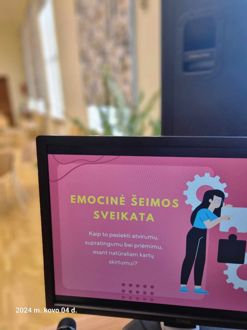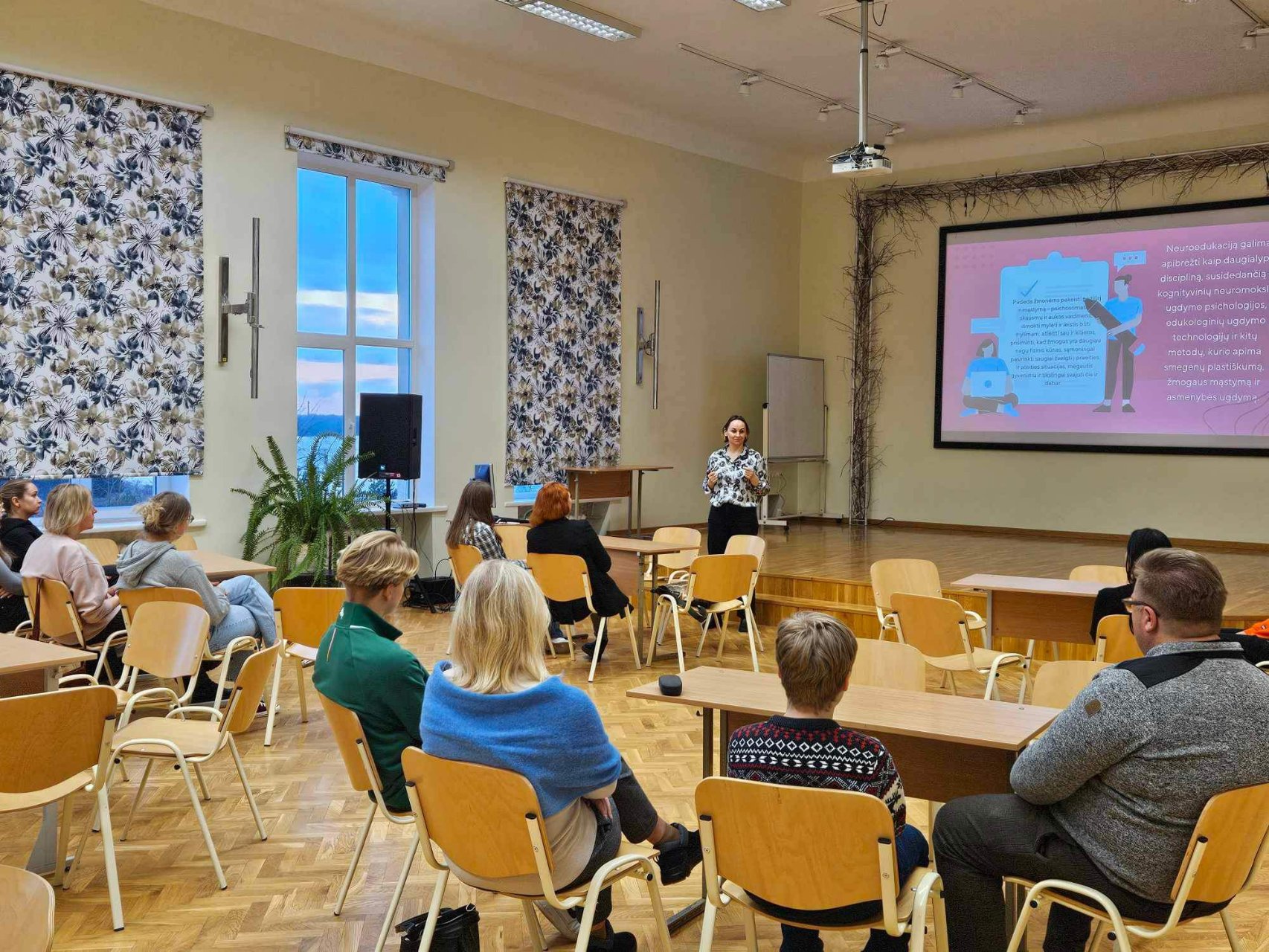 Kovo 4-5 dienomis mūsų gimnazijoje vyko pirmų klasių tėvų susirinkimai KITAIP. Tai buvo užsiėmimai, kuriuos vedė neuroedukatorė Joana Cironkaitė. Taikydami neuroedukacinius metodus bei pratimus tyrinėjome savo vaidmenis šeimoje, emocinį foną bei ieškojome galimybių, kaip visiems bendrauti ir bendradarbiauti. Atlikdami pratimus porose mokėmės suprasti kito žmogaus ribas, per kelias minutes atpažinome savyje lyderį. Individualios treniruotės padėjo suvokti savo svajones, norus ir galimybes. Vien tik mums į ką nors pažvelgus, tam tikros smegenų sritys gerokai sukrunta: aktyvuojasi veidrodiniai neuronai, kurių užduotis – palengvinti mums mokymąsi. Beje, dažnai taip ir atsitinka, kad mes patys po to nustembame. Neatsitiktinai lektorė patarė pradėti kiekvieną rytą nuo komplimentų sau ir taip pakeisti savo požiūrį. Nuoširdžiai dėkoju direktorei Astai Valuntienei už progresyvų požiūrį į naujoves ir pagalbą organizuojant susirinkimus KITAIP. Taip pat tariu ačiū gimnazijos psichologei Ingai Drupienei už idėjas, palaikymą ir drąsinimą.