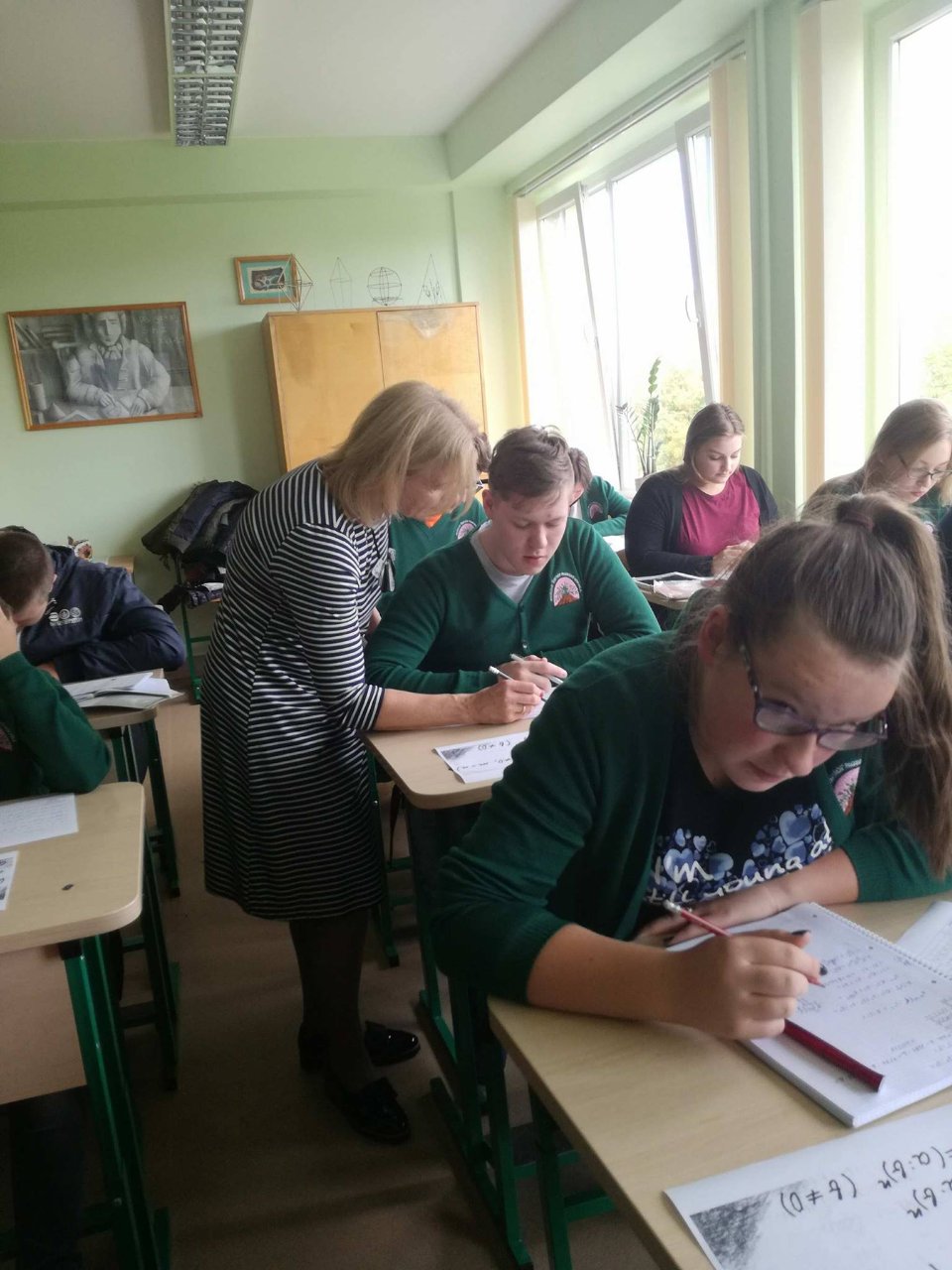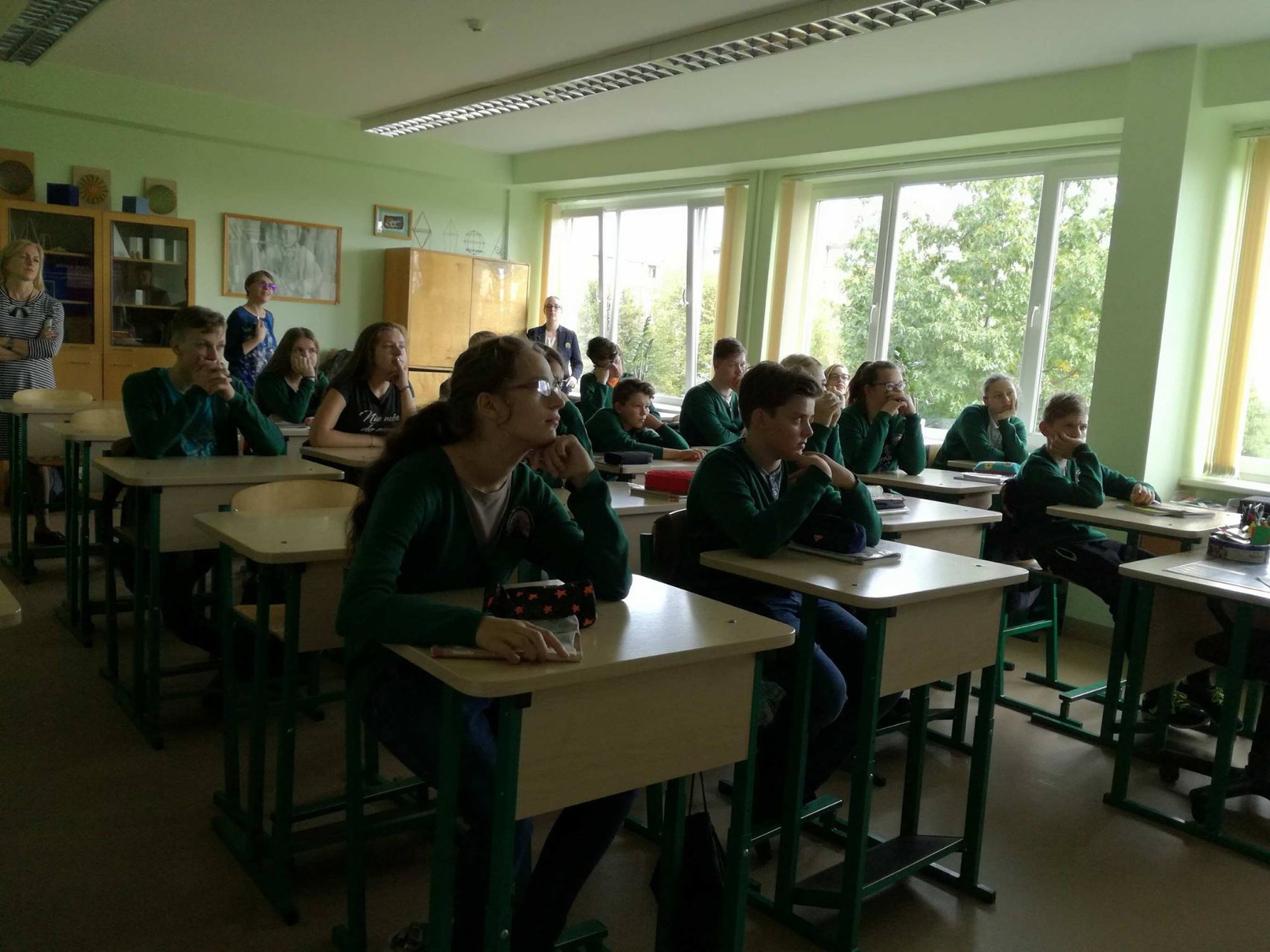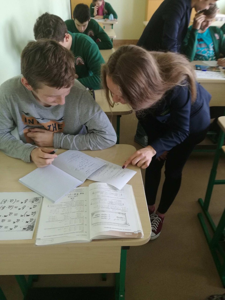 Mūsų mokiniai ir toliau dalyvauja gimnazijos įgyvendinamame Erasmus+ tarpmokyklinės strateginės partnerystės projekte, todėl rugsėjo 20 dieną gimnazistai ne tik patys mokėsi, bet ir mokė kitus. Abiturientai Rytis Kacilevičius, Paulius Jankauskas ir trečiokė gimnazistė Greta Malinauskaitė kartu su mokytoja Aušra Vasilevičiūte keliavo į Pakruojo „Žemynos“ pagrindinę mokyklą. Ten aštuntos klasės mokiniams jie vedė netradicinę pamoką – matematikos vingrybių mokė bendraudami anglų kalba. Rytis K., Paulius J. ir Greta M. buvo paruošę įdomios medžiagos ir užduočių. Jie puikiai išaiškino temą, rodė įvairių pavyzdžių ir padėjo spręsti užduotis, gimnazistams talkino „Žemynos“ pagrindinės mokyklos matematikos mokytoja Silva Kairienė. Pirmieji teisingai išsprendę mokiniai buvo net apdovanoti saldžiaisiais prizais. Pamokos pabaigoje visi aštuntokai džiaugėsi ir nuoširdžiai plojo jauniesiems mokytojams.