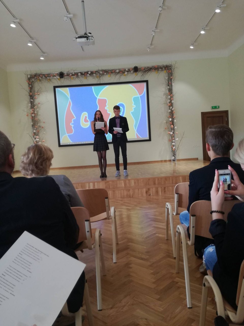 Vedėjai Kamilė Augėnaitė ir Justas Simanavičius, IIb klasės gimnazistai, pradėjo šventę žodžiais apie kalbą, užslėptą žemės grožį ir didžiausią žmogaus turtą bei vertybę. Šventę įvairiausiomis spalvomis nuspalvino mokinių pasirodymai. Lietuvių kalbos puoselėtojai mus pakiliai nuteikė, nes jausmingai skaitė ištraukas, eiles, be to, Ib klasės mokiniai padainavo visiems gerai žinomą lietuvių liaudies dainą. Visi trys pasirodymai buvo be galo nuostabūs ir jie tik dar kartą įrodė, kad mūsų gimtoji kalba yra pati gražiausia, seniausia ir brangiausia mums visiems. Vėliau išgirdome įdomių faktų apie anglų kalbą, klausėmės mokinių dainų. IIa klasės gimnazistė Austėja Dumbrytė atliko įžymios dainininkės Katy Perry dainą „Rise“, o IIb klasės mokinių ansamblis padainavo Ed Sheeran‘o kūrinį „Photograph“. Puikiai skambėjo gimnazijos trečiokų daina rusiškai, taip jie perteikė šios kalbos išskirtinumą bei grožį. Renginio vedėjai pristatė ir prancūzų kalbą. Kamilė supažindino su prancūzų rašytojo Anatole France mintimis ir padeklamavo Paul Éluard eilėraštį „Dans Paris“.