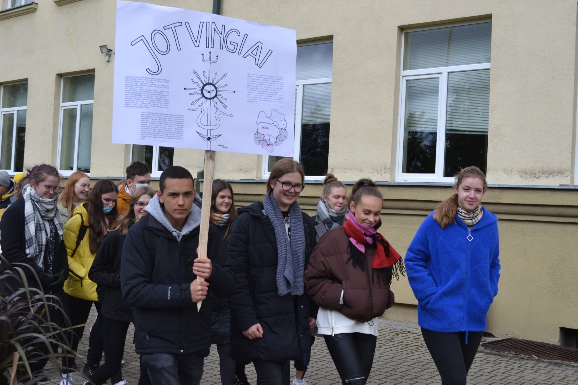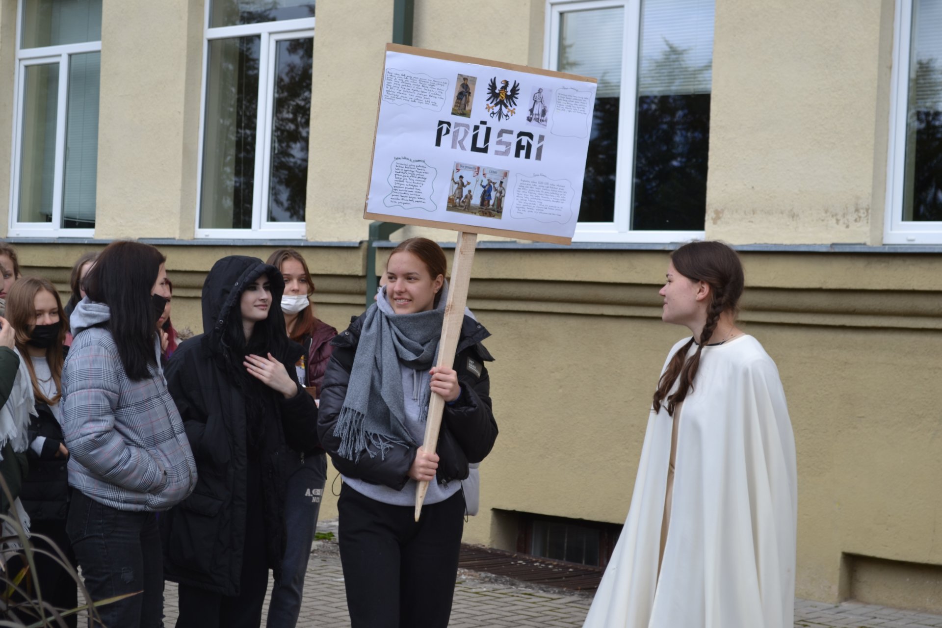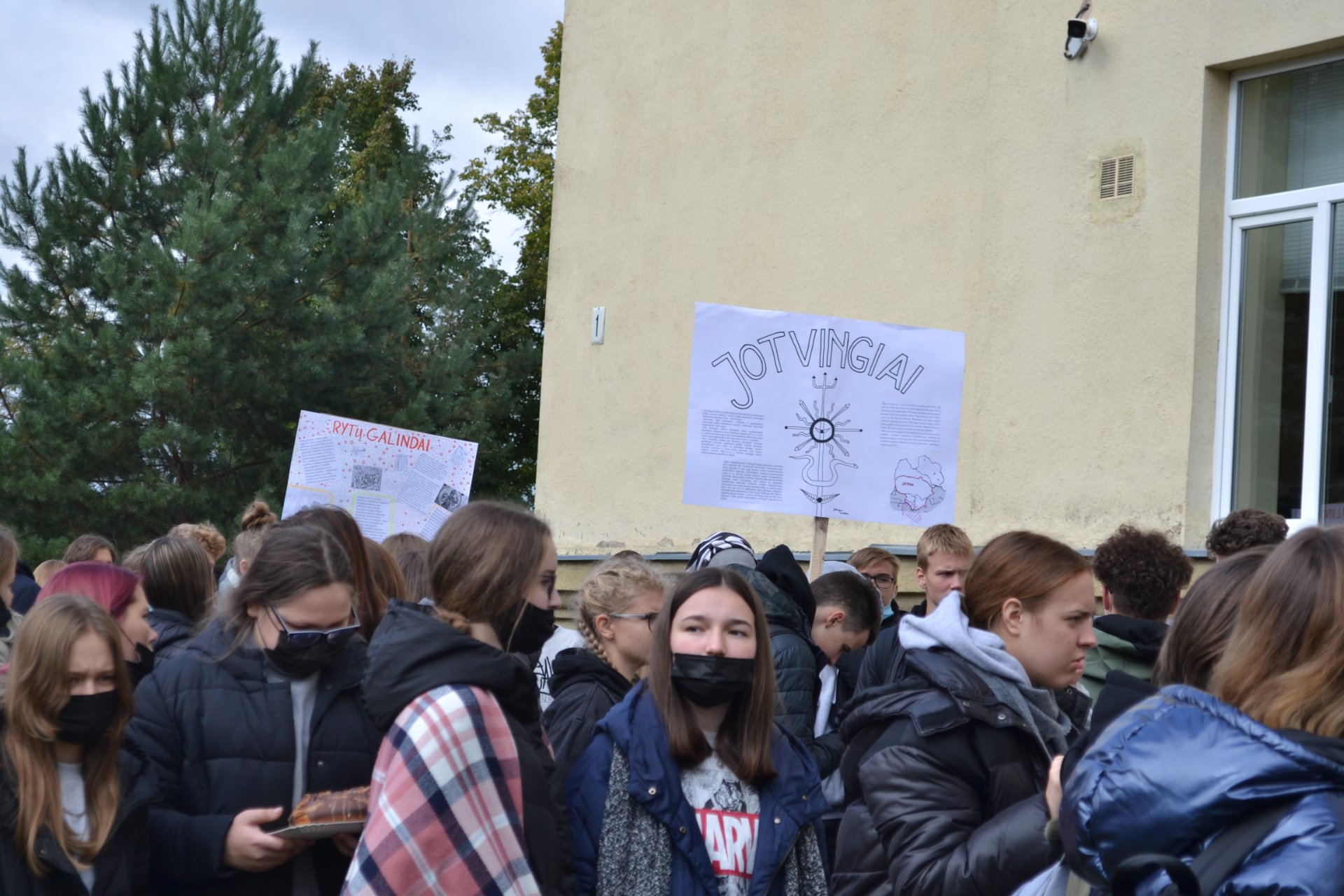 Baltų vienybės dieną išgyvenome bendrystės jausmą Sveikinimo žodį tarė šventės iniciatorė, istorijos mokytoja Gražina Kairiūkštienė. Visos klasės persikūnijo į įvairias baltų gentis, paruošė tradicinių patiekalų. Vaidilutės lydėjo oriai žengiančius prūsus, sėlius, jotvingius, aukštaičius, žemaičius, lietuvius, sūduvius, latgalius, Rytų galindus, skalvius, žiemgalius, kuršius. Kiekvienoje Baltų šventėje buvo uždegama ugnis kaip dievybės simbolis, pas mus iškilmingoms apeigoms vadovavo technologijų mokytojas Egidijus Impolis, pakvietęs direktorę ir klasių auklėtojas tarti palinkėjimą ir dar kaitriau įžiebti ugnį metant į ją saują grūdų ir druskos. Linkėta bendrystės, vienybės, tarpusavio supratimo, gyvenimo čia ir dabar...