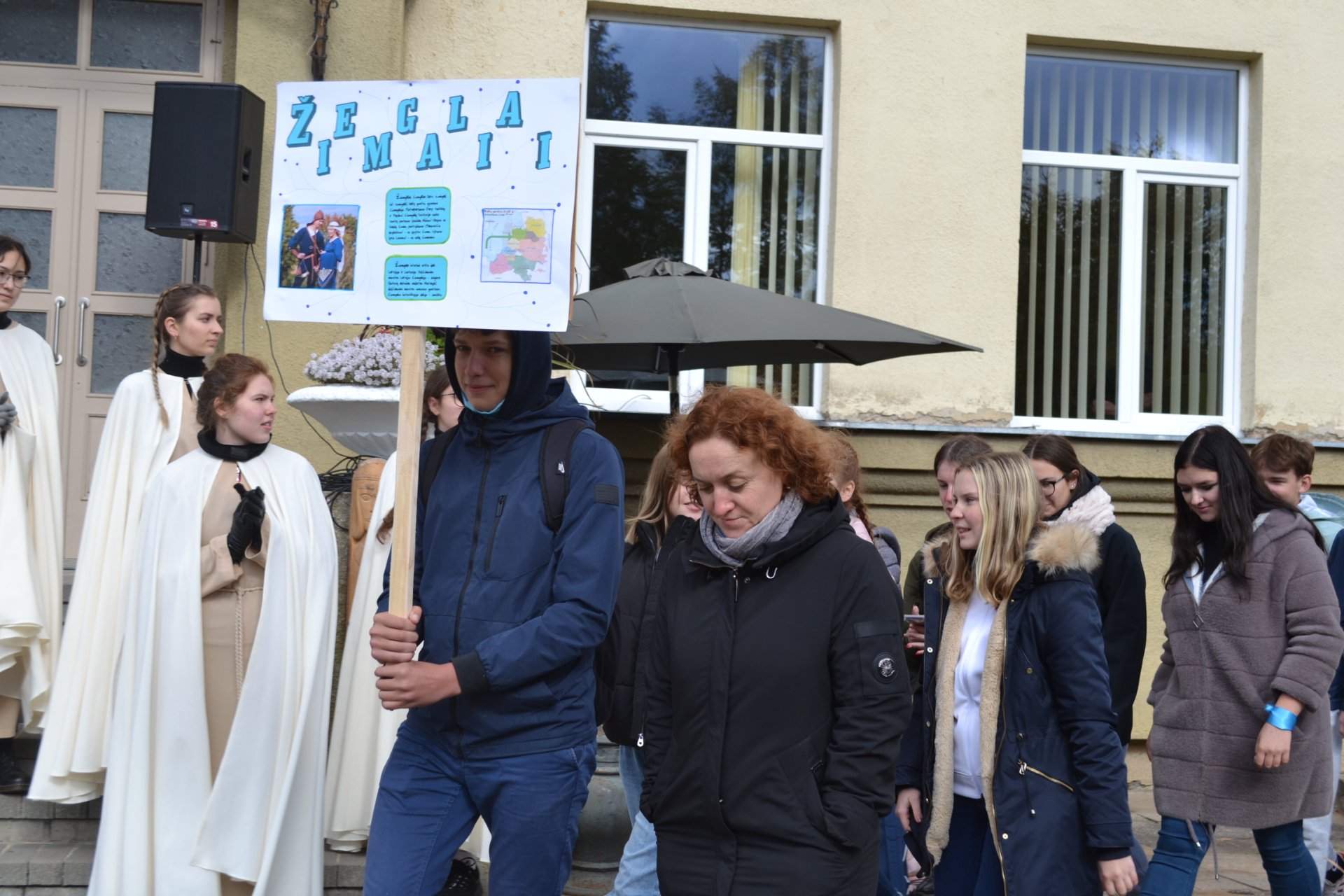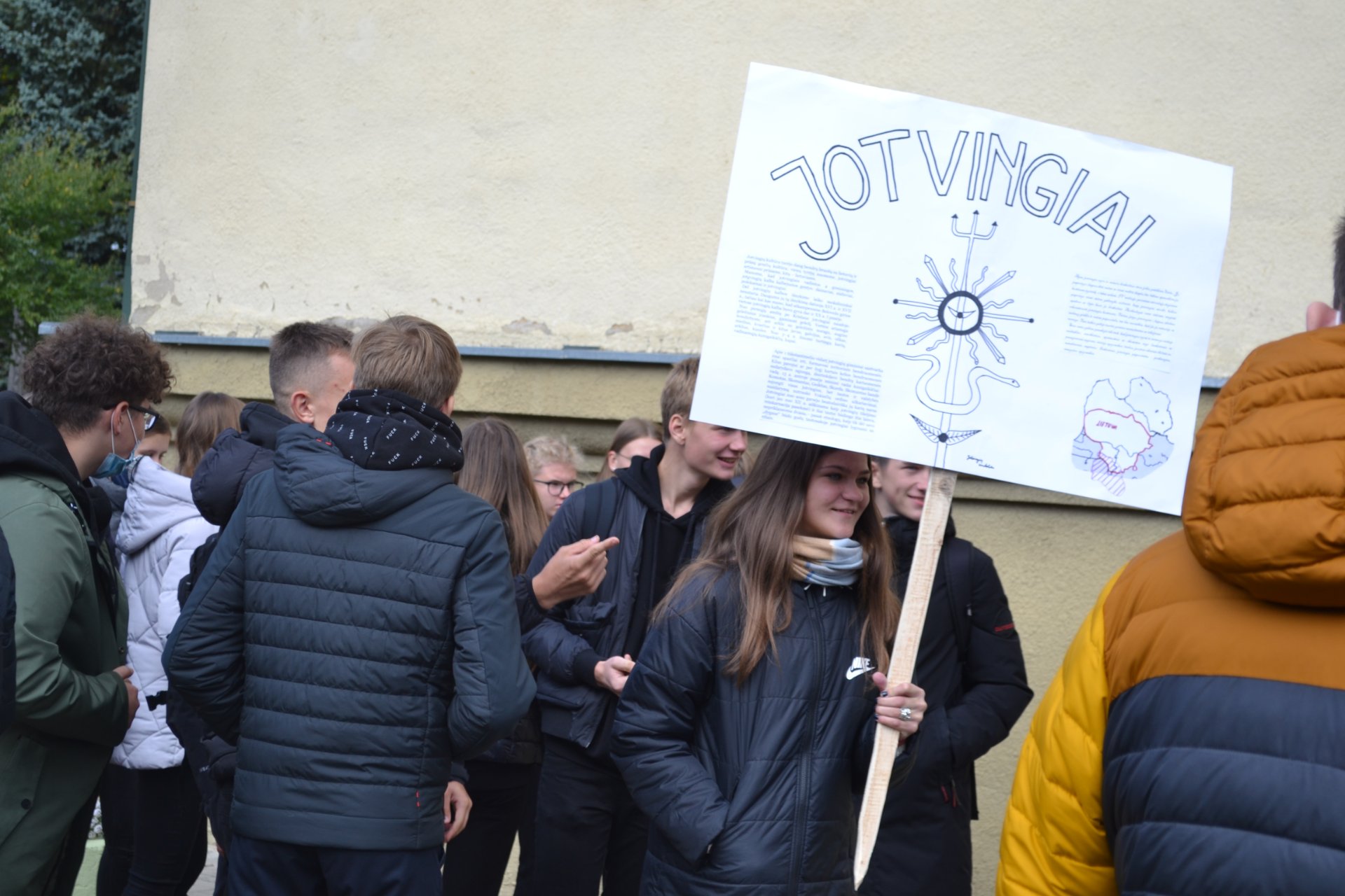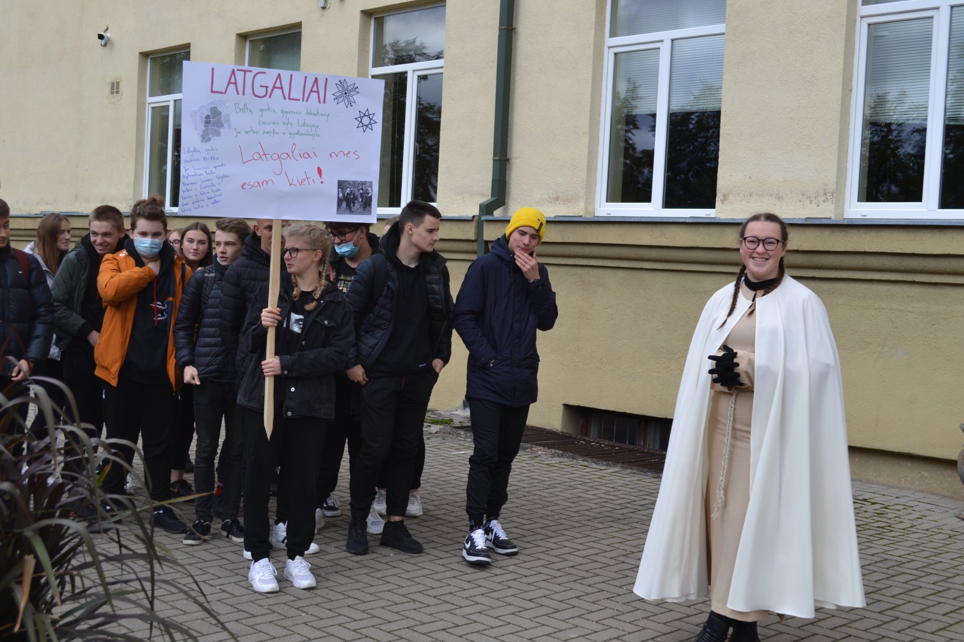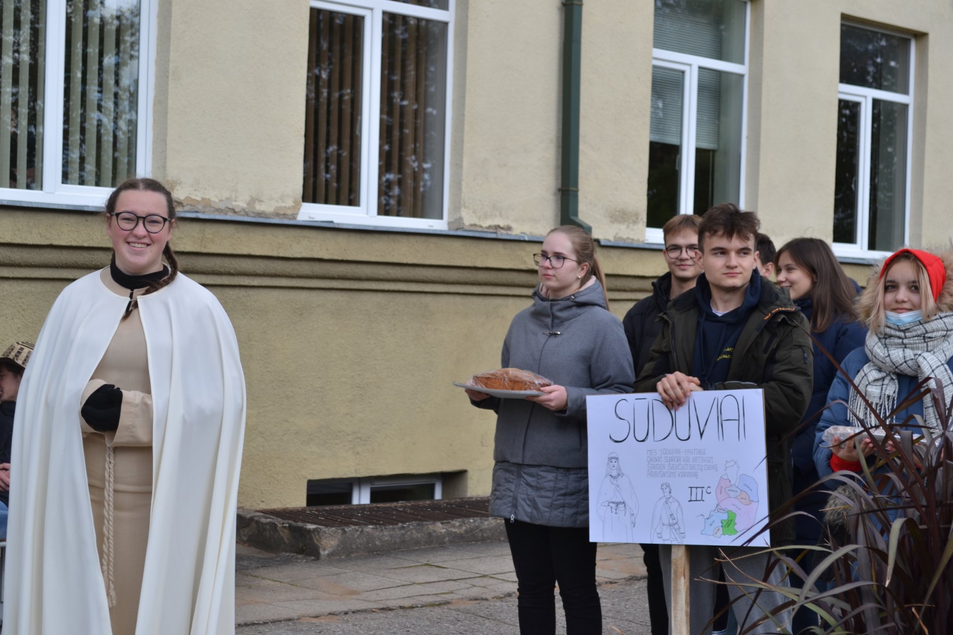 Baltų vienybės dieną išgyvenome bendrystės jausmą Sveikinimo žodį tarė šventės iniciatorė, istorijos mokytoja Gražina Kairiūkštienė. Visos klasės persikūnijo į įvairias baltų gentis, paruošė tradicinių patiekalų. Vaidilutės lydėjo oriai žengiančius prūsus, sėlius, jotvingius, aukštaičius, žemaičius, lietuvius, sūduvius, latgalius, Rytų galindus, skalvius, žiemgalius, kuršius. Kiekvienoje Baltų šventėje buvo uždegama ugnis kaip dievybės simbolis, pas mus iškilmingoms apeigoms vadovavo technologijų mokytojas Egidijus Impolis, pakvietęs direktorę ir klasių auklėtojas tarti palinkėjimą ir dar kaitriau įžiebti ugnį metant į ją saują grūdų ir druskos. Linkėta bendrystės, vienybės, tarpusavio supratimo, gyvenimo čia ir dabar...