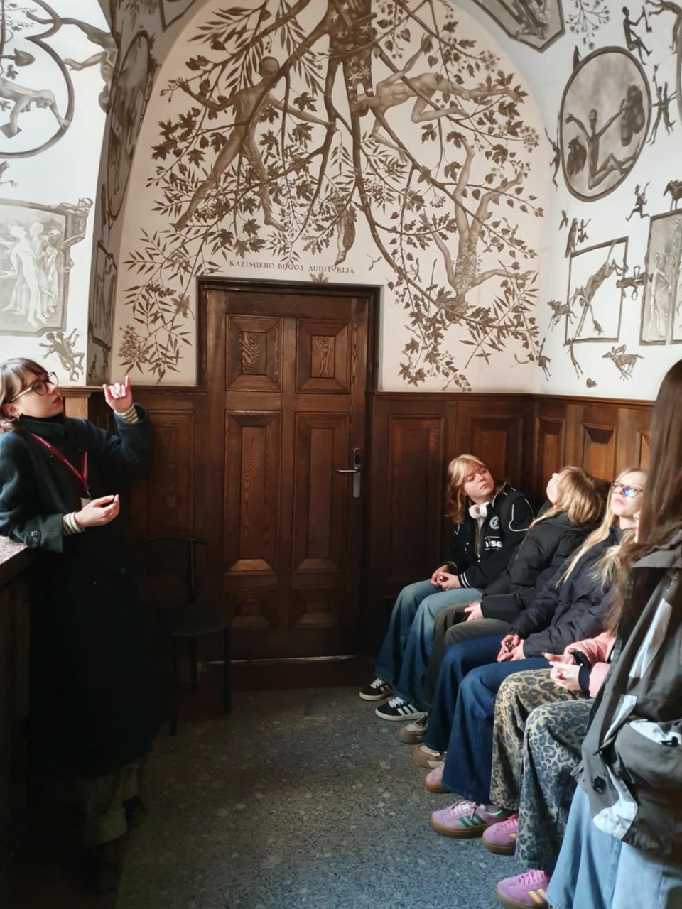 Kovo 21 dieną mes, grupelė gimnazistų, istorijos mokytoja Gražina Kairiūkštienė ir LPKTS Pakruojo filialo nariai su pirmininke Erika Kižiene vykome į Vilnių. Aplankėme tris istorines ir kultūrines vietas, kurios padėjo geriau pažinti Lietuvos paveldą. Pirmiausia užsukome į Vilniaus universitetą, vieną seniausių mokslo centrų Lietuvoje. Jame apžiūrėjome renesansinius pastatus, kiemelius ir interjerą. Taip pat lankėmės Šv. Jonų bažnyčioje, kuri garsėja barokine architektūra ir puošniu interjeru. Vėliau apžiūrėjome Bažnytinio paveldo muziejų, kuriame saugomi vertingi meno kūriniai. Čia sužinojome apie religijos vaidmenį Lietuvos istorijoje ir meno kūrinių reikšmę. Paskutinė ekskursijos vieta buvo Tuskulėnų rimties parko memorialinis kompleksas, kur dalyvavome edukacinėje programoje „Tuskulėnų dvaro paslaptys“. Buvo naudinga išgirsti šios vietos istoriją, sužinoti apie sovietinio režimo nusikaltimus ir pagerbti aukų atminimą.