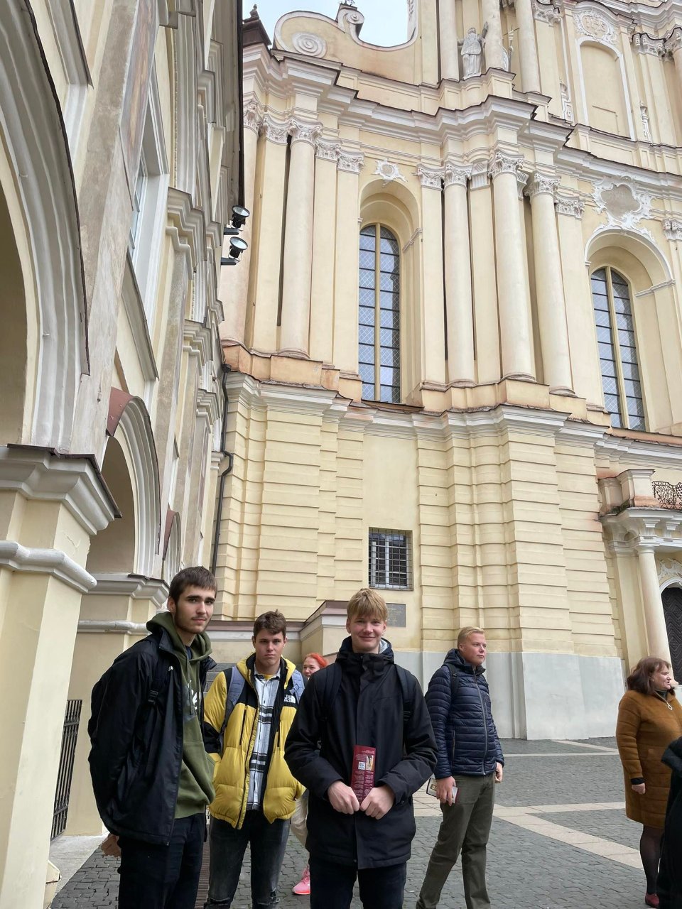 Spalio 13 dieną grupelė trečiokų gimnazistų ir viena abiturientė su lietuvių kalbos ir literatūros mokytoja Valda Jukniene vyko į Vilnių. Pirmiausia apsilankėme Vilniaus universitete, įkurtame 1579 m., viename seniausių ir žymiausių Vidurio ir Rytų Europos aukštųjų mokyklų. Ateinančiais metais, balandžio 1-ąją, VU švęs 444 metų jubiliejų. Vaikščiojome po įvairius universiteto kiemelius, pavadintus rašytojų vardais. Kiemeliuose yra daug jų simbolikos, kuri padeda kūrėjus atpažinti. Užėjome ir į universiteto vidų, kur susipažinome su įvairių laikotarpių menininkų nutapytomis freskomis. Po to užsukome į universiteto teritorijoje esančią Šv. Jono Krikštytojo ir Šv. Jono apaštalo ir evangelisto bažnyčią. Joje pamatėme daug paminklų, skirtų rašytojams Adomui Mickevičiui, Simonui Daukantui ir kt. Sužavėjo bažnyčios vargonai, kurie yra patys didžiausi Lietuvoje. O zakristijoje matėme eksponuojamą M. Daukšos išverstos „Postilės“ knygą.