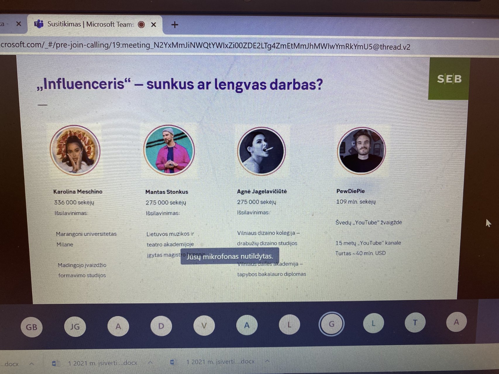 II b klasės gimnazistai ir auklėtoja Roma Juknevičienė dalyvavo SEB banko organizuotoje nuotolinėje finansinio raštingumo pamokoje „Pirmieji savarankiško gyvenimo žingsniai“. Megos ir Santakos skyrių vadovė Monika Kušlienė kalbėjo apie išsilavinimą, jo svarbą ir ateities profesijas. Gimnazistai buvo supažindinti su antreprenerystės sąvoka ir savybėmis, kurios reikalingos šiandien žmogui, norinčiam būti sėkmingam.