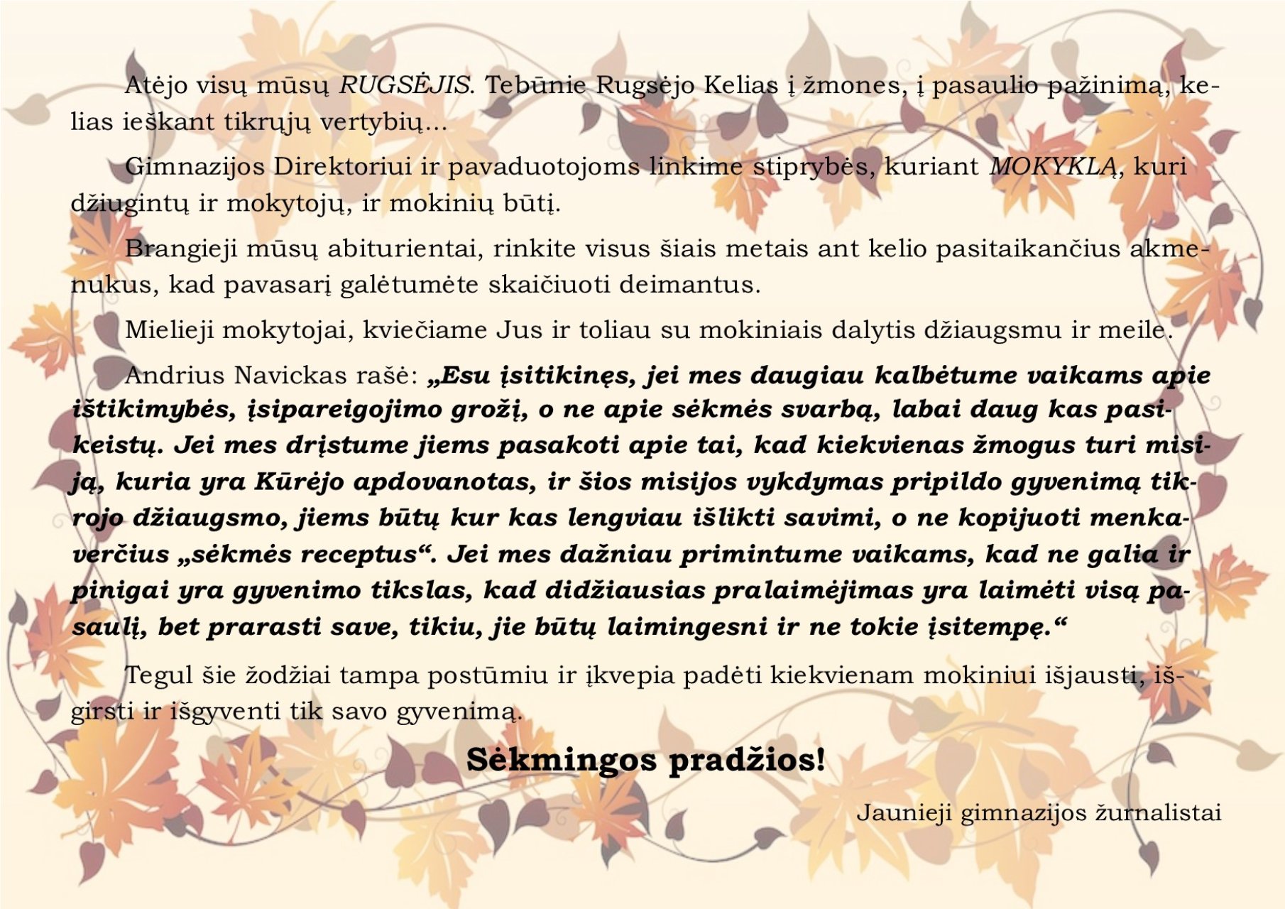 Mieloji „Atžalyno“ gimnazijos bendruomene!