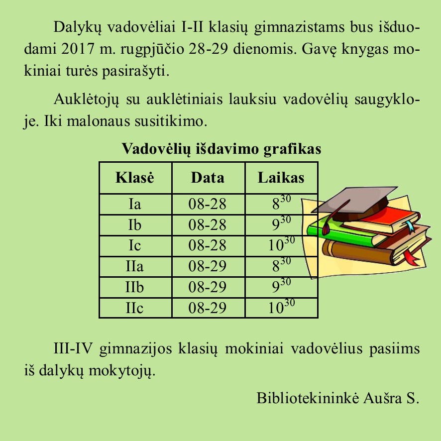 Informacija apie vadovėlių išdavimą 2017-2018 m. m.