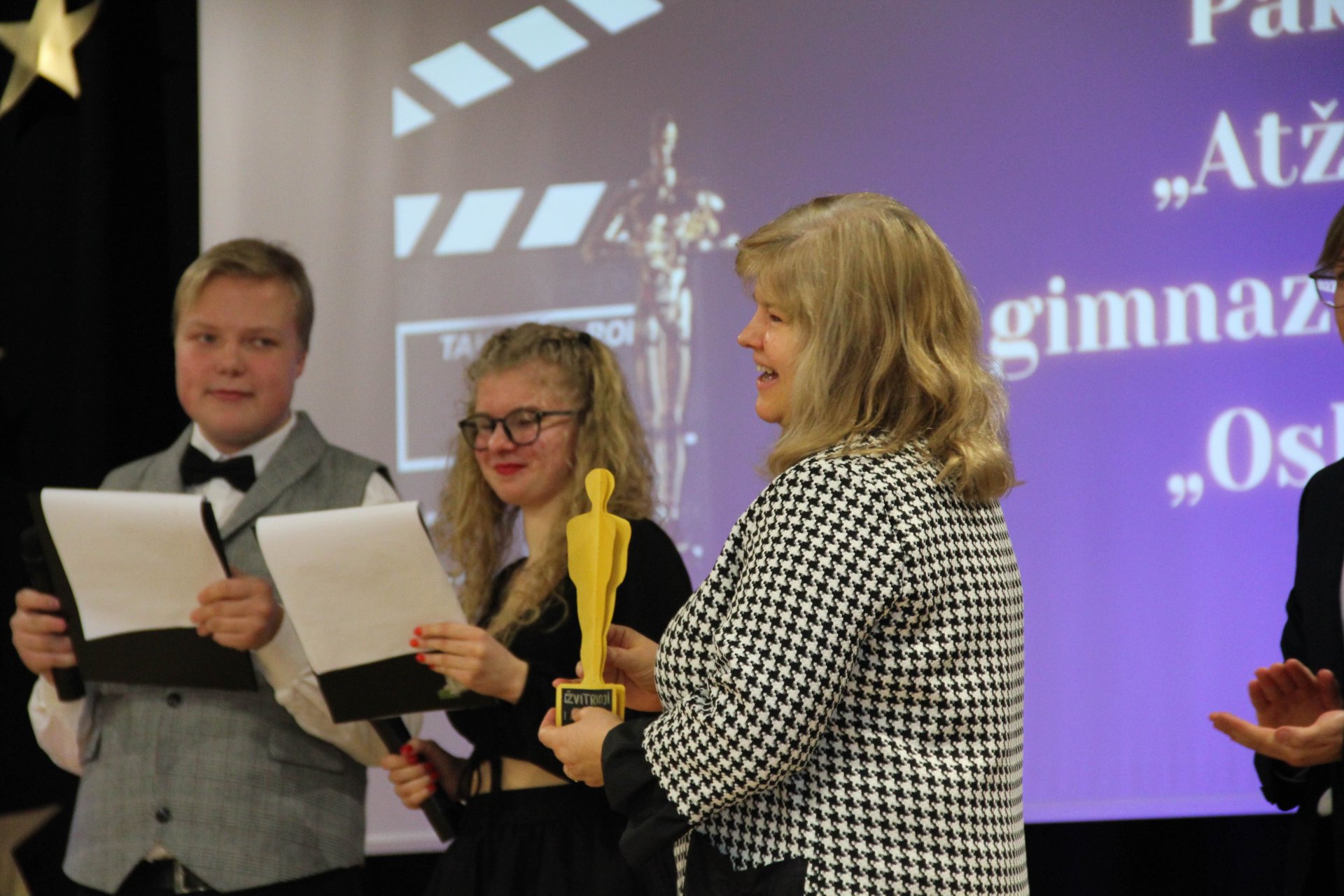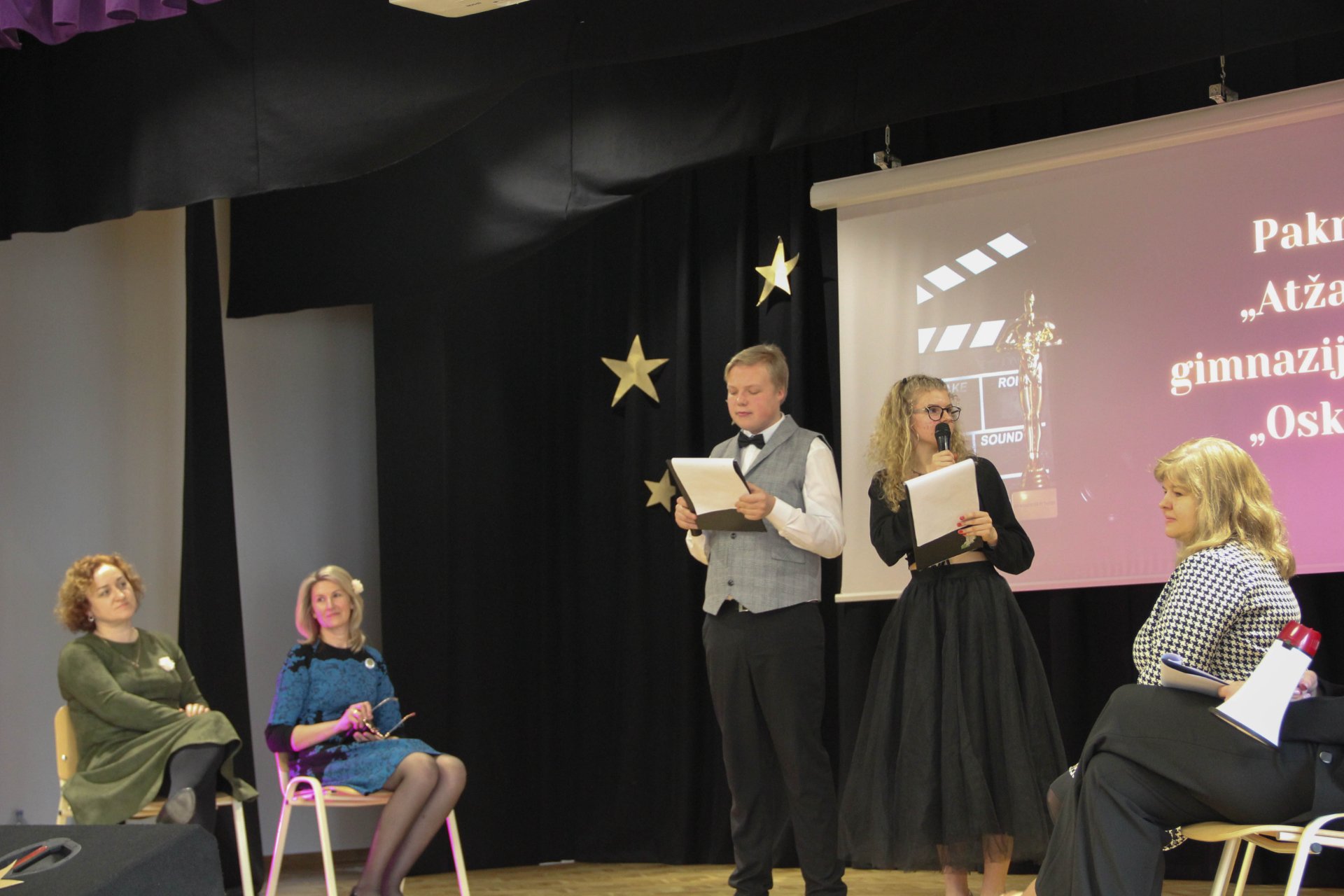Abiturientams ir jų auklėtojoms buvo įteikta dešimt „Oskarų“ už įvairias nominacijas, pavyzdžiui, „Metų klasės siela“, „Geriausiai savo mokinius pažįstanti auklėtoja“, „Metų smegenys“, „Metų n raidžių puokštė“. Renginyje netrūko ir užduočių. Auklėtojos turėjo atpažinti savo mokinius matydamos tik dalį mokinio nuotraukos. Abiturientai tapo stilistais bei dizaineriais ir iš duotų medžiagų kūrė aprangos stilių, taip pat turėjo suvaidinti įvairių filmų trumpas ištraukas, atpažinti Holivudo aktorius vaikystėje ir atspėti dirbtinio intelekto sukurtas mokytojų nuotraukas. Muzikinius kūrinius dovanojo instrumentinis ansamblis „Ukulėliai“ (muzikos mokytoja Vaiva Klupšienė), abiturientė Inesa Skridulytė ir pirmokė gimnazistė Martyna Jurevičiūtė. Už linkėjimus, padrąsinimą abiturientams žengti likusiu šimto dienų keliu šioje mokykloje dėkojame direktorei, auklėtojoms, ir mokinių prezidentei Gretai Gudaitei.