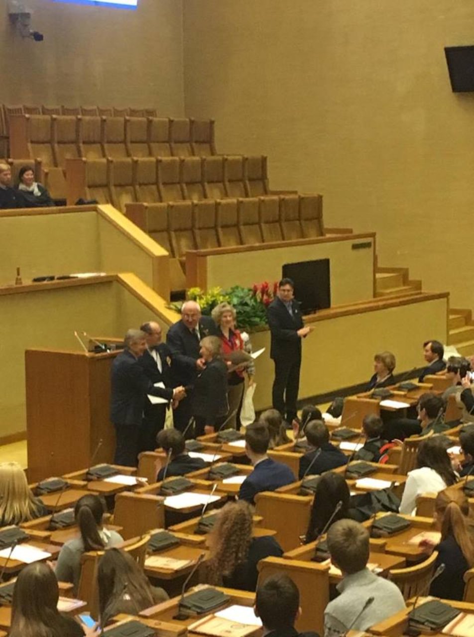 Kovo 10 d. Seime vyko nacionalinio konkurso „Lietuvos istorijos žinovas“ II turas, kuriame dalyvavo ir mūsų gimnazijos IVa klasės mokinė Gabija Lampickaitė, I etapo gimnazijoje nugalėtoja. Abiturientė vyko kartu su savo istorijos mokytoja ir auklėtoja Gražina Kairiūkštiene, kuri dar dirbo ir vertinimo komisijoje. Du šimtai I turo nugalėtojų žinias demonstravo Kovo 11-osios Akto salėje. Gabija šauniai atstovavo gimnazijai ir gavo padėkos raštą. Šis konkursas - puiki galimybė sužinoti įdomių ir gana netradicinių istorinių faktų apie Lietuvą, be to, buvo organizuota ekskursija po Seimą. Mokytoja Gražinai Kairiūkštienei dėkota už aktyvų dalyvavimą įvairiuose projektuose bei konkursuose.