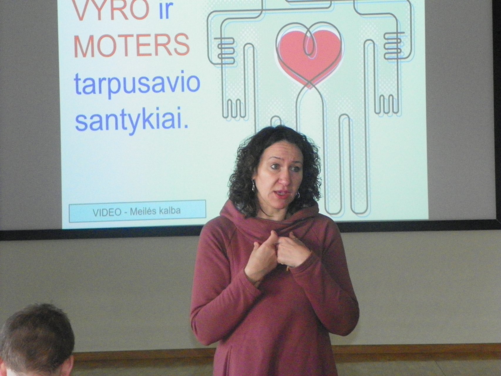 Su II klasių gimnazistais lektorė kalbėjo apie dviejų žmonių santykius, kurie, anot mokytojos Danutės Kratukienės, visada reiškia laisvės apribojimą, taip pat aptarė, koks visuomenėje formuojamas požiūris į skaistumą. Gimnazistai kartu su viešnia aiškinosi, kuo skiriasi sąvokos meilė ir geismas, meilė ir įsimylėjimas. Buvo prieita prie išvados, kad fizinis bei dvasinis skaistumas yra kelias į laimę.