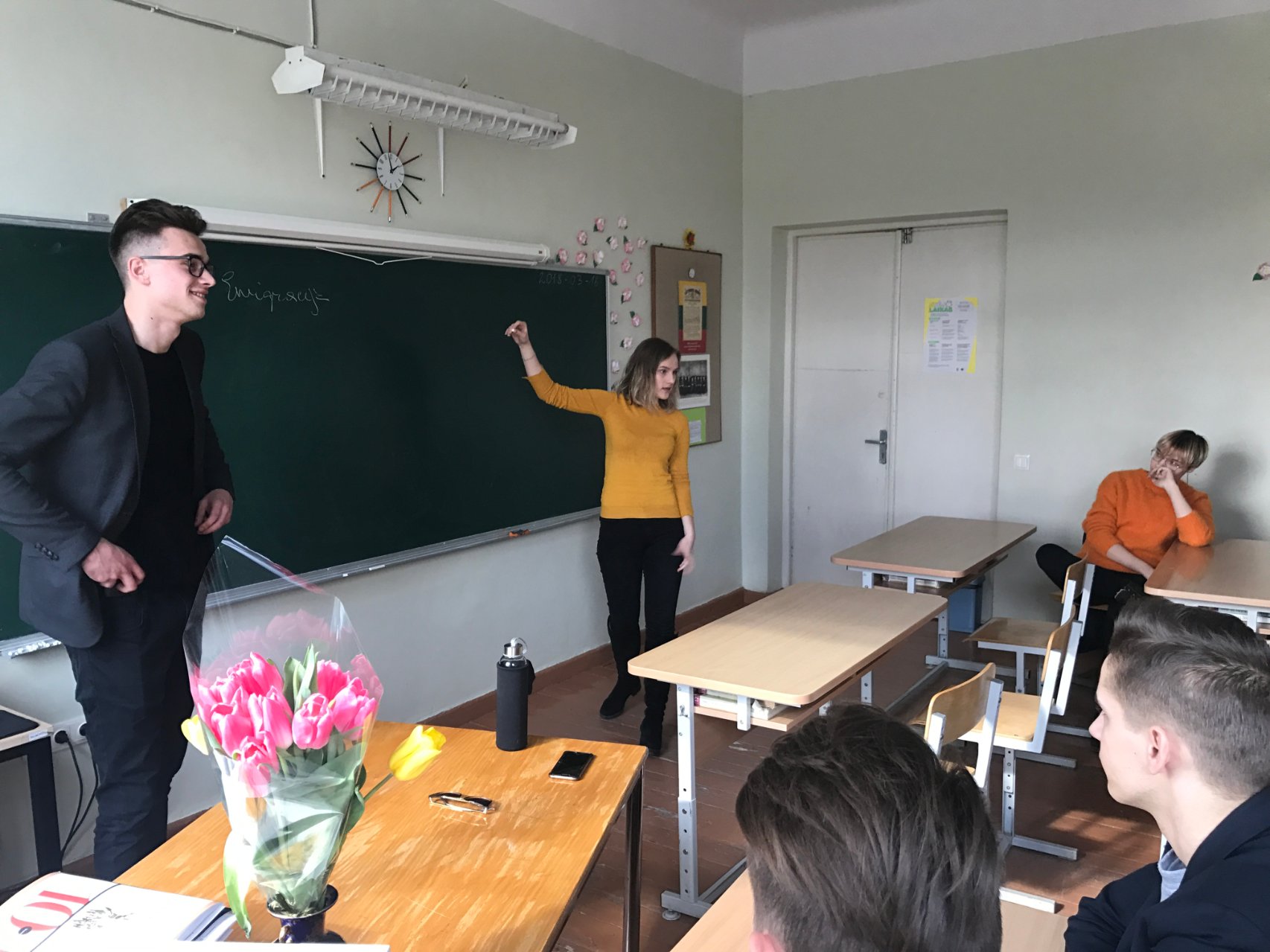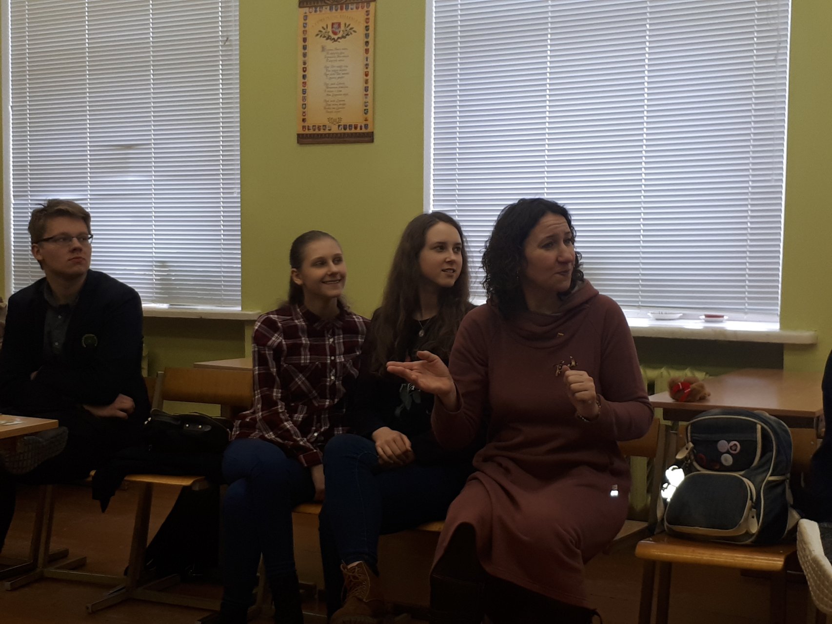 Ia ir Ic klasių mokiniai diskutavo apie vyro ir moters tarpusavio santykius. Viešnia su gimnazistais analizavo draugystės pakopas, išsiaiškino ir lygino susižavėjimo, įsimylėjimo, draugystės ir meilės sąvokas.