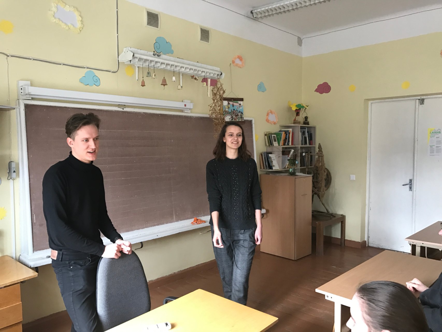 Visada labai smagu, kai į gimnaziją grįžta ją baigę mokiniai... Penktadienį mielai susitikome su mūsų buvusiu abiturientu Pauliumi Simaičiu, kuris atvyko lydimas bendraminčių komandos (Elenos, Kunigundos ir Kipro). Žavėjo jaunų žmonių, vykdančių pilietiškumo projektą, gražūs ir dideli užmojai paskatinti mokinius būti drąsius, imtis iniciatyvos ir išdrįsti kalbėti apie šalies problemas bei galimus jų sprendimo būdus. Studentai bendravo su mūsų gimnazijos antrokais ir jungtine trečiokų-ketvirtokų grupe. Mokiniai vardijo buitines ir politines problemas, buvo išrinkta didžiausia blogybė, ieškoma priežasčių, pasekmių, aptartos sunkumų pašalinimo galimybės. Gimnazistai diskutavo apie emigraciją, švietimo sistemą, šalies ekonomiką ir valdžios sprendimus. Įsiminė trečiokės Austėjos mintis, kad būtina sukurti emocinį žmogaus ir Lietuvos ryšį, ugdyti vertybes, puoselėti tradicijas ir papročius, stiprinti žmonių tarpusavio saitus. Džiugu, kad šiame vartotojiškame pasaulyje gimnazistai mąsto ne tik apie žmogaus ryšį su žmogumi, bet nepamiršta ir amžinųjų tėvynės ir asmens jungčių.