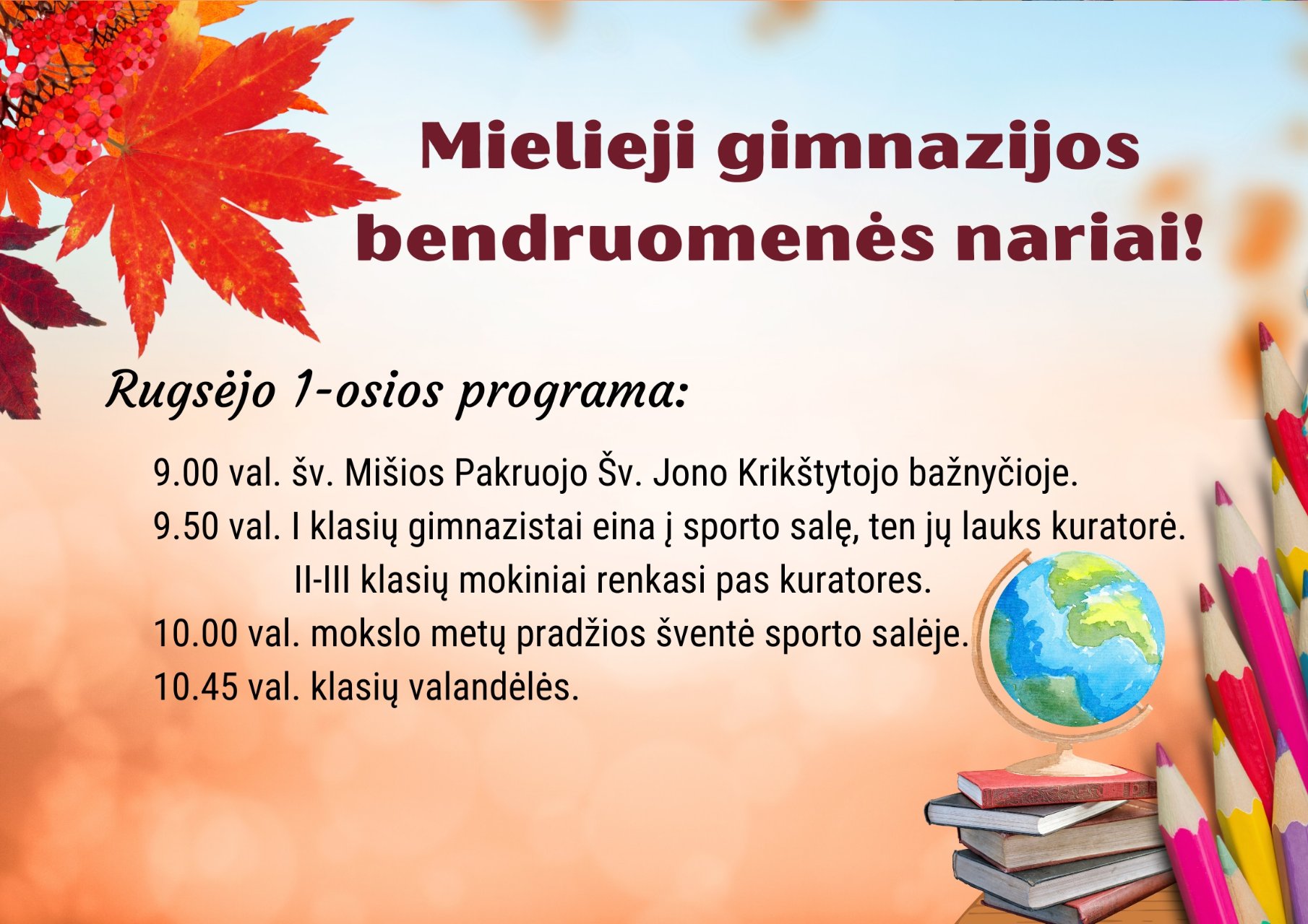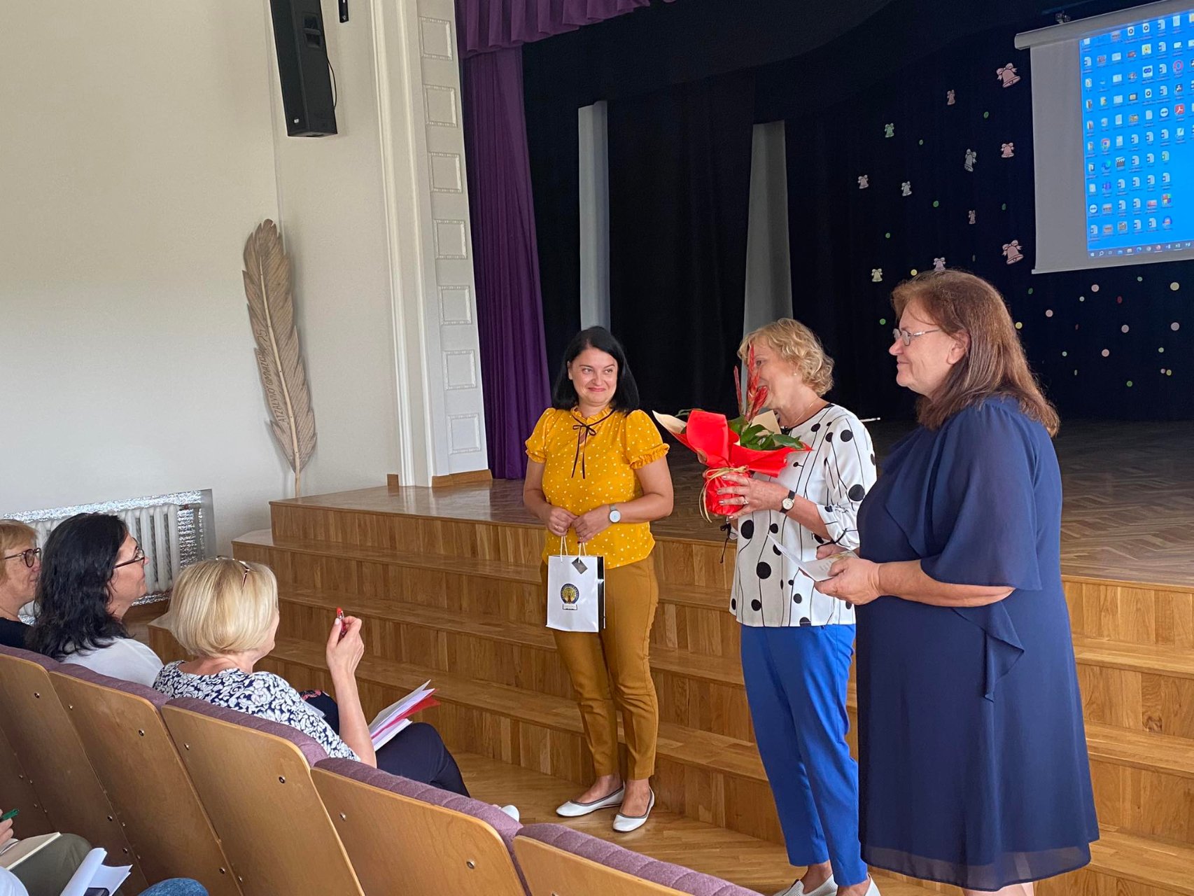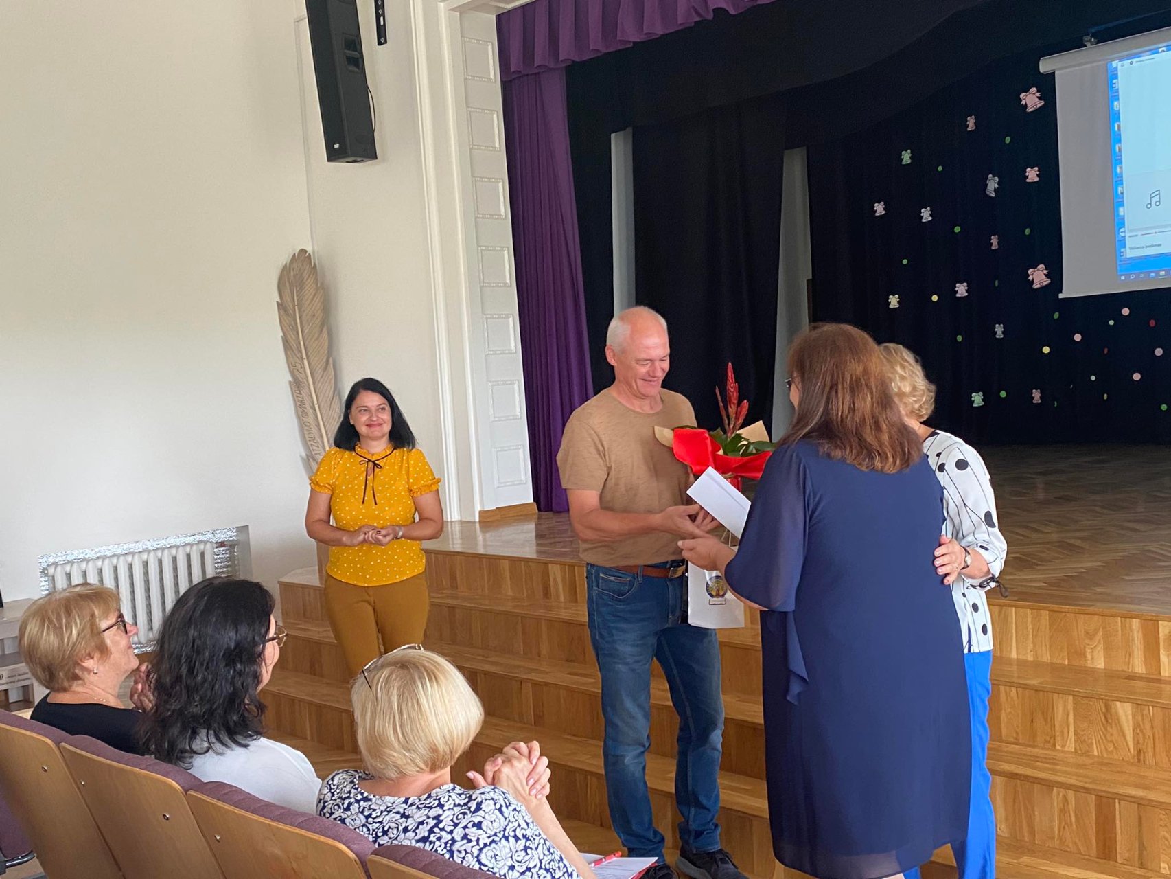Rugpjūčio 30 dieną dar vasaros spalvų fone gimnazijos mokytojai, kupini jėgų ir įkvėpimo, pasiryžę vėl vesti į gyvenimą kitus, kartu su mokiniais augti ir džiaugtis, susirinko į mokytojų tarybos posėdį prieš naujuosius mokslo metus. Pradžioje direktoriaus pavaduotoja ugdymui Rasa Bertulienė pristatė darbotvarkę. Po to žodį tarė gimnazijos direktorė Asta Valuntienė, kuri pasidžiaugė visais sugrįžusiais į didelį būrį, viltingai nusiteikusiais, besišypsančiais, nes taip svarbu pajusti širdžių šilumą, matyti, girdėti vieniems kitus. Gimnazijos bendruomenės telkimo grupė jubiliejaus proga pasveikino fizinio ugdymo mokytoją Rimvydą Rimkų, taip pat pedagogą šiltai apkabino metodinės grupės nariai, nuoširdžiai apie jo gyvenimo kelią papasakojo kolegė, prancūzų kalbos mokytoja Inga Ušinskaitė. Be to, tęsiamos tradicijos – kardelio žiedas pražydo mokytojų Gražinos Gasiūnienės, Simona Čemoškaitės, Inesos Tamulionytės-Poškauskienės, sulaukusių jubiliejinio darbo stažo, rankose, direktorė įteikė atminimo dovanėles. Pristatyti ir pasveikinti nauji kolegos – etikos mokytoja Eglė Lebedienė ir Rokas Venckus, kuris mūsų gimnazistams atskleis filosofijos pasaulio subtilybes. Beje, Roko nebuvo, tačiau jį, kaip paprastą, nuoširdų ir kultūringą žmogų, apibūdino buvusi auklėtoja, prancūzų mokytoja Inga Ušinskaitė. Posėdis tęsėsi - direktoriaus pavaduotoja ugdymui Rasa Augustinaitienè aptarè PUPP ir egzaminų rezultatus, pateikė lyginamąją statistiką, direktoriaus pavaduotoja ugdymui Rasa Bertulienė pristatė ugdymo planą, gvildeno kitus klausimus.