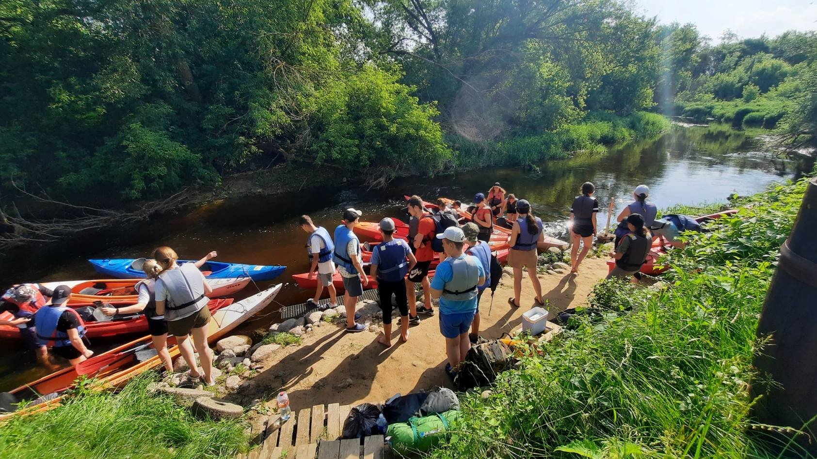 Pilnomis kuprinėmis išskubėjome pasiryžę patirti įvairių nuotykių. Nekantriai, šiek tiek jausdami nerimą širdyse, sėdome į baidares ir leidomės Nevėžio vingiais. Pirmosios dienos maršrutas buvo kupinas kliūčių, kurios diktavo strategavimą, kaip išplaukti, kaip persinešti baidarę ar neužstrigti. Pasiekę stovyklavietę dalijomės savo patyrimais, juokingomis situacijomis, iššūkių akimirkomis.