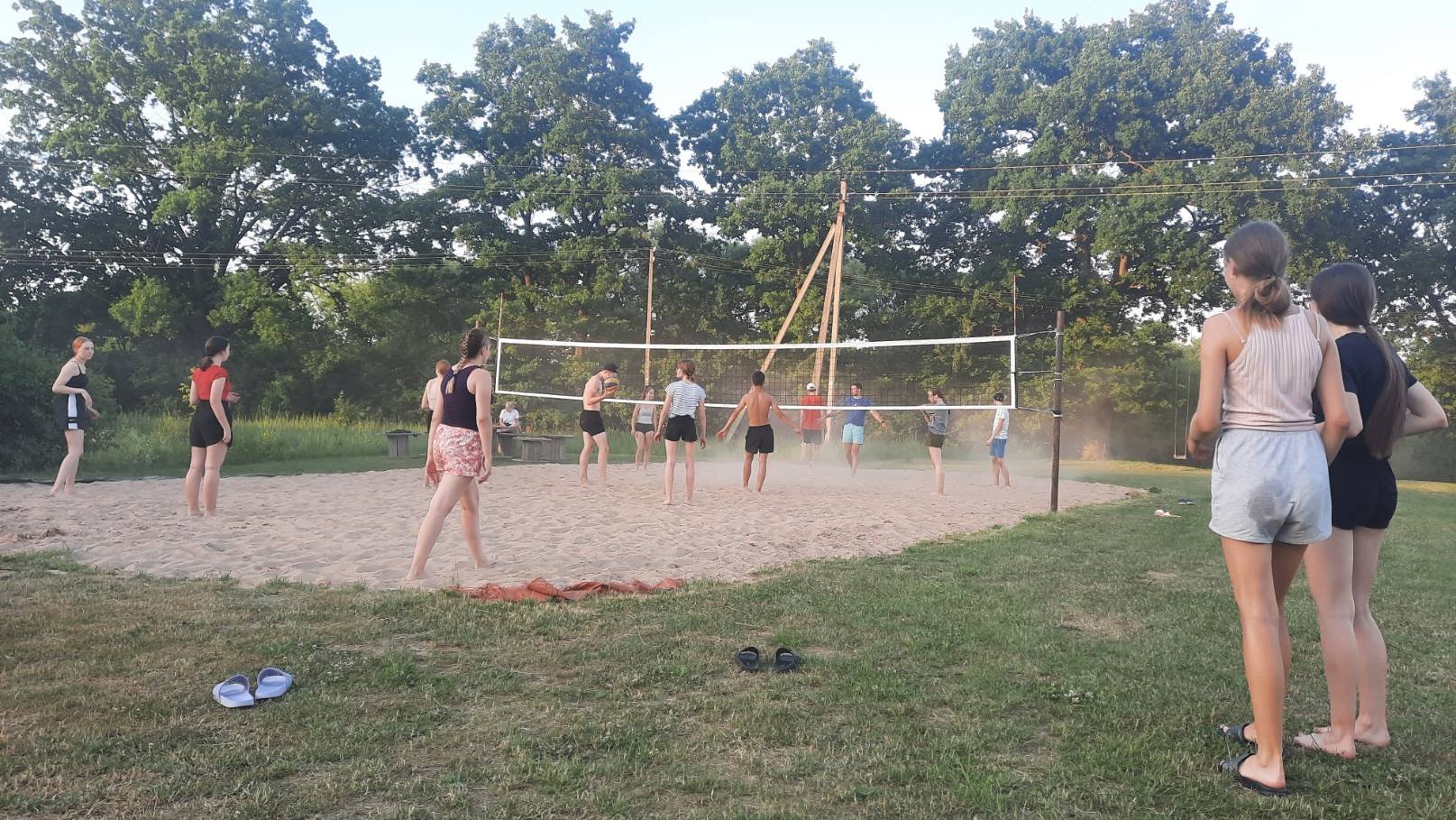 Vakaras buvo kupinas gerų emocijų, paįvairintas tinklinio varžybomis, kurias pavadinome „Kuratorė prieš trenerį“. Visą laiką skambėjo juokas! O kiti žaidimai, kaip karšta bulvė bei krepšinis ir futbolas, leido iškrauti per dieną susikaupusią energiją. Pokalbiai prie laužo priminė, koks nuostabus gyvas bendravimas ir kokie kūrybingi esame.