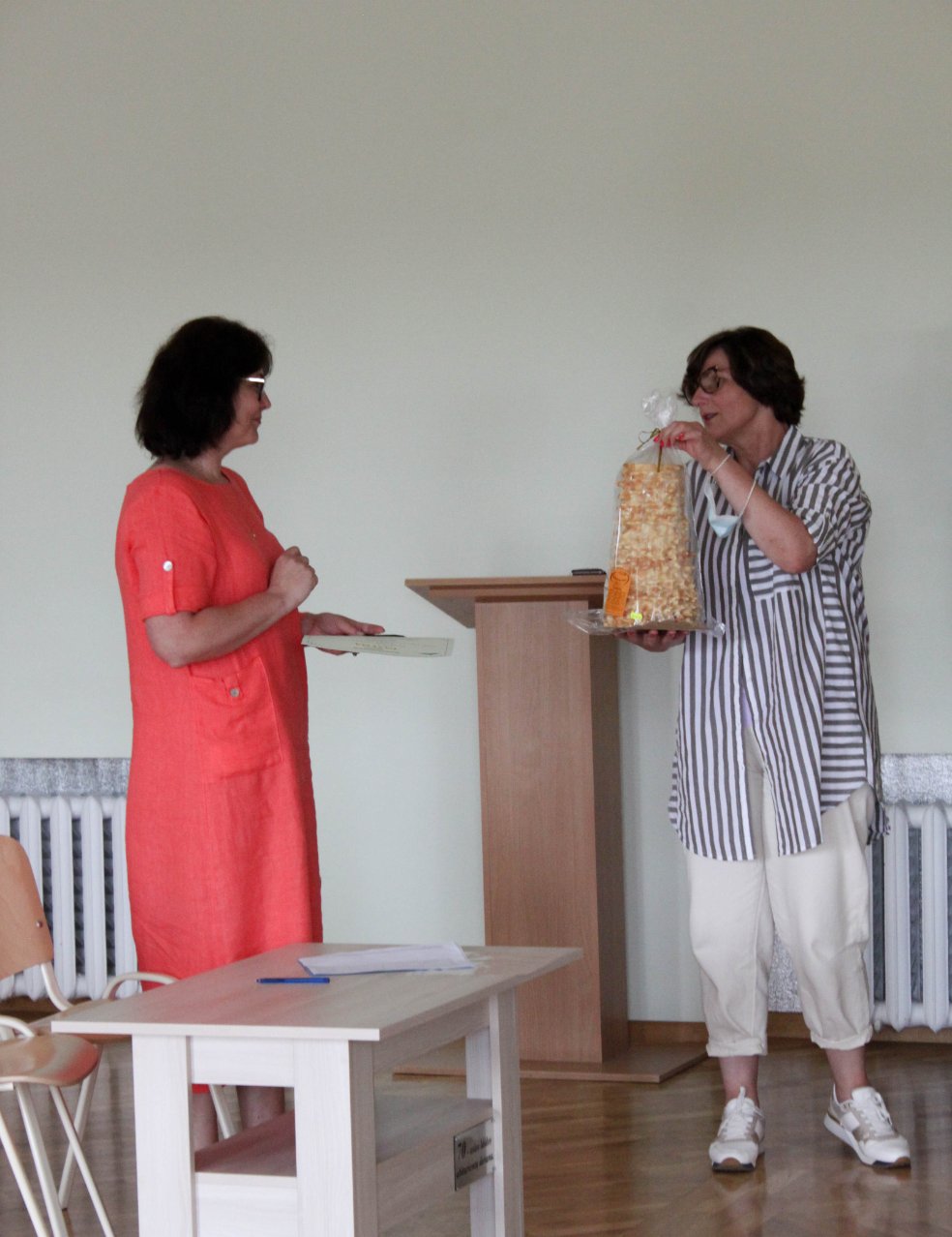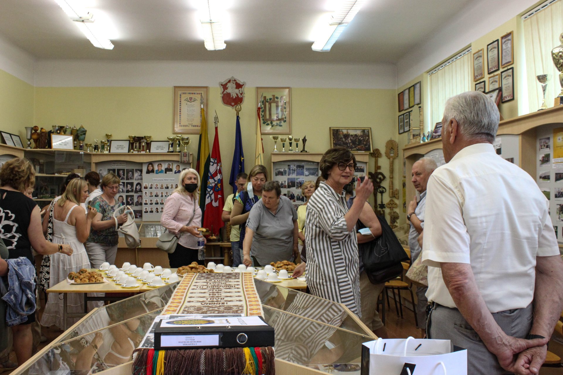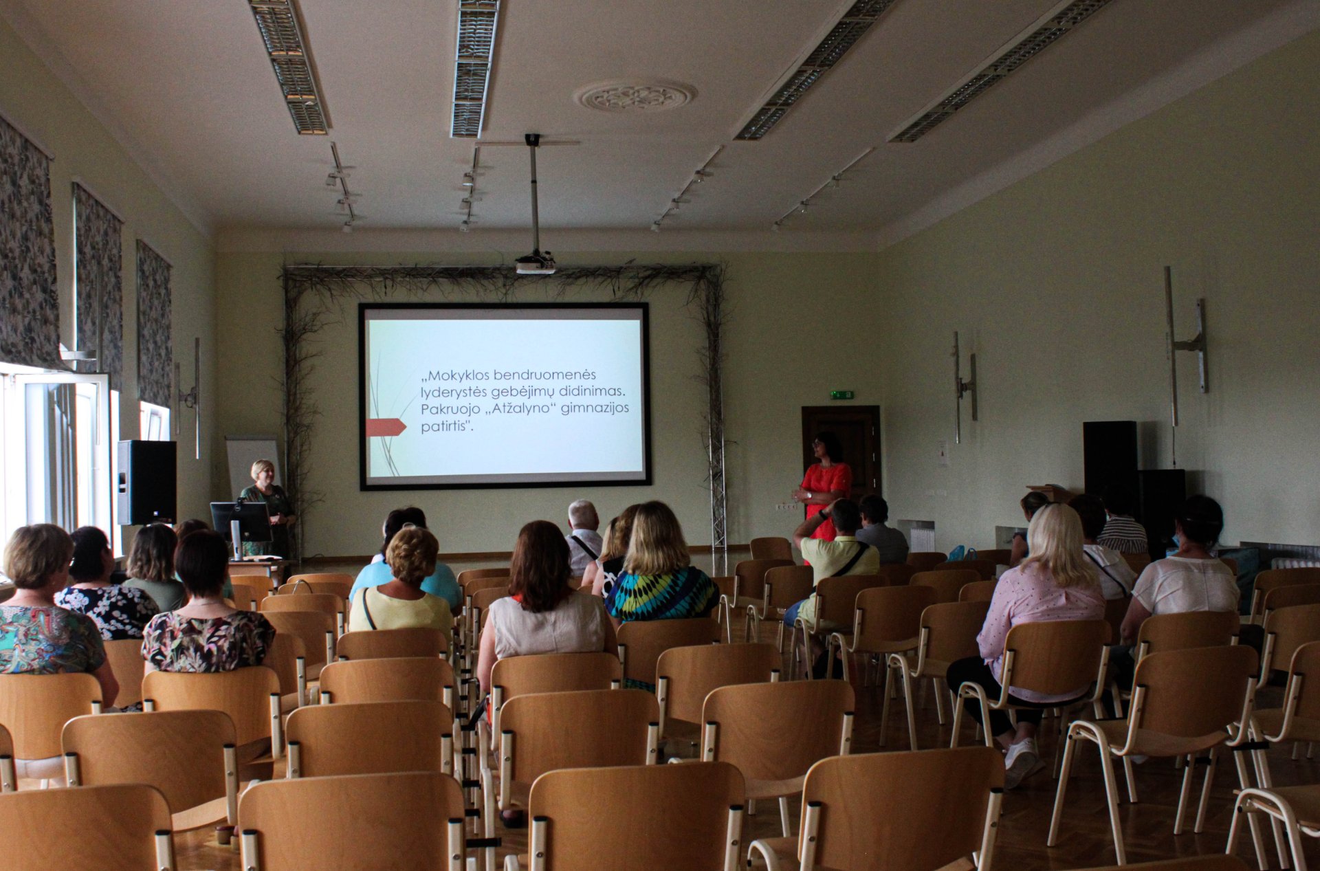 Birželio 25 d. į mūsų gimnaziją užsuko Kretingos rajono Salantų gimnazijos administracija ir mokytojai. Posėdžių ir konferencijų salėje „Atžalyno“ gimnazijos direktoriaus pavaduotoja ugdymui, atliekanti direktoriaus pareigas Rasa Bertulienė ir direktoriaus pavaduotoja ugdymui Rasa Augustinaitienė svečiams pristatė gimnazijos mokymosi aplinkas, įvairias veiklas, įgyvendintus ir vykdomus vietinius ir tarptautinius projektus, vestas integruotas ir atviras pamokas ne tik gimnazijoje, bet ir svečiose šalyse. Kiek vėliau gimnazijos muziejaus vadovas Vidutis Skirmantas aprodė svečiams muziejaus eksponatus, papasakojo mokyklos istoriją, kartu su mūsų gimnazijos administracija maloniai pabendrauta prie arbatos puodelio. Po to visi pakviesti apžiūrėti renovuotų kabinetų. Smagu buvo patirti bendrystės jausmą ir pagalvoti apie bendradarbiavimą ateityje.