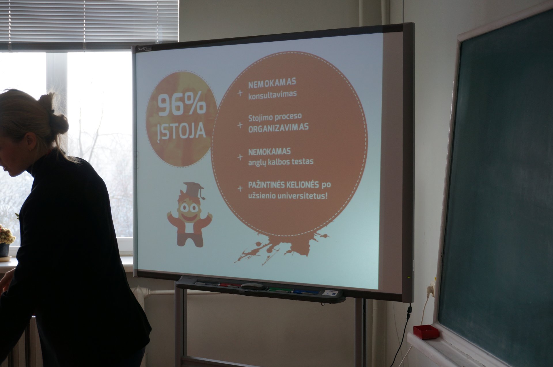 Lapkričio 9 dieną gimnazijoje svečiavosi projekto ,,Kurk Savo Ateitį!“ organizacijos „KASTU International“ atstovė Monika Elijošienė, kuri pasidalijo aktualia bei naudinga informacija apie studijų užsienyje galimybes, stojimo į aukštąsias mokyklas procesą, finansavimo galimybes. Gimnazistai buvo supažindinti su Danijos, Švedijos, Nyderlandų, Anglijos bei Škotijos švietimo sistema, jiems papasakoti jau studijavusių šiose šalyse atsiliepimai. Atstovė pateikė ir kitos vertingos medžiagos, pavyzdžiui, kaip užpildžius vieną anketą internetu galima įstoti net į kelis skirtingus universitetus. Gimnazistai susidomėjo tuo, kad yra organizuojamos kelionės į Danijos ir Nyderlandų aukštąsias mokyklas, kada mokiniai patys gali pabendrauti su dėstytojais ir studentais. Tikimės, kad susitikimas padės jauniems žmonėms apsispręsti, kokį kelią rinktis ateityje.