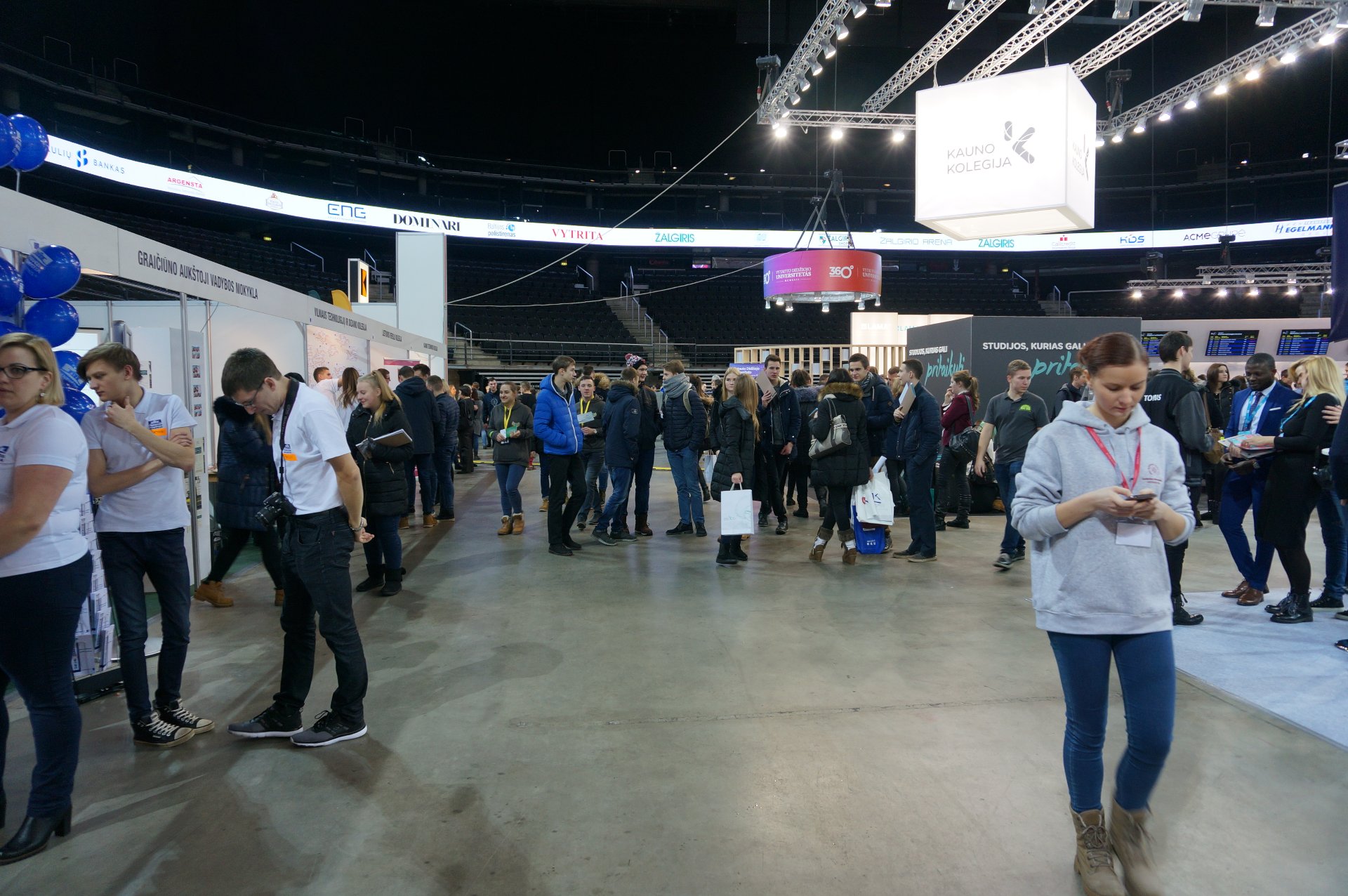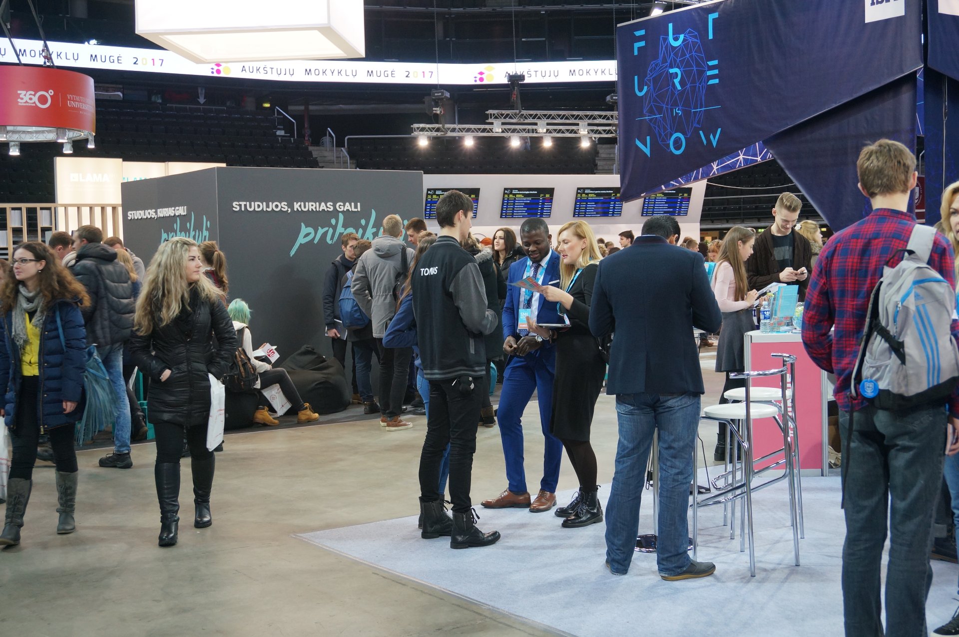 šurmuliavo „Aukštųjų mokyklų mugė 2017“. Grupelė mūsų antrokų gimnazistų sausio 18 d. turėjo unikalią galimybę susipažinti su aukštųjų mokyklų studijų programomis, priėmimo tvarka ir apmąstyti pasirinkimo galimybes. Dėstytojai konsultavo gimnazistus, kokių žinių ir gebėjimų reikia norint studijuoti vienoje ar kitoje aukštojoje mokykloje. Mugėje dalyvavo beveik keturios dešimtys šalies universitetų, kolegijų ir mokyklų. Tikiuosi, kad antrokai gimnazistai bus drąsesni ir labiau savimi pasitikės, kai reikės sudaryti individualų ugdymosi planą pagal vidurinio ugdymo programą.