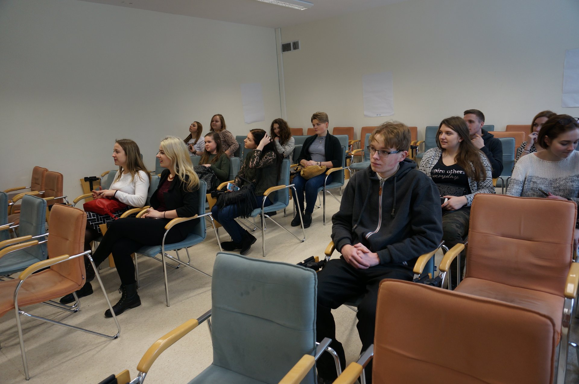 Spalio 19 d. į gimnaziją atvyko KTU Panevėžio technologijų ir verslo fakulteto priėmimo organizavimo administratorė Rugilė Draugelytė, kuri vedė užsiėmimus II gimnazijos klasių mokiniams. Viešnia akcentavo, kaip svarbu pažinti save, įvertinti savo gebėjimus ir interesus prieš renkantis būsimąją specialybę. Taip pat Rugilė Draugelytė apžvelgė, kokias studijų programas vykdo KTU, ką svarbu žinoti prieš pildant individualų mokymosi planą III-IV gimnazijos klasėms, supažindino su stojimo naujovėmis. Kiek vėliau administratorė susitiko ir su abiturientais, kurie plačiau sužinojo apie KTU Panevėžio technologijų ir verslo fakultete organizuojamas studijų programas, stojimo sąlygas. Ketvirtokai gimnazistai išgirdo daug patarimų, be to, Rugilė Draugelytė atsakė į mokiniams rūpimus klausimus ir padrąsino nebijoti baigiamųjų egzaminų.
