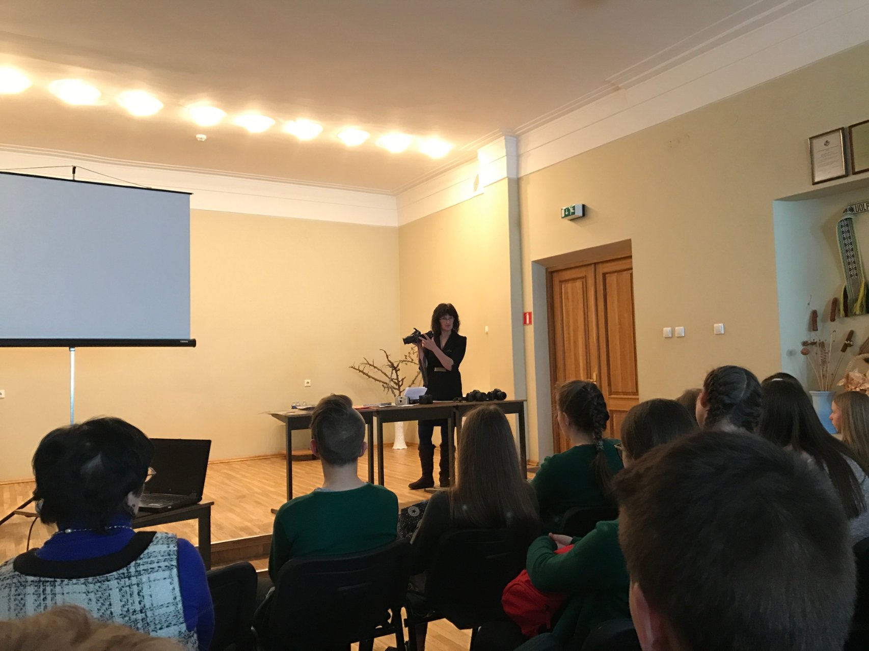 Kovo 7 d. Pakruojo kultūros centre įvyko pirmasis susitikimas. Grupė gimnazijos Ib, IIa ir IIb klasių mokinių, lietuvių kalbos ir literatūros mokytoja Romualda Juknevičienė dalyvavo fotografijos pradžiamokslio mokymuose, kuriuos vedė fotografė Larisa Kazakevičienė ir dailės mokytoja Jūratė Sokienė. Gimnazistai išgirdo daug praktinių patarimų, nagrinėjo nuotraukose užfiksuotą akimirką.
