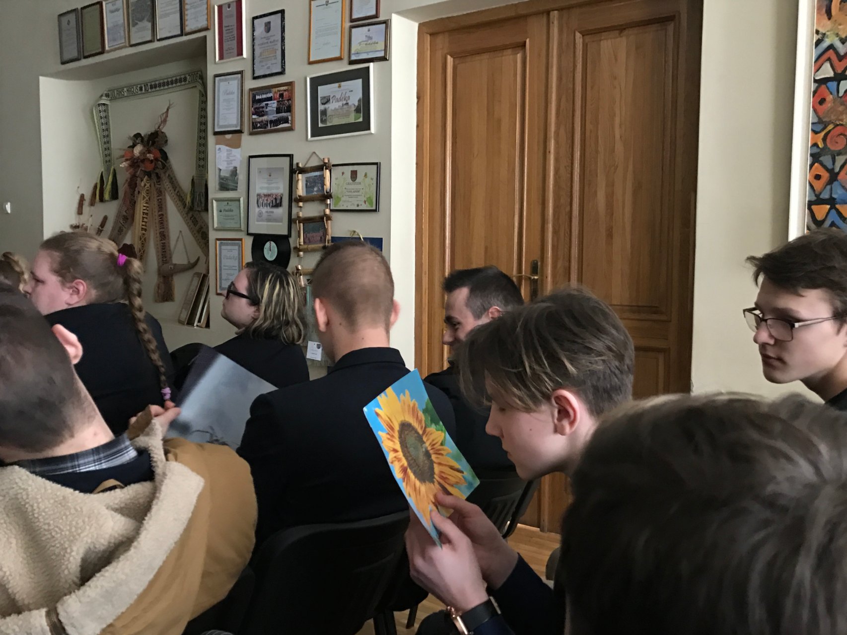 Mūsų pilietiški gimnazistai kartu lietuvių kalbos mokytoja Valda Jukniene domėjosi Prienų Justino Marcinkevičiaus viešosios bibliotekos paruošta paroda „Nuo ištakų iki šiandienos“. Puiki proga susipažinti su žymaus lietuvių poeto, dramaturgo Justino Marcinkevičiaus gyvenimu teko Ib, IIb, IIIb ir IVc klasių mokiniams. Gimnazistai apžiūrėjo nuotraukų stendus, skaitė paties kūrėjo žodžius, tyrinėjo kitų žymių asmenų ar artimųjų mintis apie Justiną Marcinkevičių. Mokiniai daugiau sužinojo apie poeto kūrybą, darbinę ir visuomeninę veiklą, bendrystę su Prienų krašto žmonėmis. Eidami namo gimnazistai ryžosi net padainuoti, juk tiek daug dainų sukurta pagal Justino Marcinkevičiaus eilėraščių tekstus.
