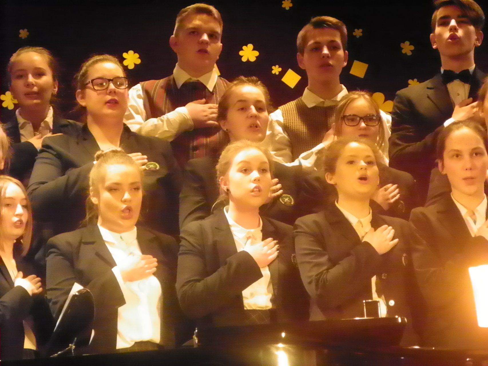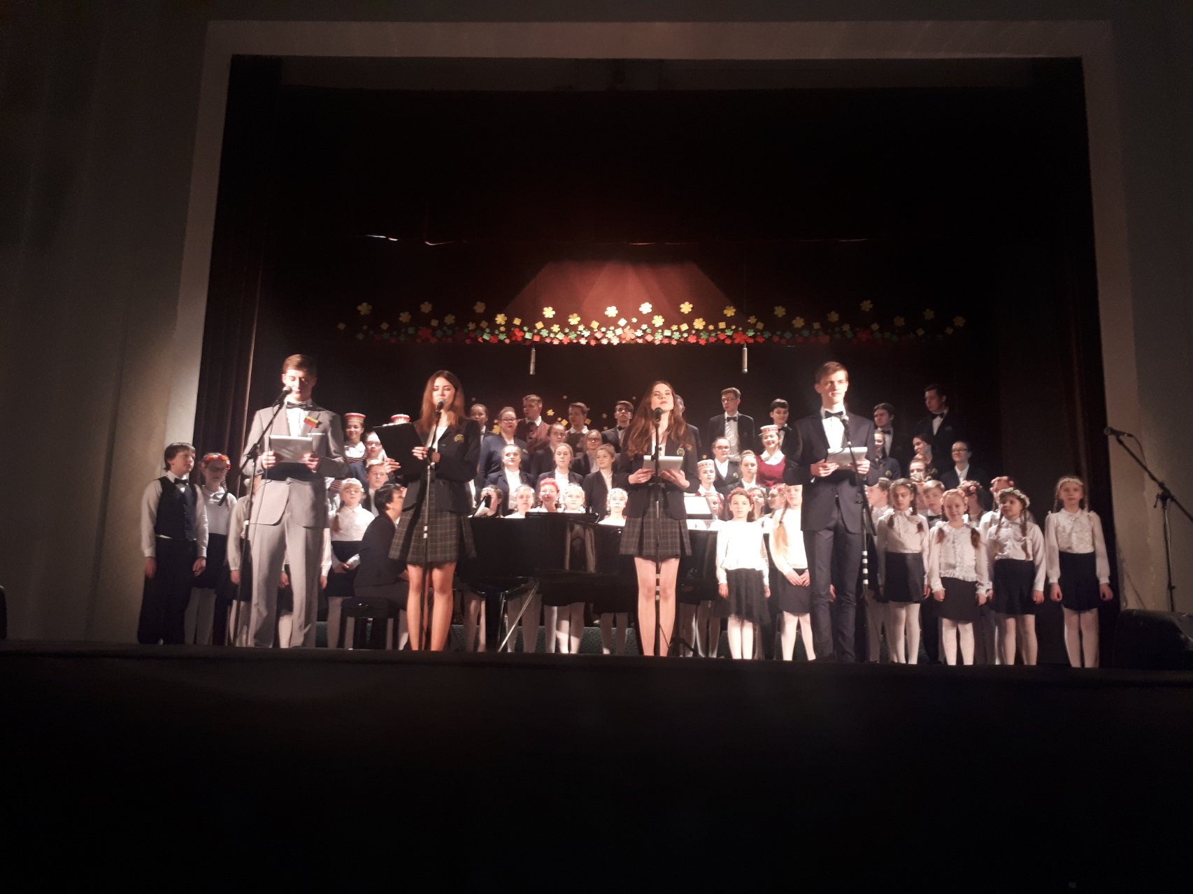 Jau tapo tradicija, kad minint Kovo 11-ąją visuomenei koncertą dovanoja Pakruojo „Atžalyno“ gimnazijos mokiniai. Tad 12 val. pakruojiečiai giedodami himną pradėjo iškilmingą minėjimą Kultūros centre. Po oficialiosios renginio dalies vedėjai Kamilė, Aistė, Rimbertas ir Paulius skaitė poetų posmus, priminė mums visiems svarbias istorijos datas, kvietė švęsti Lietuvos laisvę. Koncertą pradėjo Pakruojo Juozo Pakalnio muzikos mokyklos jaunučių choras. Vėliau prie minėto kolektyvo prisijungė „Atžalyno“ gimnazijos mišrus choras. Gėrėjomės ir savo nuostabiais šokėjais. Jaunuolių liaudiškų šokių grupė žavėjo plastiškais judesiais, smagiai sukosi ir užbūrė visus žiūrovus. Išdidžiai skambėjo mūsų šauniojo vaikinų ansamblio traukiamos dainos. Šokio šėlsmo pojūtį sukūrė ir merginų liaudiškų šokių grupė. Išgirdome naujų, dvasią nuskaidrinančių dainų, miela ir gera buvo išvysti, kaip vis nuotaikingiau sukasi šokėjų poros.