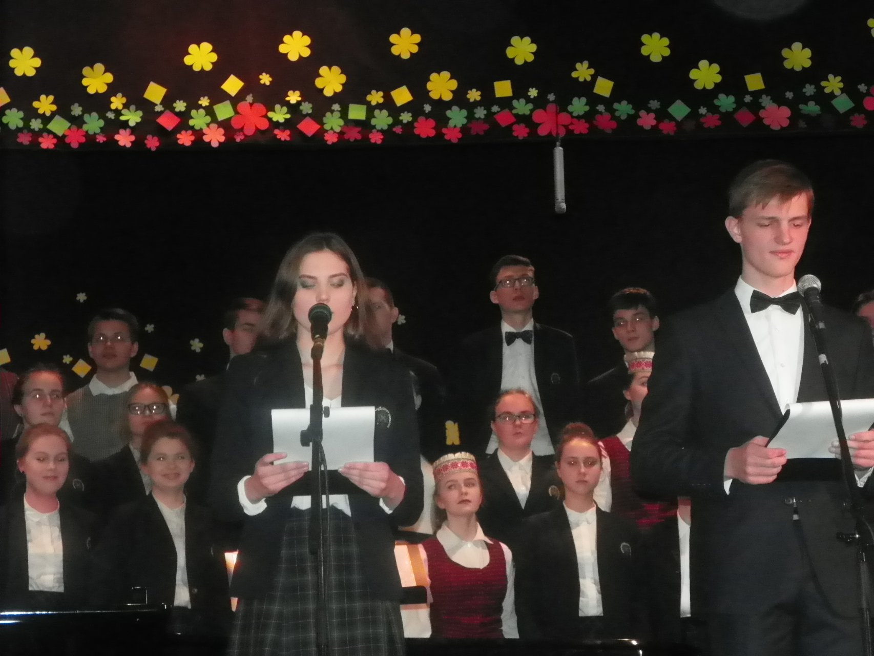 Meninius pasirodymus palankiai įvertino publika, o mes už kruopštų darbą širdingai dėkojame jaunuolių ir merginų liaudiškų šokių grupių choreografijos vadovei Audronei Geležinytei, muzikos mokytojai Vaivai Klupšienei, gimnazijos mišraus choro, „Atžalyno“ vaikinų ansamblio, taip pat Pakruojo Juozo Pakalnio muzikos mokyklos jaunučių choro vadovei Ingridai Tuomienei, koncertmeisterei Rūtai Venclovienei, direktoriaus pavaduotojai Sonatai Bernadickienei, gimnazijos direktoriui Kęstučiui Razumui ir visiems, prisidėjusiems prie šio gražaus renginio.