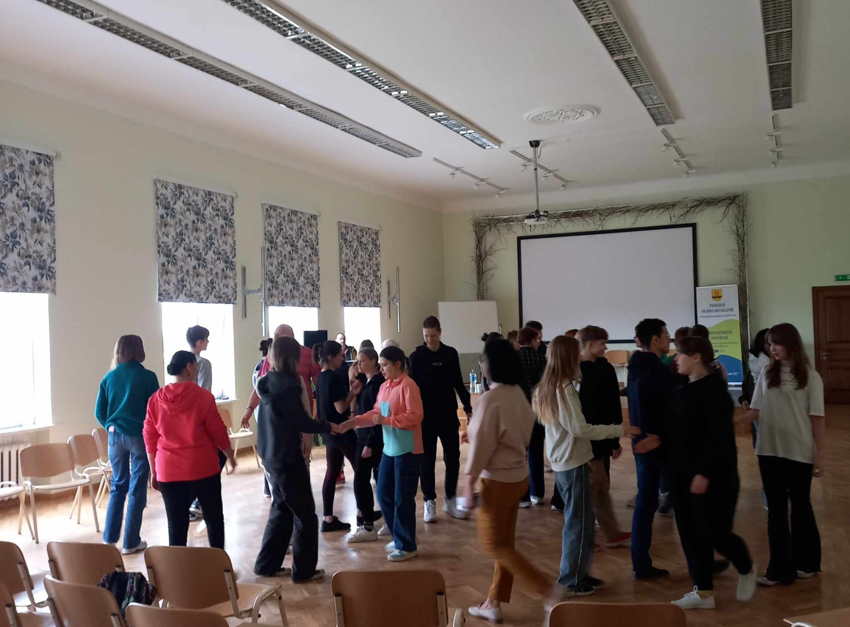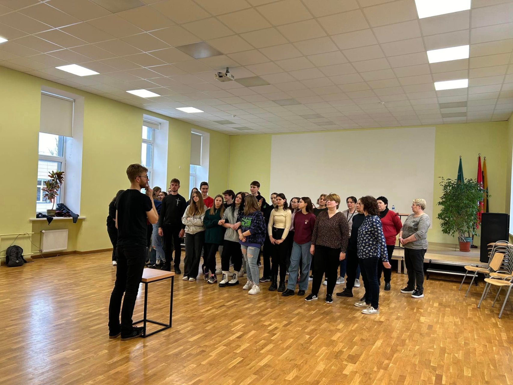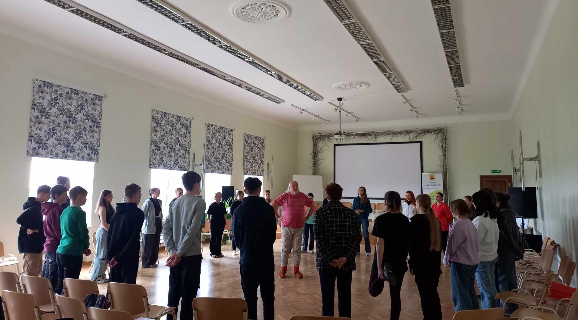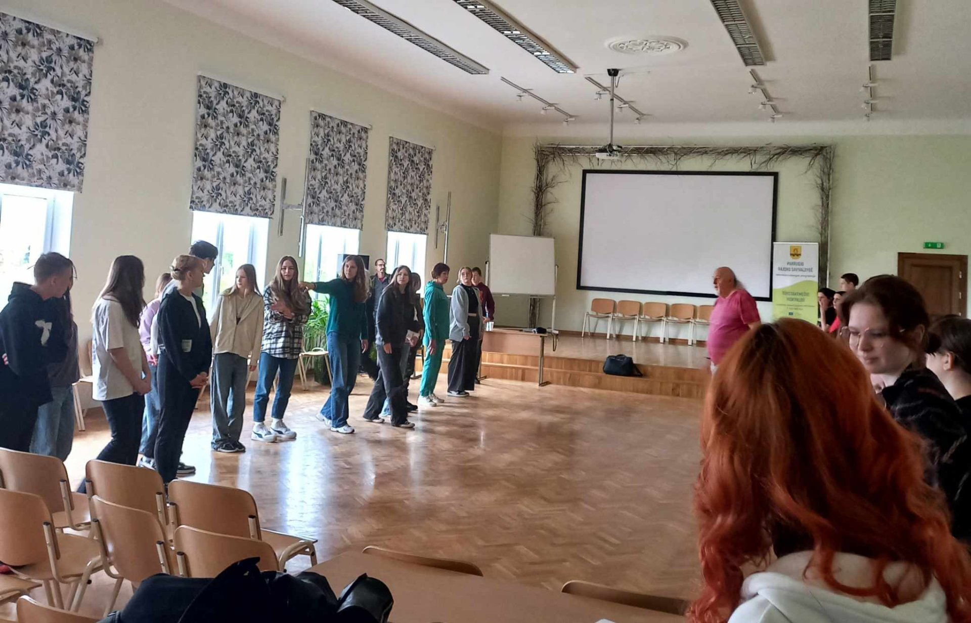 Sausio 24 ir 25 dienomis Linkuvos gimnazijos ir Pakruojo r. „Žemynos” progimnazijos aktų salėse vyko TŪM užsiėmimai su Klaipėdos jaunimo teatro aktoriumi Simonu Lunevičiumi ir Lietuvos Muzikos ir teatro akademijos lektore, scenos judesio dėstytoja Rugile Latvėnaite-Lunevičiene.