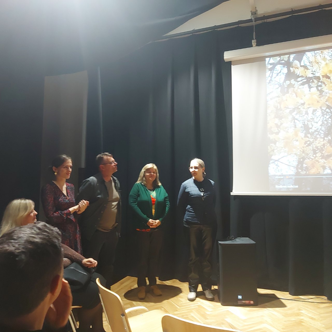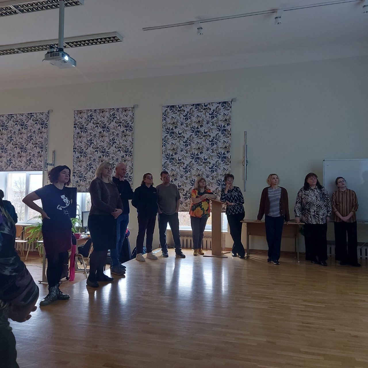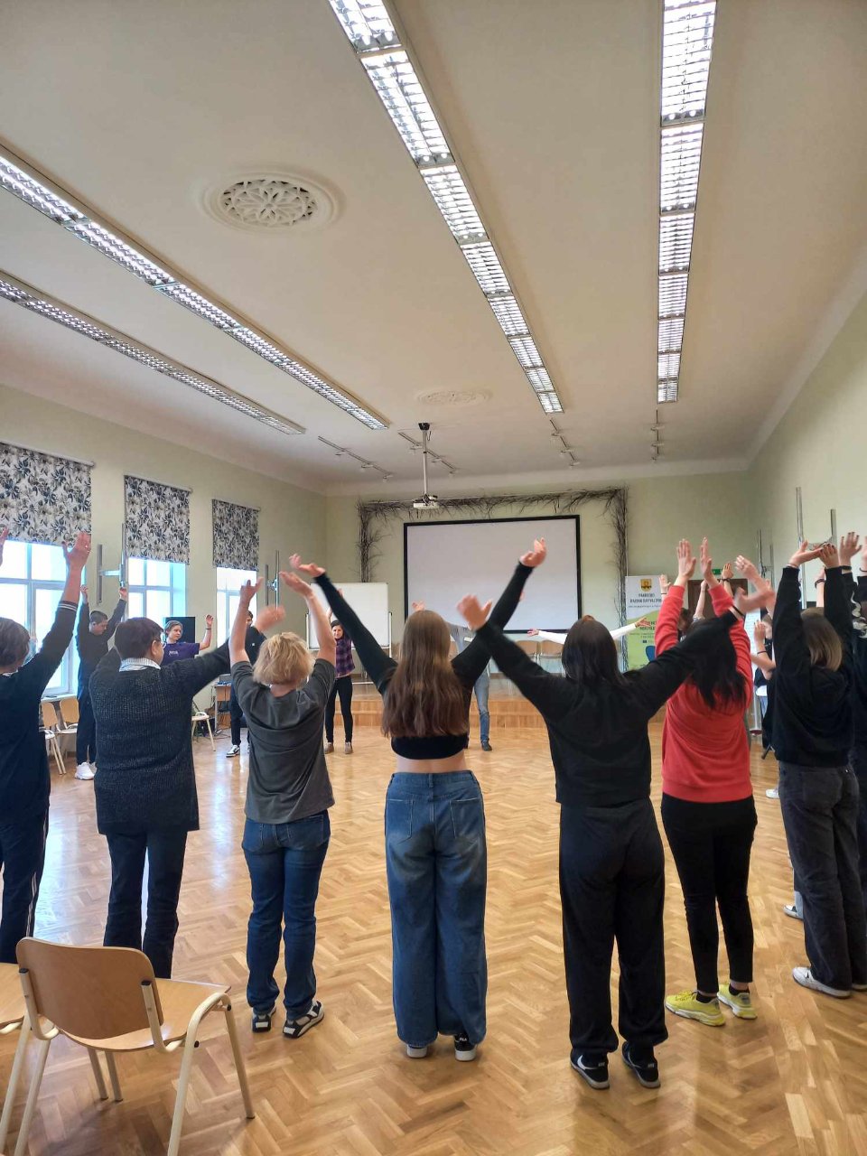 Laikas greitai pralėkė, nes buvome įtraukti į įdomias pratybas, kurias lydėjo režisieriaus parinkta foninė muzika ir jo be galo įtaigus kalbėjimas bei dalijimasis savo išmintimi. Susitikimą baigėme profesoriaus paskaita „Teatro magija – meniniai potyriai ir psichoterapinis efektas“.