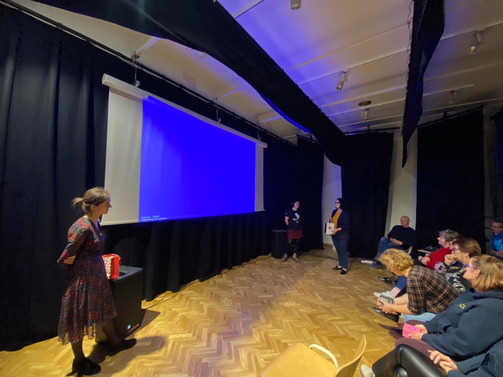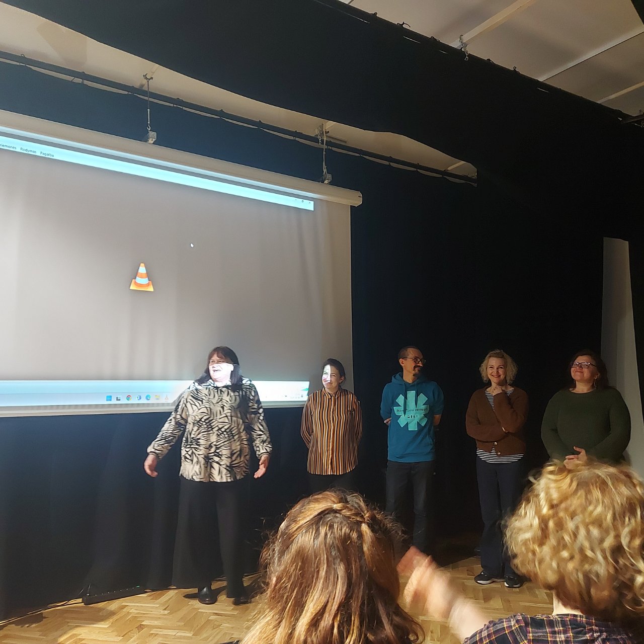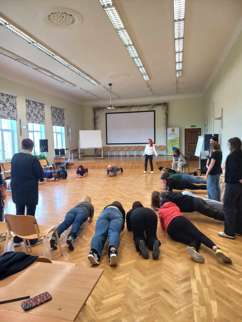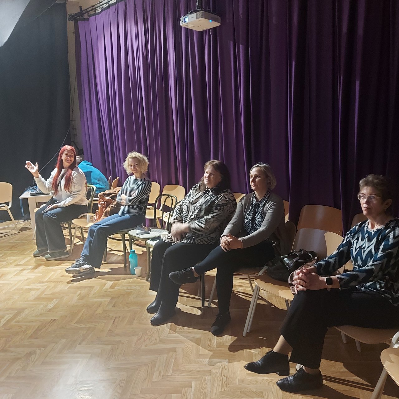Pirmąją užsiėmimų dieną, beje, kaip ir kitomis, aktorė Kamilė suteikė labai daug žinių apie buvimą scenoje. Ji dalijosi patirtimi, kaip išbūti joje neprarandant geriausios savo būsenos. Mokiniai ir mokytojai leido iš savęs pasijuokti bei suprato, ką reiškia juokinti publiką. Ir tai, kaip paaiškėjo, yra labai sunku, bet įtraukia. Man patiko Kamilės sugebėjimas parodyti dalyviams, kad visos patirtys, geros ir blogos, yra vienodai svarbios. Jos buvimas mums, teatro mėgėjams, leido pasidžiaugti kūrybiniu procesu ir nesmerkti savęs už padarytas klaidas, o tai ugdymo(si) procese yra svarbiausias dalykas, tik mums sunkiai pasiekiamas.