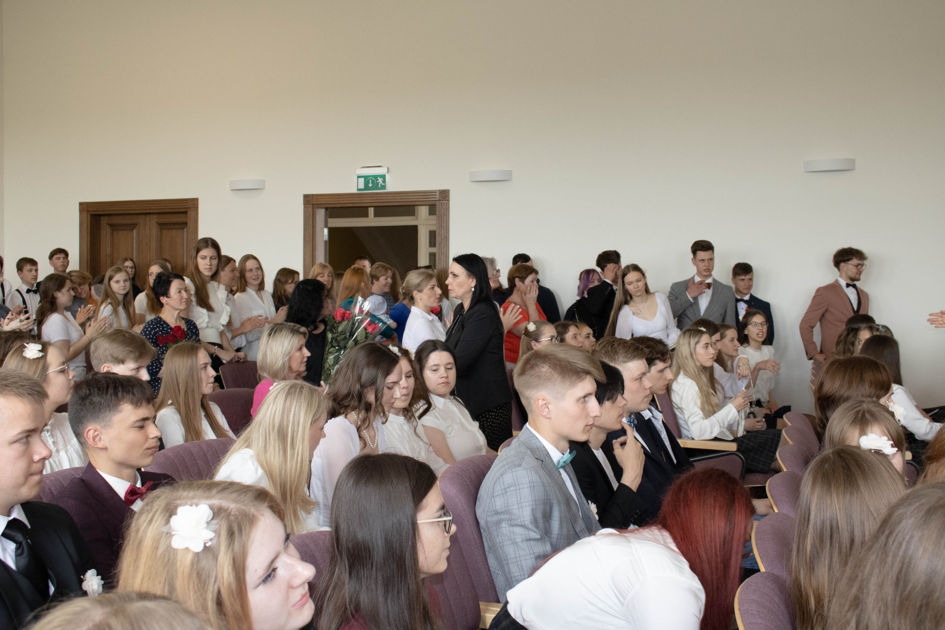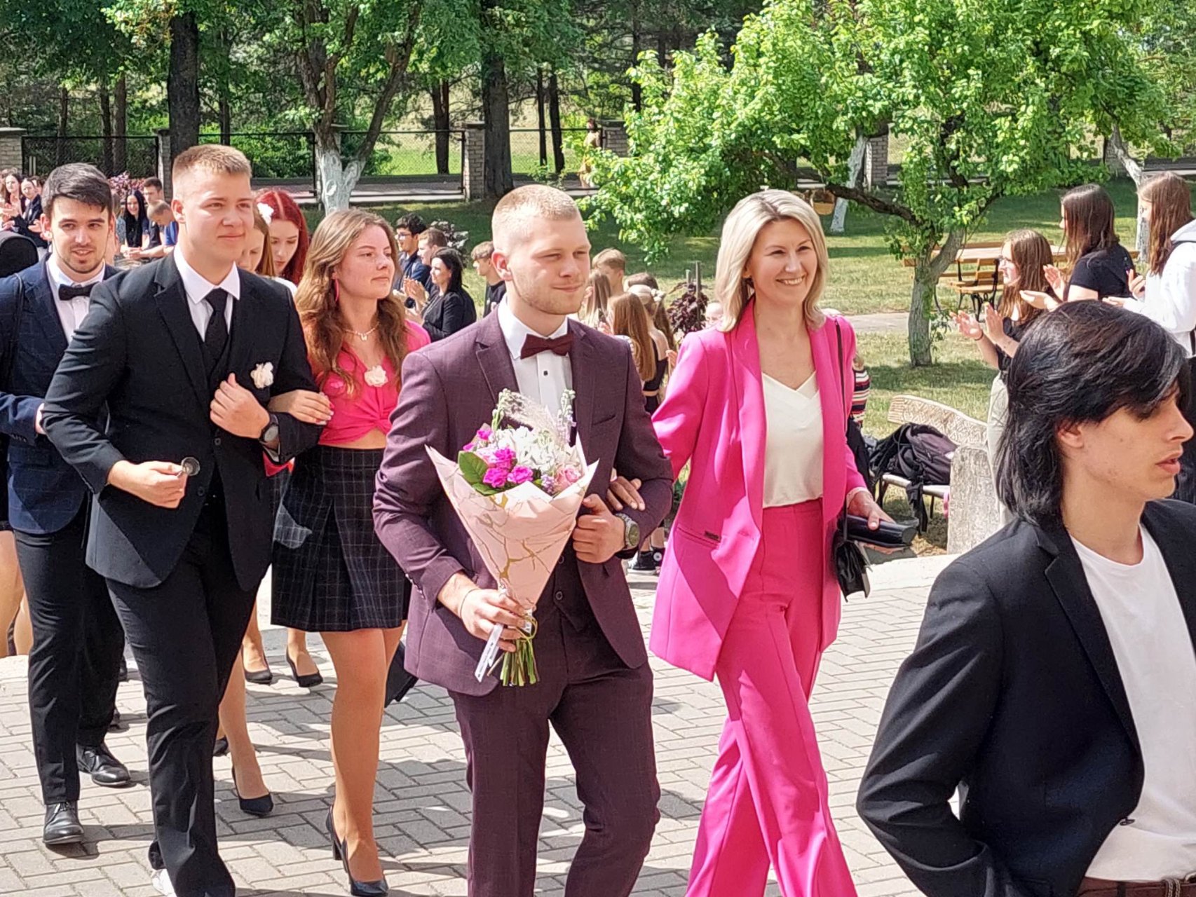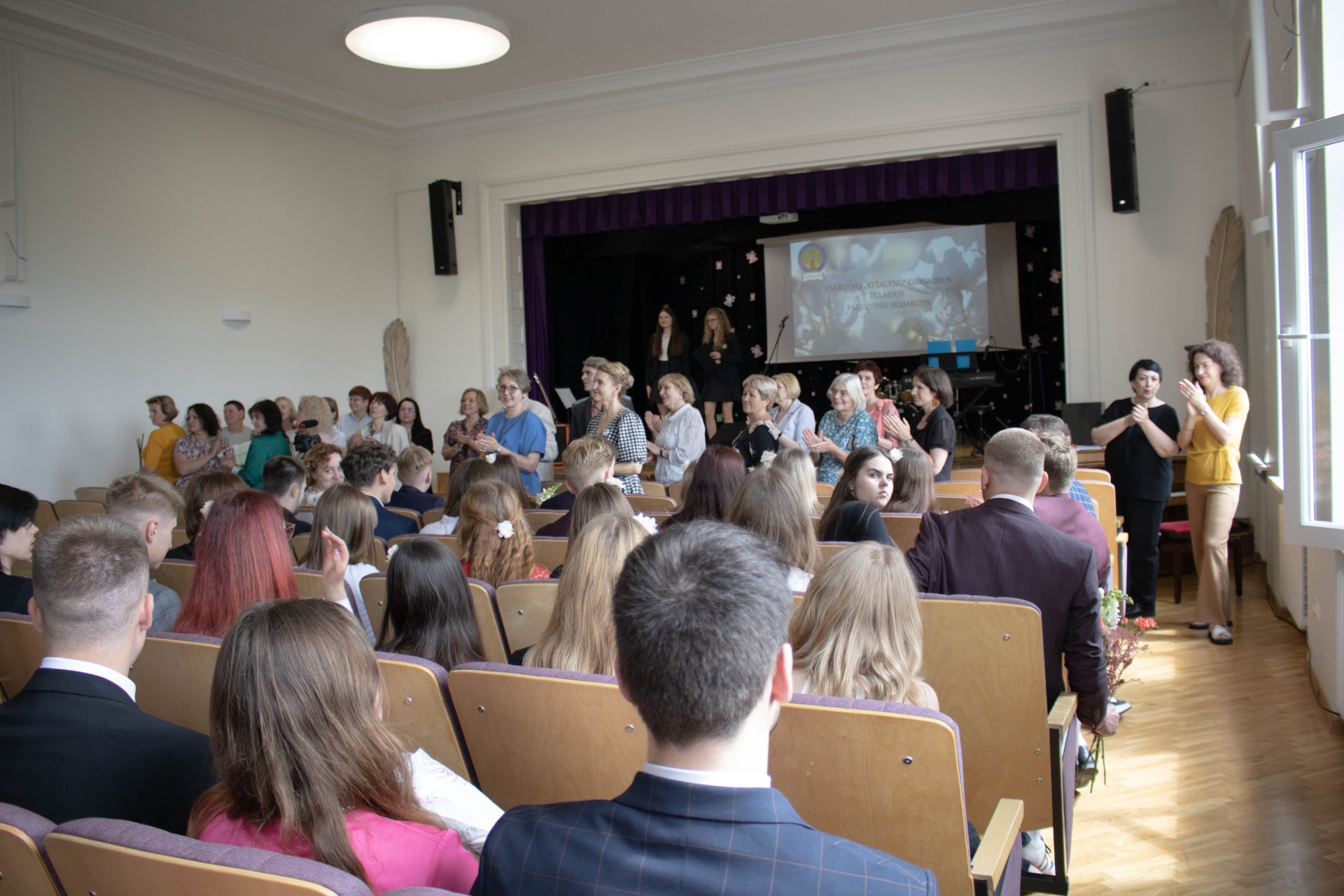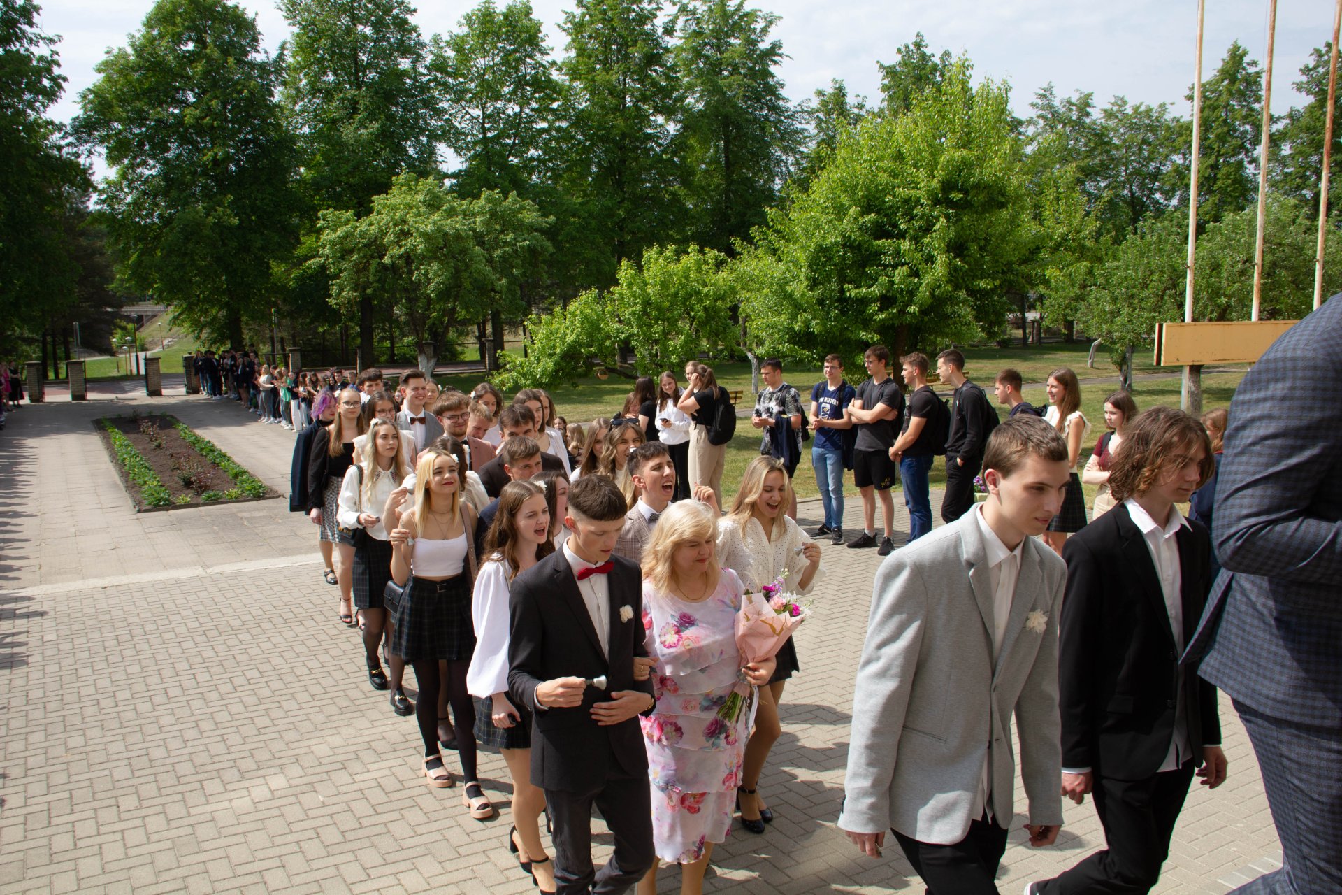 75 gimnazijos laidai nuskambėjo Paskutinis skambutis Aktų salėje Paskutinio skambučio šventė buvo jautri ir nuoširdi. Renginį tradiciškai organizavo trečiokai gimnazistai. Abiturientams širdis graudino mokinių muzikiniai pasirodymai. Kūrinius atliko vokalinis tercetas (Evelina, Gabrielė ir Jokūbas), Martyna ir grupė „Antiq“, dvi skambias dainas dovanojo vaikinų ansamblis, taip pat ukulėlių vokalinis ansamblis „Fireflies“, girdėjome Evelinos atliekamą kūrinį „Smuiko stygos“, o jai smuiku pritarė abiturientas Jokūbas, ketvirtokai žavingai sukosi valso sūkury. Trečiokas Vincentas skaitė savo kūrybos eilėraštį ir kvietė neliūdėti, juk pavasaris, apie jaunystės šėlsmą ketvirtokų gyvenime buvo ir trečiokų sukurtas filmukas. Padrąsinantys ir sugraudinantys, viltingi ir jautrūs žodžiai skambėjo iš gimnazijos direktorės Astos Valuntienės, buvusio direktoriaus Kęstučio Razumo, direktoriaus pavaduotojos ugdymui Rasos Augustinaitienės (beje, patiems aktyviausiems ji įteikė padėkos raštus), mokinių prezidentės Gretos Gudaitės, abiturientų pirmųjų mokytojų ir buvusių auklėtojų lūpų, taip pat padėkos ir atsisveikinimo žodį tarė ir patys abiturientai. Tylos minute prisimintas ir pagerbtas buvusio auklėtojo, mokytojo Juozo Vėdaro atminimas. Be to, šventėje dalyvavo ir sporto centro direktorė Aušra Dvelienė, kuri tarė sveikinimo žodį ir įteikė padėkos raštus geriausių sporto rezultatų pasiekusiems abiturientams.