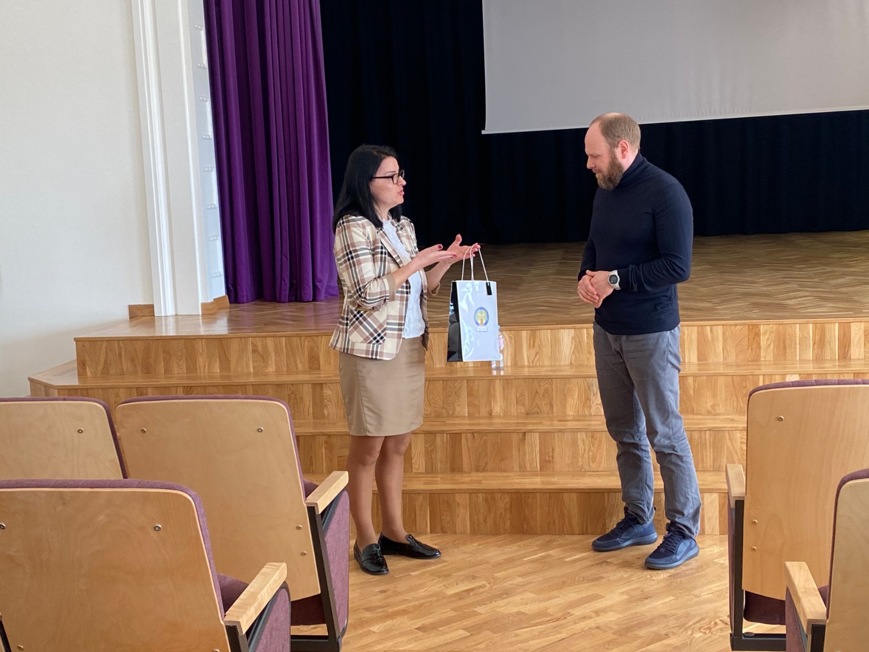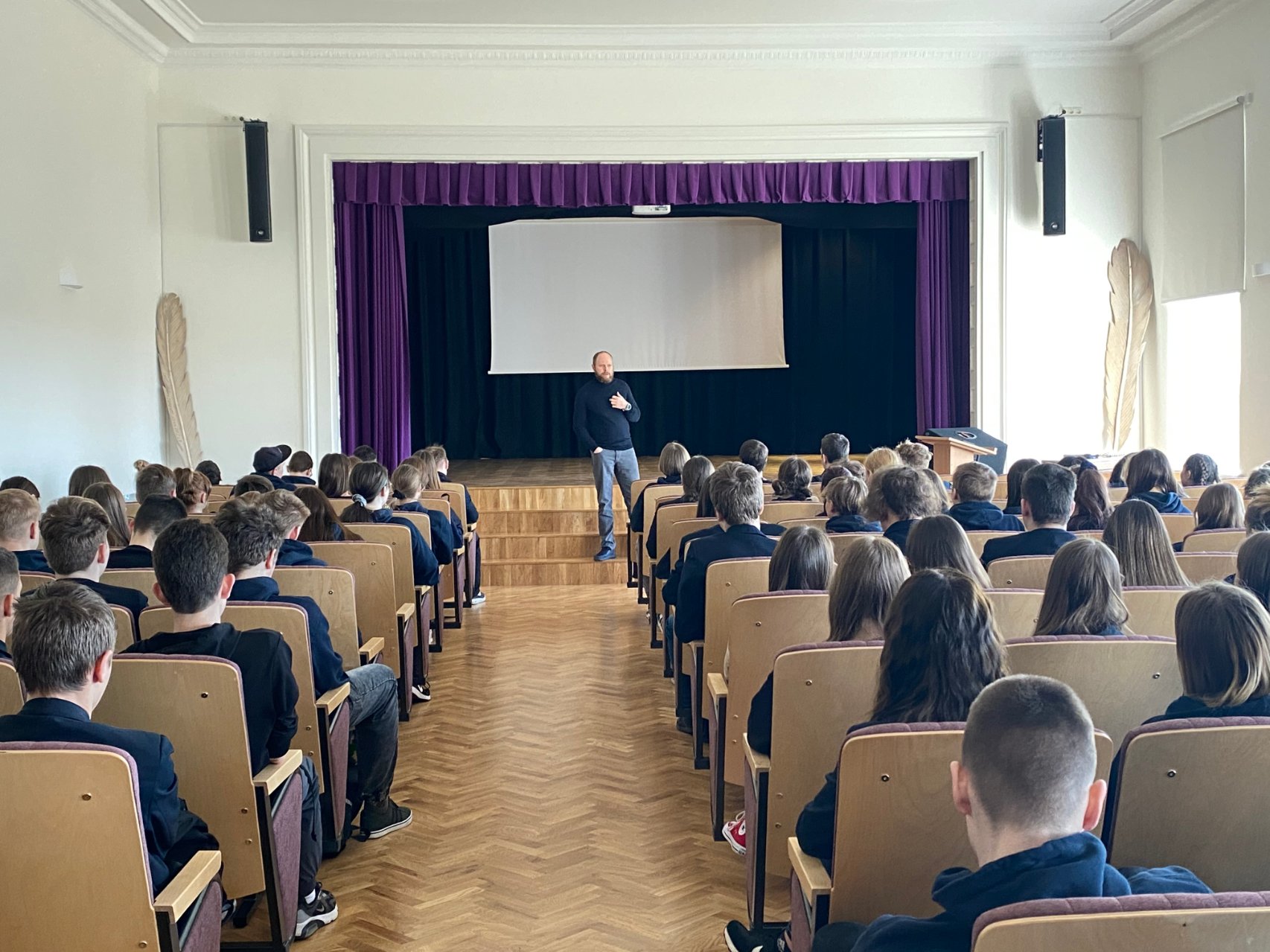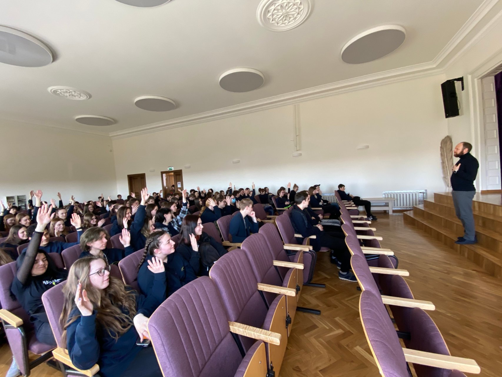 2022 m. balandžio 13 d. gimnazijoje svečiavosi šeimų ir pedagogų konsultantas, psichoterapeutas, psichologas Vaidas Arvasevičius. Jis kalbėjo gimnazijos bendruomenei aktualia tema „Autoritetų griūtis. Šiuolaikinio jaunimo virsmo suaugusiais drama.“ Lektorius diskutavo su gimnazistais apie autoritetų paieškas, mokytojams svečias linkėjo mąstyti laisvai ir drąsiai, mokinių tėveliams davė patarimų, kaip geriau suprasti vaikus.