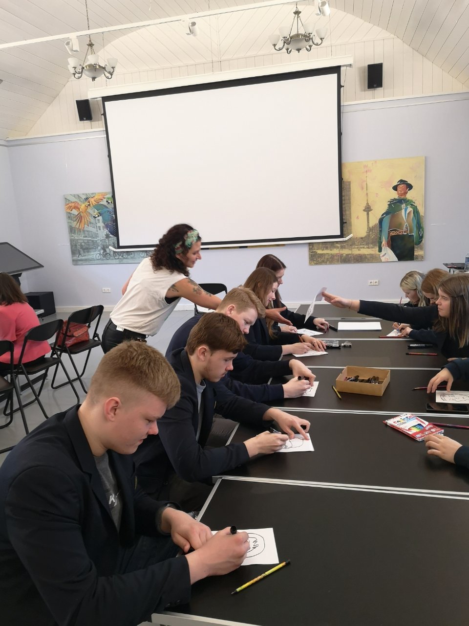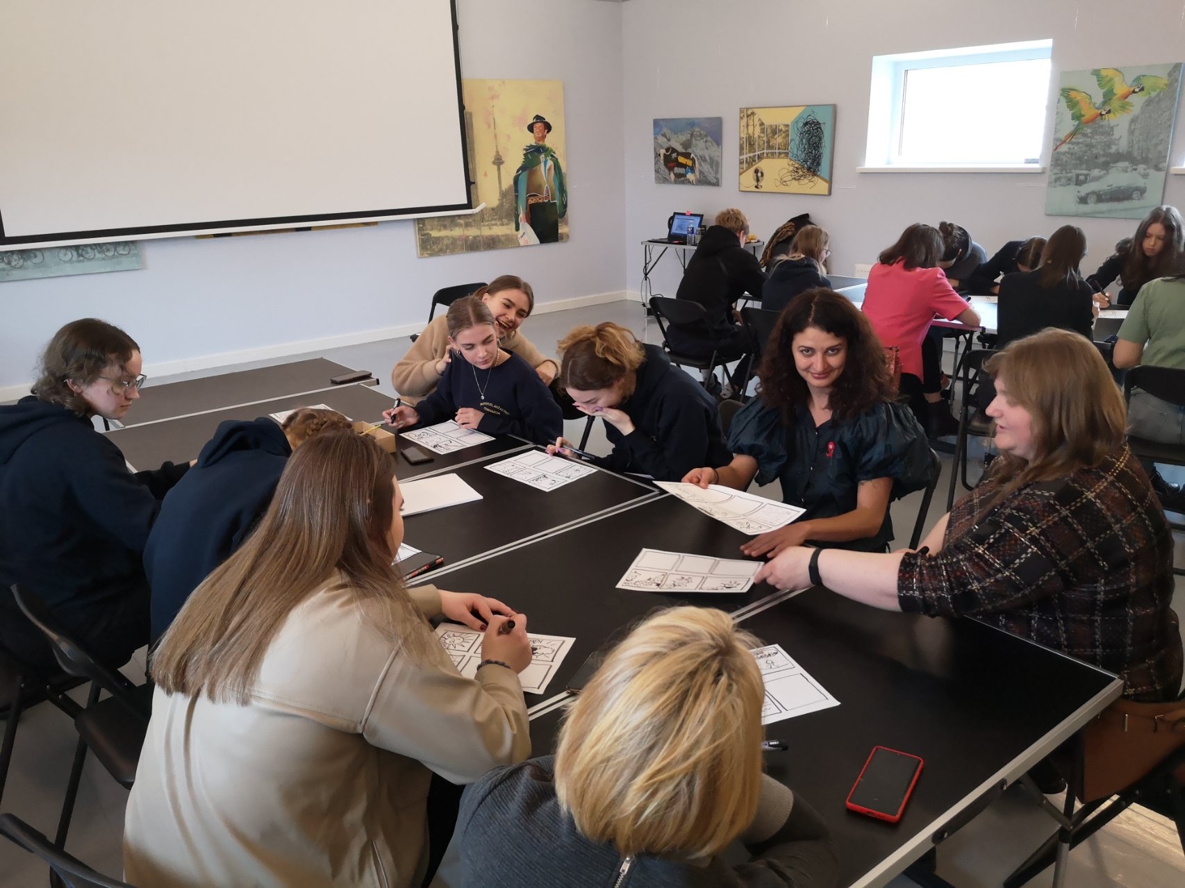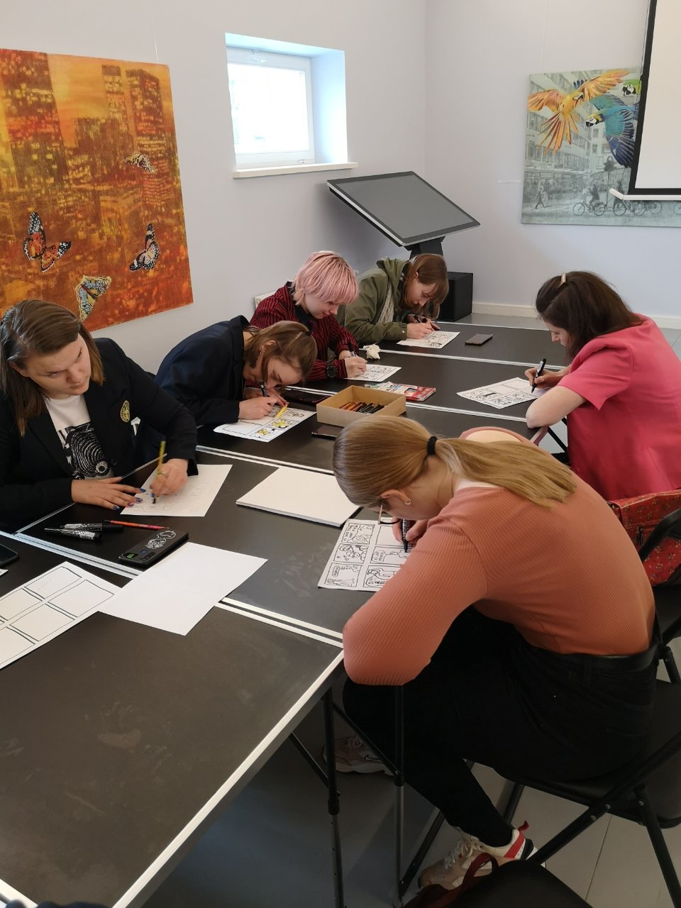 Balandžio 7 dieną Pakruojo „Atžalyno“ gimnazijos trečių ir ketvirtų klasių mokiniai, kurie lanko dailės pamokas, turėjo neeilinę galimybę patirti nuotykį kurdami personažus, jų emocijas ir išgyvenamas istorijas. Net sunku patikėti, kaip sėkmingai galima išmokti naujų įgūdžių, kai tau tikslingai patarinėja profesionalė. Mokiniai per pusantros valandos ne tik įvaldė dalį personažo nuotaikos kūrimo metodų, pasisėmė komikso įgyvendinimo idėjų, bet ir pademonstravo savo unikalius gebėjimus ir buvo teigiamai įvertinti. Ir visa tai įvyko dėl Pakruojo Juozo Paukštelio viešosios bibliotekos atstovų įgyvendinamo projekto „Menų ir kartų jungtys: Iš Pakruojo krašto kilę menininkai ir vietos jaunimas“. Mes buvome pakviesti į pirmąjį užsiėmimą su komiksų kūrėja, menininke Migle. Labai džiaugiamės šiuo susitikimu ir esame dėkingi prisidėjusiems prie šios edukacijos įgyvendinimo. Ir net neabejoju, kad mokiniai įgytą patirtį dar ilgai prisimins kaip vieną įdomiausių dailės pamokų, kurioje susipažino su nauja saviraiškos forma - komikso kūrimu.