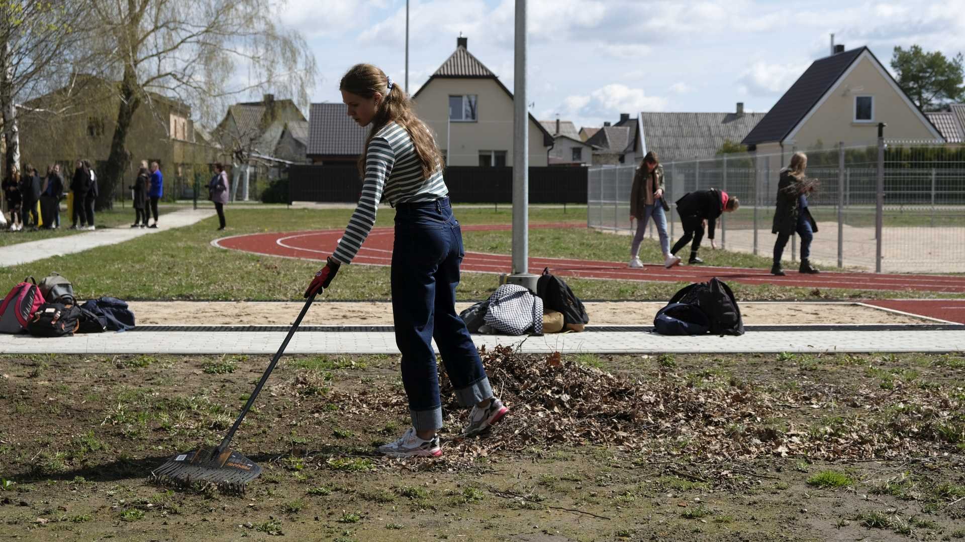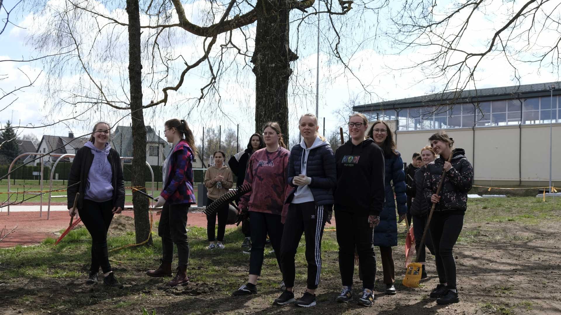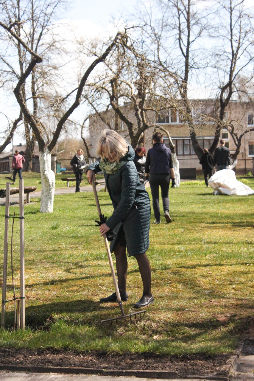 Pasigrožėti atbundančia gamta, saulės šviesoje įkvėpti gryno oro, pajusti, kaip veriasi širdys, išgyvenančios draugystės džiaugsmą, galėjome balandžio 26-osios popietę, išskubėję į lauką paieškoti po rudens užsilikusių lapų, surinkti šiukšlių, medžių šakų, net plytų sukrauti. Gimnazijos bendruomenė darbavosi uoliai: nešė maišus, kupinus lapų, dalijosi grėbliais, vieni kitiems padėjo. Paplušėję visi susibūrė prie gardžiųjų blynų su uogiene, vaišinosi arbata, bendravo. Gražus tas mūsų pavasaris...