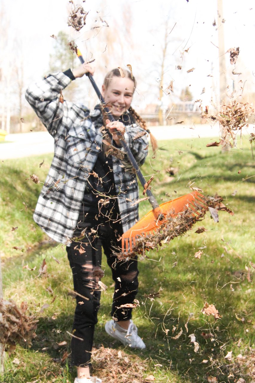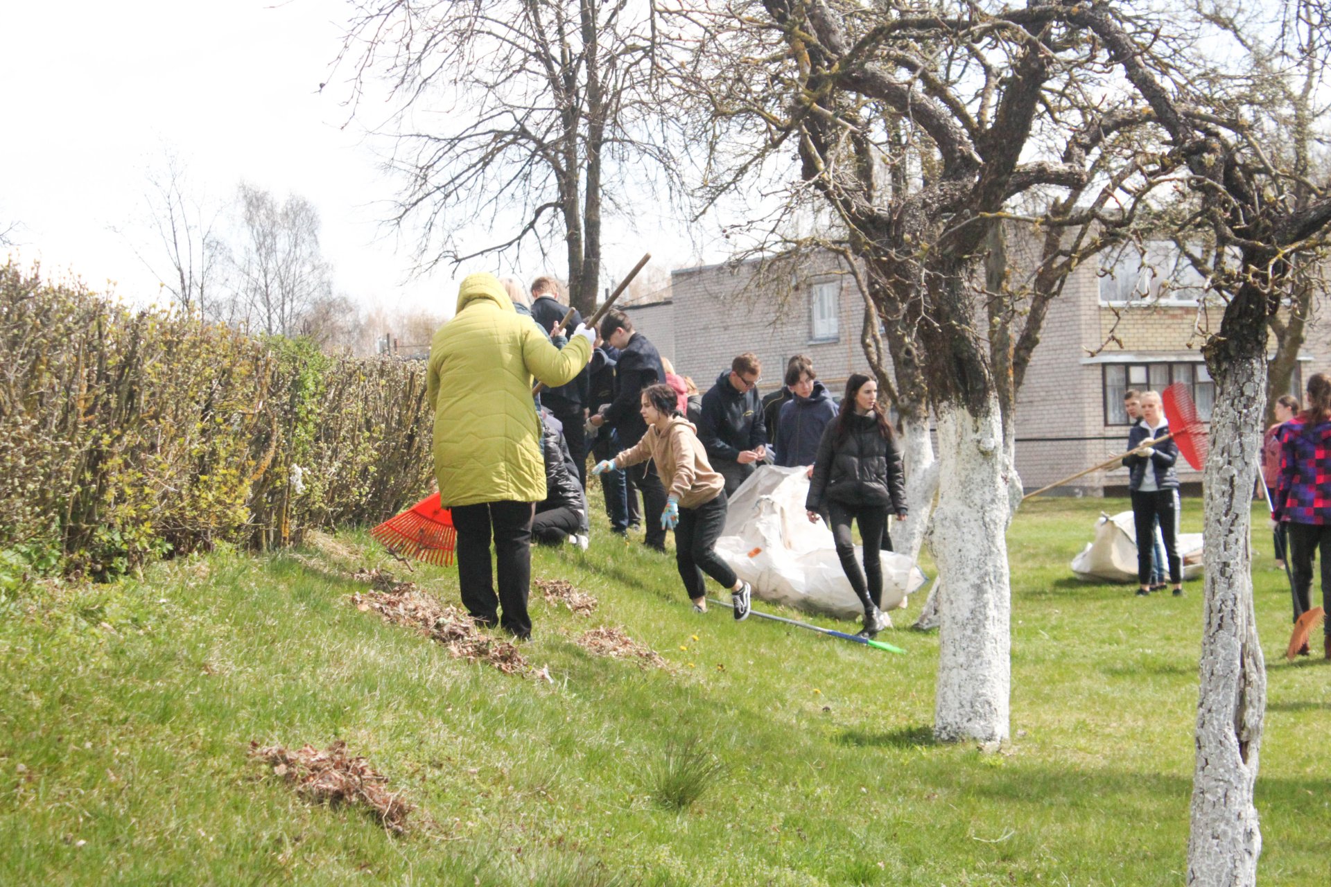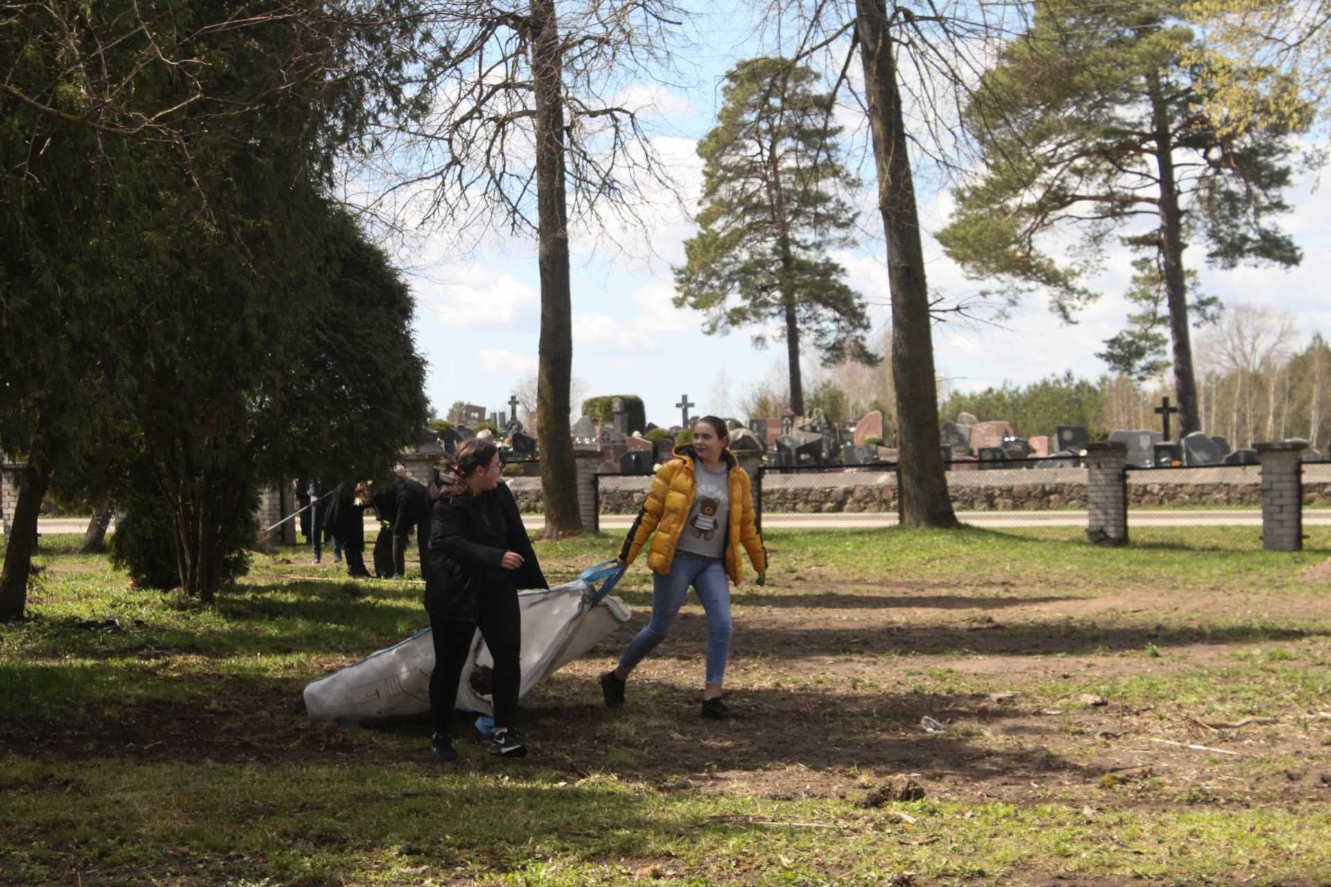 Pasigrožėti atbundančia gamta, saulės šviesoje įkvėpti gryno oro, pajusti, kaip veriasi širdys, išgyvenančios draugystės džiaugsmą, galėjome balandžio 26-osios popietę, išskubėję į lauką paieškoti po rudens užsilikusių lapų, surinkti šiukšlių, medžių šakų, net plytų sukrauti. Gimnazijos bendruomenė darbavosi uoliai: nešė maišus, kupinus lapų, dalijosi grėbliais, vieni kitiems padėjo. Paplušėję visi susibūrė prie gardžiųjų blynų su uogiene, vaišinosi arbata, bendravo. Gražus tas mūsų pavasaris...
