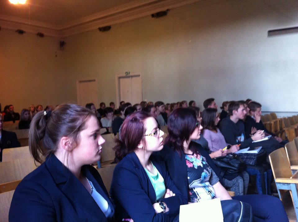 Dėstytojas dr. Mindaugas Grigaitis džiaugiasi drausmingais abiturientais, o mes nuoširdžiai dėkojame lektoriui už informatyvią paskaitą ir gilias įžvalgas.