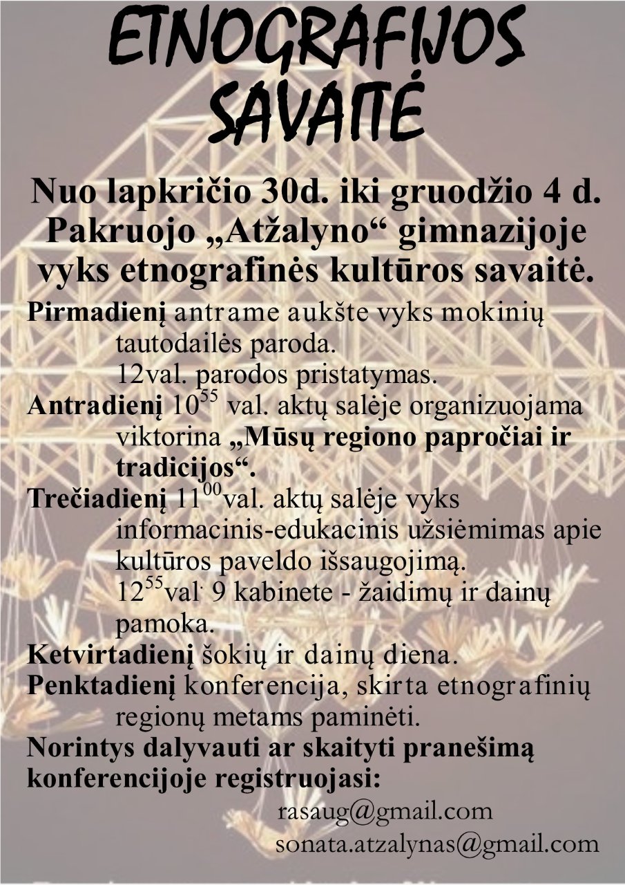 Lapkričio 24 dieną Pakruojo „Atžalyno“ gimnazijoje kultūros ir muzikos meistriškumo pamoką vedė garsus Lietuvos smuikininkas, dirigentas, politikas, profesorius Gediminas Dalinkevičius ir jo jaunasis kolega gitaristas, Muzikos ir teatro akademijos auklėtinis Simonas Bušma. Profesionaliai grodami, be įgarsinimų ir papildomų decibelų, jie įrodė, kad galime būti talentingais klausytojais, mąstytojais , tiesiog kultūringais žmonėmis.