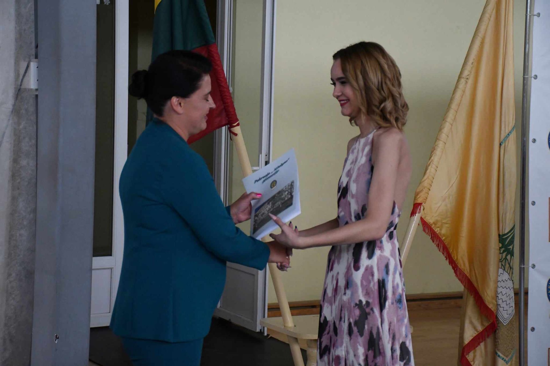 Dvi abiturientų grupės šoko valsą, kuris visada  ypatingas, nes atspindi juos pačius, jų vidinį pasaulį, mintis, jausmus, svajones, polėkį ir laisvę. Stebėdama besisukančias poras, jaudinosi choreografijos mokytoja Audronė Geležinytė-Šniukienė, ne tik kūrusi nuostabų šokio reginį, bet ir ruošusi brandos atestatų įteikimo šventės programą. Abiturientų vardu padėkos žodį gimnazijos administracijai,  mokytojams, tėveliams tarė abiturientė Livija Udrėnaitė. Renginį vedė trečiokai gimnazistai Ugnė Gelažiūtė ir Titas Stankūnas.