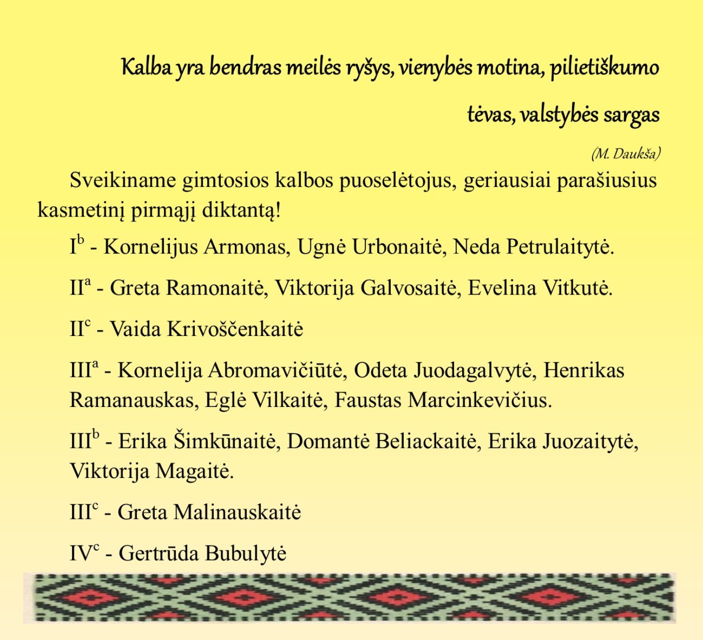 Vystant žolei ir byrant medžių lapams pasaulyje išryškėja naujas, gilus kitokių prasmių grožis. Kviečiame ieškoti jo kartu... Prisimenate Antuano de Sent-Egziuperi alegorinę pasaką „Mažasis princas“? Kūrinyje yra tikrųjų vertybių link vedanti mintis: „Tai, kas svarbiausia, nematoma akimis.“ O kas yra svarbiausia? Ateikite į 4 kabinetą ir kartu su jaunaisiais gimnazijos žurnalistais paieškosime atsakymų...