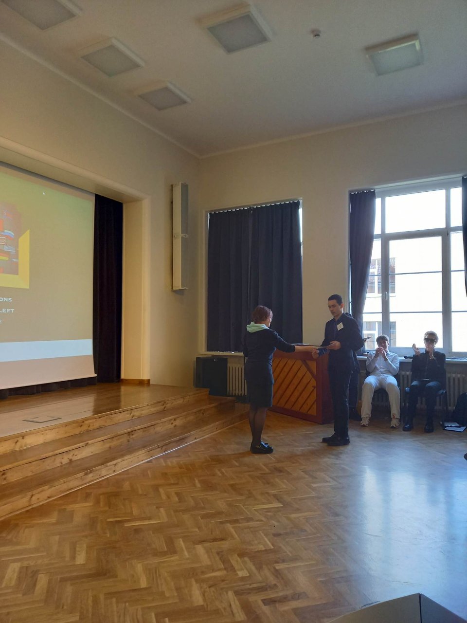 Kovo 29 dieną Pasvalio P. Vileišio gimnazijoje vyko tradicinis Oratorių konkursas. Pasvaliečių kvietimu konkurse dalyvavo keturi mūsų gimnazistai. Konkurso tema “Relations between nations are too important to be left to governments alone“. Gimnazistai turėjo paruošti 3-5 minučių trukmės kalbą apie tautų tarpusavio santykių svarbą. Po kiekvieno oratoriaus kalbos publika jam uždavė įvairių klausimų. Oratorius vertino komisija. Buvo atsižvelgiama į oratorinio meno gebėjimus, charizmą, kūrybiškumą, originalumą, žodžio įtaigumą, anglų kalbos taisyklingumą, leksinį bei struktūrinį tikslingumą. Taip pat buvo vertinamas atsakymų tikslumas, taiklumas bei lakoniškumas. Mūsų II b klasės gimnazistė Skaistė Vaičiulytė I-II klasių grupėje laimėjo nominaciją už kalbos aiškumą ir sklandumą. Tokią pat nominaciją III-IV klasių grupėje gavo III b klasės mokinys Kajus Zaičenko. Nugalėtojams pasiruošti padėjo mokytoja Rasa Stravinskienė.