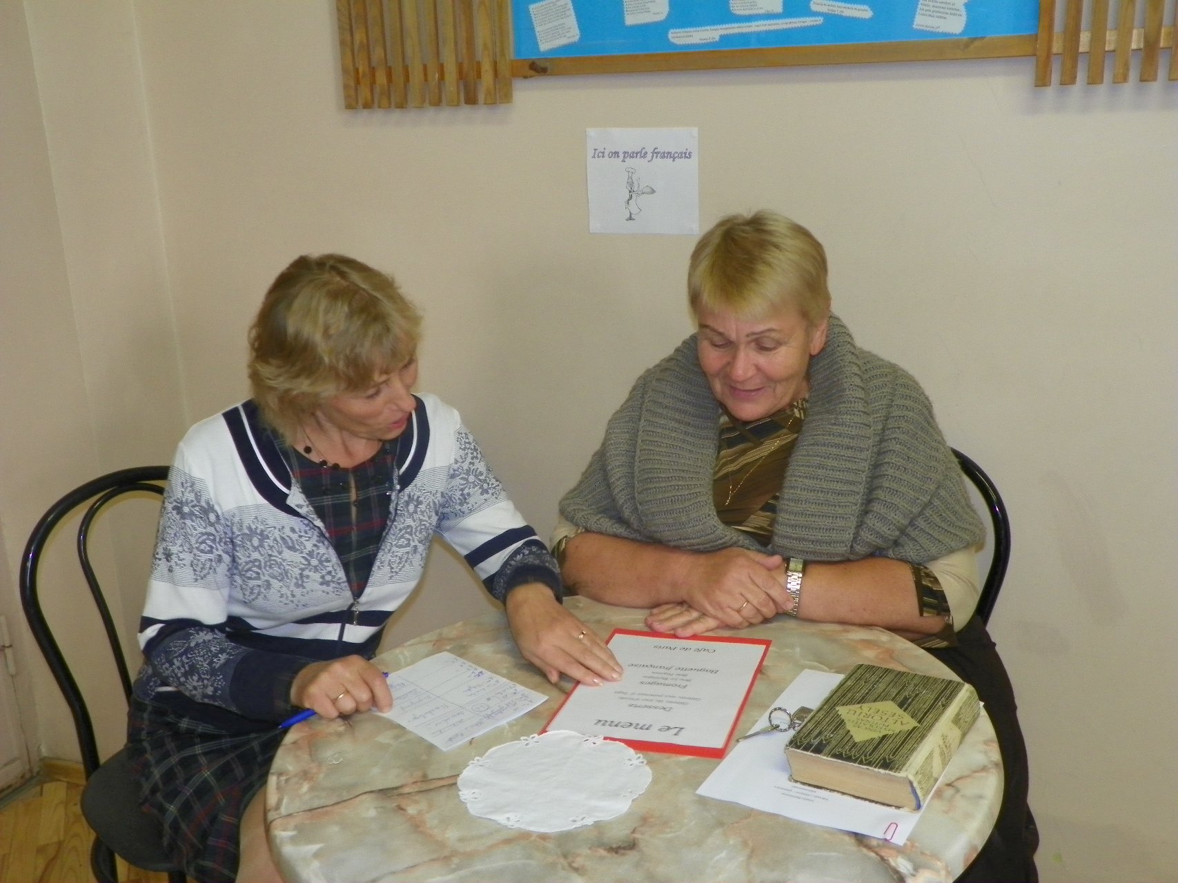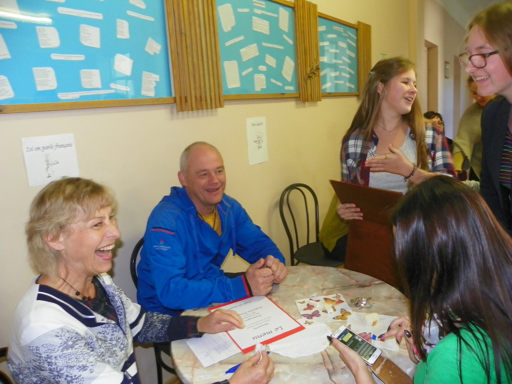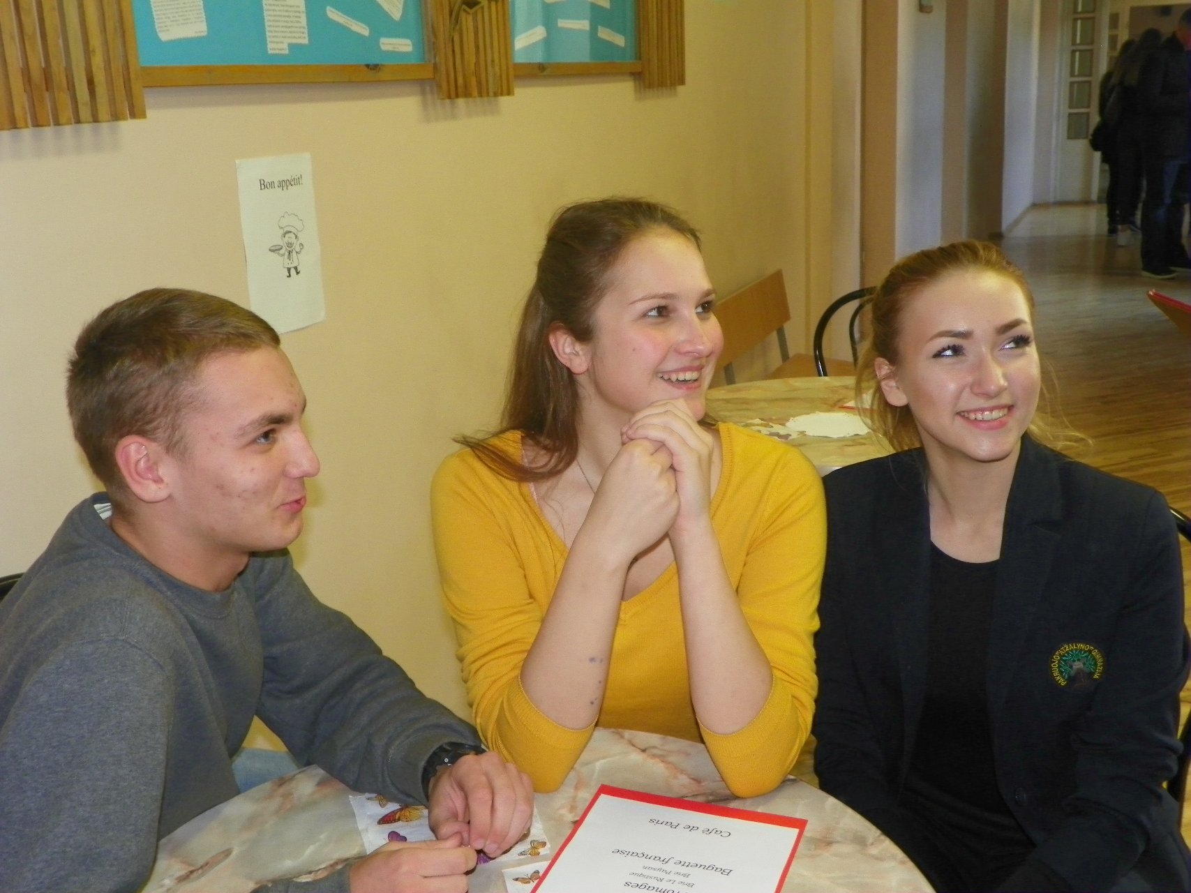 Į teatralizuotą kavinę pakvietė prancūzų kalbos mokytoja bei mokiniai. Reikėjo tik teisingai atsakyti į klausimus apie Prancūzijos kultūrą bei civilizaciją ir buvo galima iš kavinės meniu ne tik išsirinkti, bet ir paragauti gardžių skanėstų: Ingos obuolių pyrago, sūrio, bagetės (prancūziško batono), dienos pyrago su vyšniomis ir varške, taip pat kitų vaišių. Buvo smagu skambant prancūziškai muzikai pajusti tos šalies dvasią.