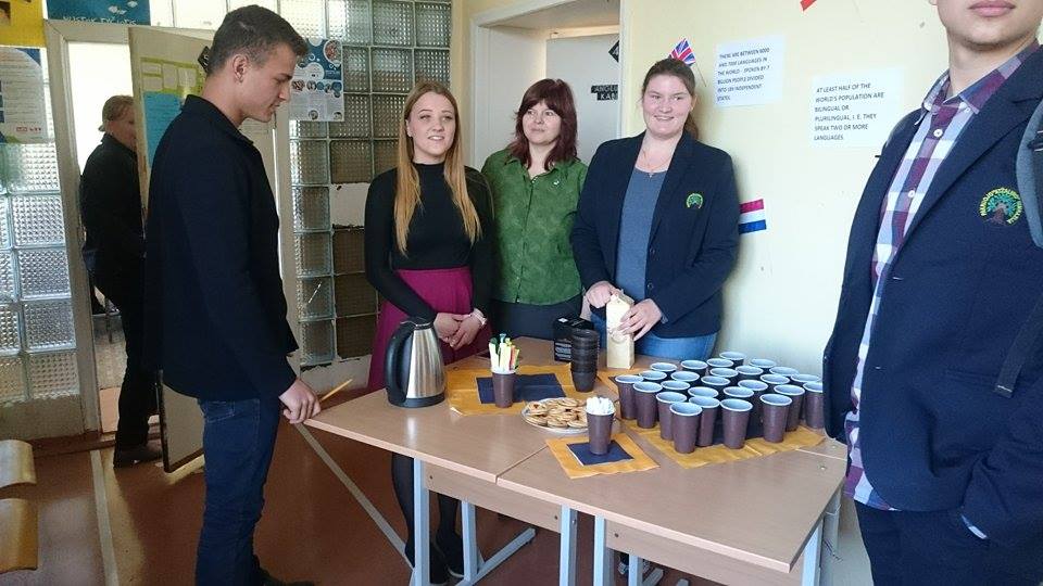 Anglų kalbos mokytojos kvietė dalyvauti viktorinoje apie angliškai kalbančių šalių kultūrą, meną, įžymius žmones. Šalia kabinetų buvo vaišinama tikra angliška arbata, sausainiais, stende puikavosi minėta užsienio kalba parašyti įvairūs posakiai ir faktai apie Europos šalis.