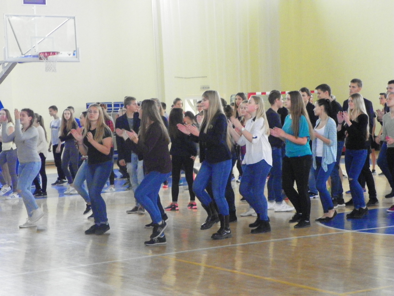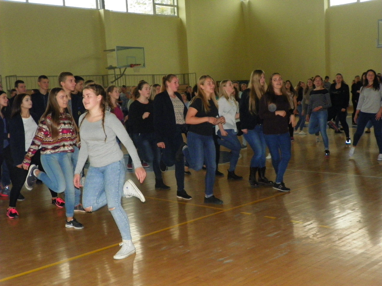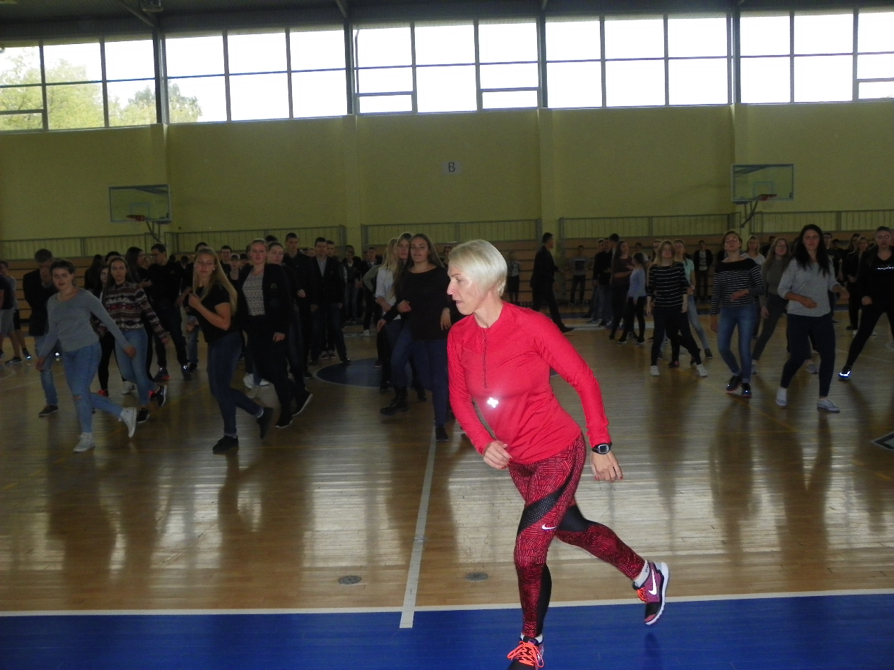 Trečiadienį per ilgąją pertrauką gimnazistai skubėjo į sporto salę. Linksmąją mankštą „Judam kartu☺“ bendruomenei vedė Pakruojo sporto klubo ABC prezidentė trenerė Ramunė Pociuvienė. Paprašyta apibūdinti tokios mankštos ypatumus, ji teigė, kad tai buvo tikrų tikriausia klasikinės aerobikos pamoka, kurią sudarė pramankšta, intensyvioji dalis, kuri užtruko ilgiausiai, ir paskutinysis etapas – atsipalaidavimas bei statiniai pratimai. Taip sportuojant labai svarbi tinkamai parinkta muzika, ritmas, ir, žinoma, geros emocijos.