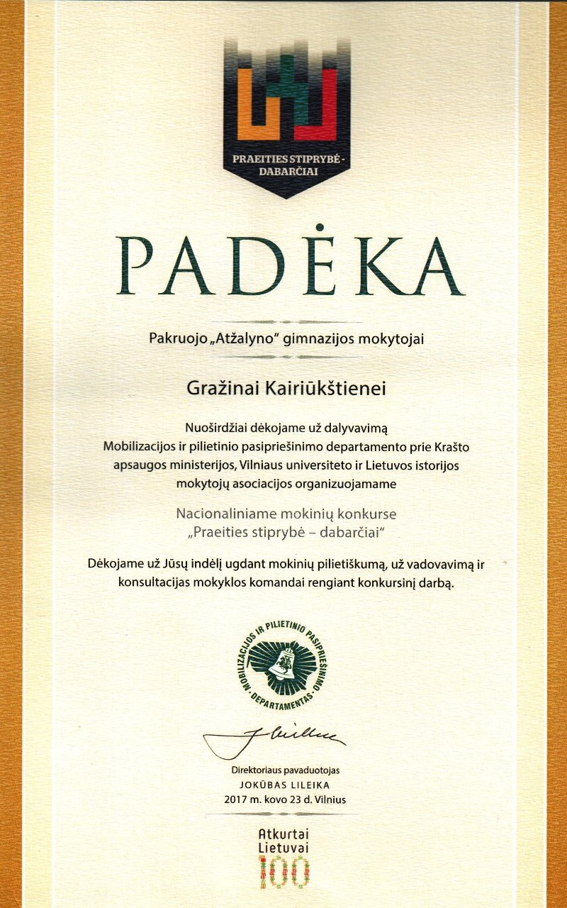 I-II gimnazijos klasių mokiniai aktyviai prisijungė prie šios puikios iniciatyvos ir 2017-04-20 po pamokų tvarkė gimnazijos teritoriją: rinko šiukšles, medžių šakas, grėbė pernykščius lapus. Balandžio 25 d. po pamokų mokytojai taip pat noriai dalyvavo talkoje „DAROM 2017“. Tegu išpuoselėtas mokyklos kiemas džiugina ne tik gimnazijos bendruomenę, bet ir praeivius.