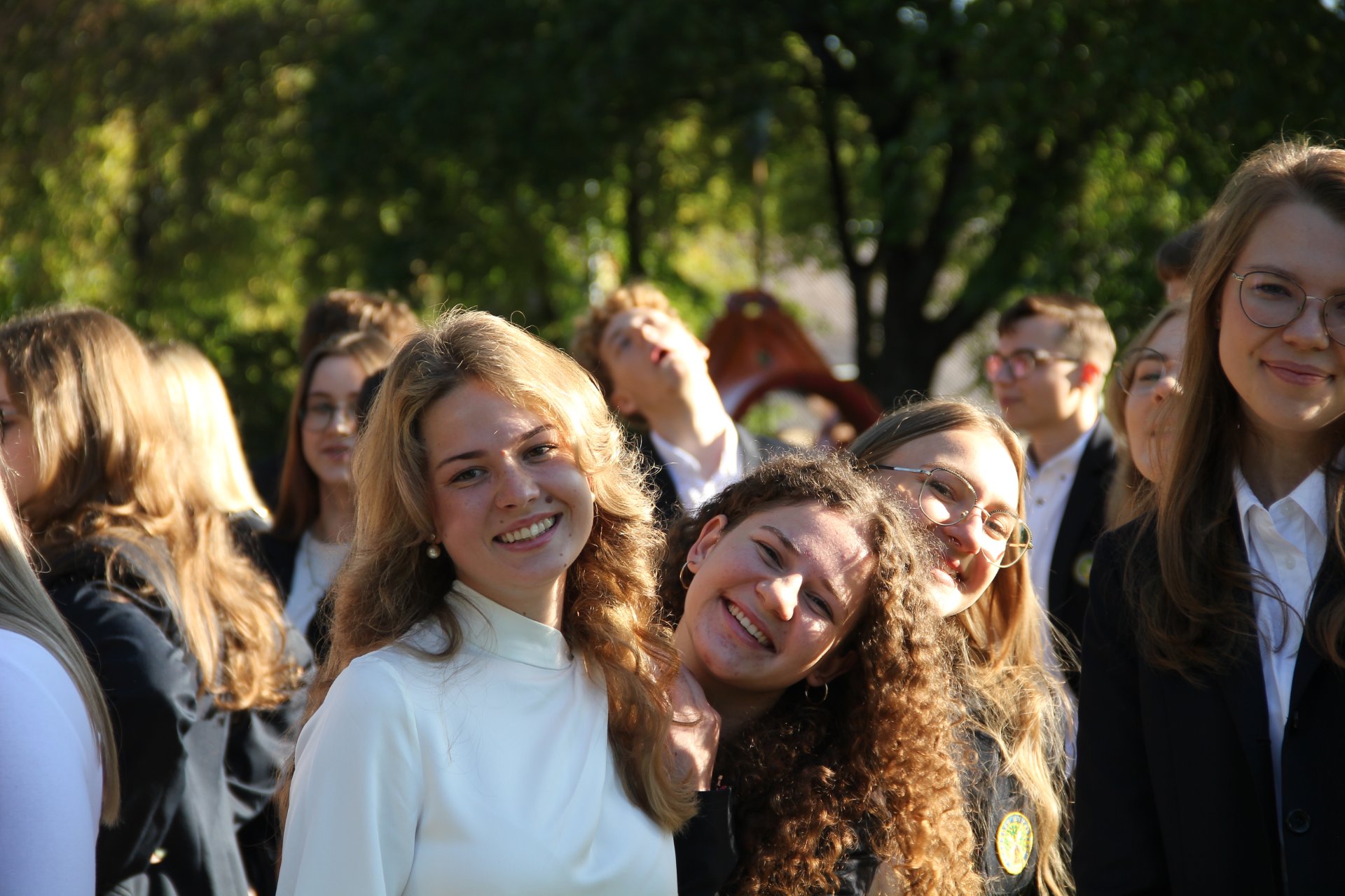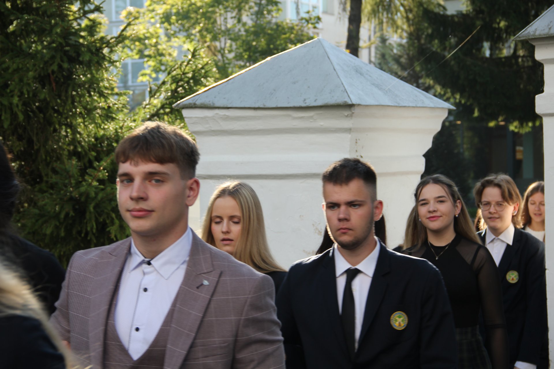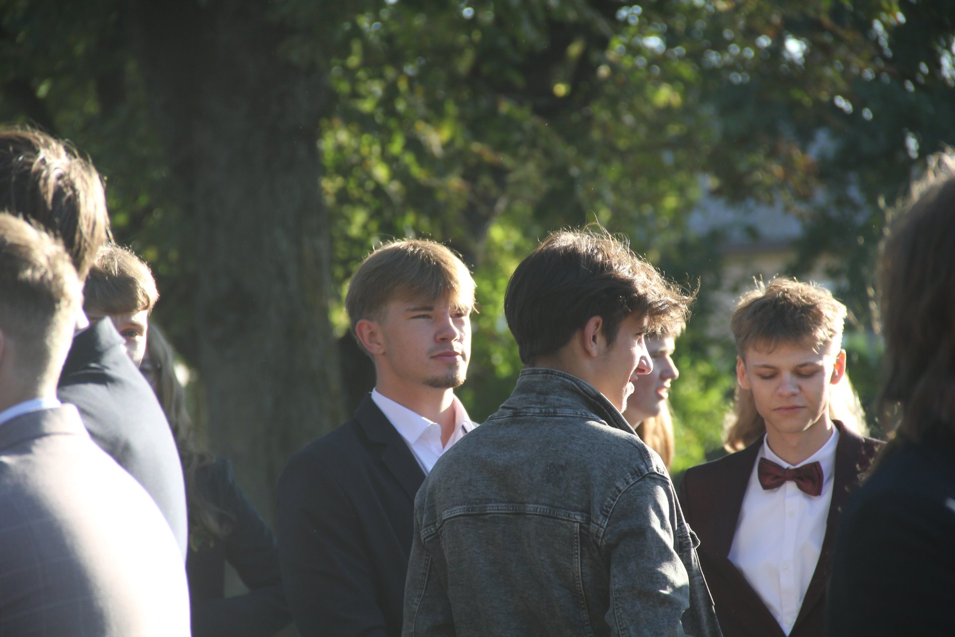 Kalbėjo abiturientė, gimnazijos mokinių seimo prezidentė Greta Gudaitė. Ji sveikino pirmokus, įsijungusius į stiprią bendruomenę, antrokus kvietė neišgyventi dėl PUPP, trečiokams priminė, kad mokslo metai bus kupini renginių, pareikalausiančių išradingumo ir kūrybiškumo. Kreipdamasi į abiturientus pabrėžė, kad silpnieji laukia galimybių, o stiprieji susikuria jas patys, todėl ketvirtokė įsitikinusi, kad bendraamžiai jau žino, ko nori ir kaip to sieks.