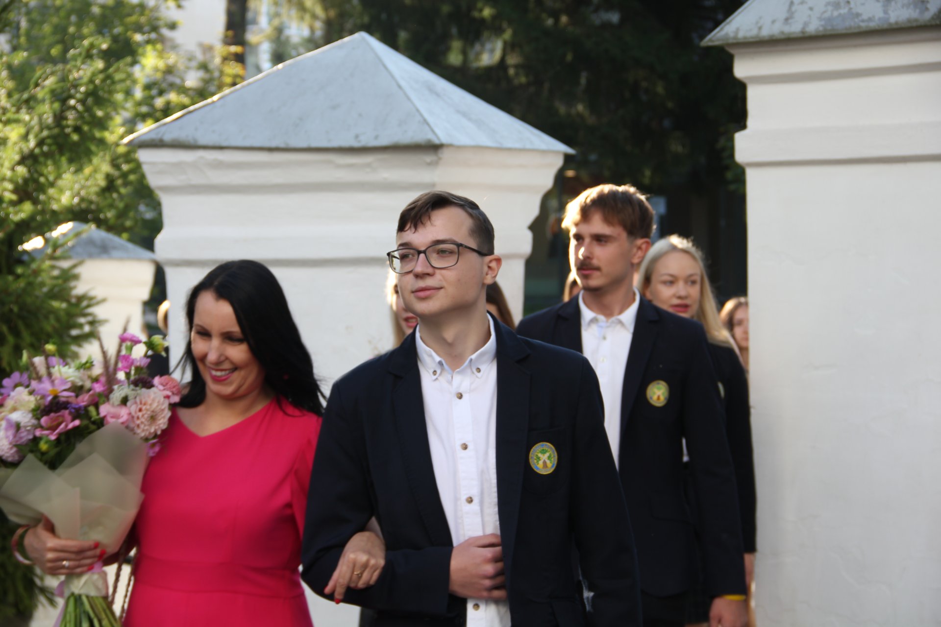 Po to visi skubėjo į mokyklą, prie kurios trečiokai pasitiko oriai žengiančius 77-osois laidos abiturientus. Sporto salėje šurmuliavo gimnazijos bendruomenė, atvyko svečių. Renginį vedė II a klasės gimnazistai Elinga Bajorūnaitė ir Dominykas Kairys. Vedėjai linkėjo, kad kiekviena diena prasidėtų nuo žodžių, skatinančių atrasti, vertinti ir kurti. Ruduo irgi žavus savo spalvomis, kupinas tikro susitikimo džiaugsmo. Pakruojo „Atžalyno“ gimnazijos direktorė Asta Valuntienė visus pasveikino mokslo metų pradžios proga, gimnazistams linkėjo tapti „geresne savo paties versija“, laikytis išminties principo ir disciplinos – mokytis. Anot vadovės, tai labai svarbu, nes mokymasis išgrynina viską ir lieka tai, kas kilniausia. Direktorė pirmokus kvietė nebijoti klysti, kelti klausimų, sukurti savęs vertas svajones, o mokytojai padės jas įgyvendinti. Be to, gimnazijos vadovė įteikė atminimo dovanėles gimnazijos merginų liaudiškų šokių kolektyvui, kuris dalyvavo 100-osios Lietuvos dainų šventės „Kad giria žaliuotų“ šokių dienos programoje „Amžių tiltais“, padėkos raštas - šokių mokytojai Audronei Geležinytei-Šniukienei. Direktorė pasidžiaugė, kad mes ne tik šokame, bet ir kuriame tvarią mokyklą – už puikiai įvertintus tvarius ir inovatyvius projektus gimnazijos mokinių komandoms ir mokytojams įteikti VILNIUS TECH diplomai ir gimnazijos atminimo dovanėlės.