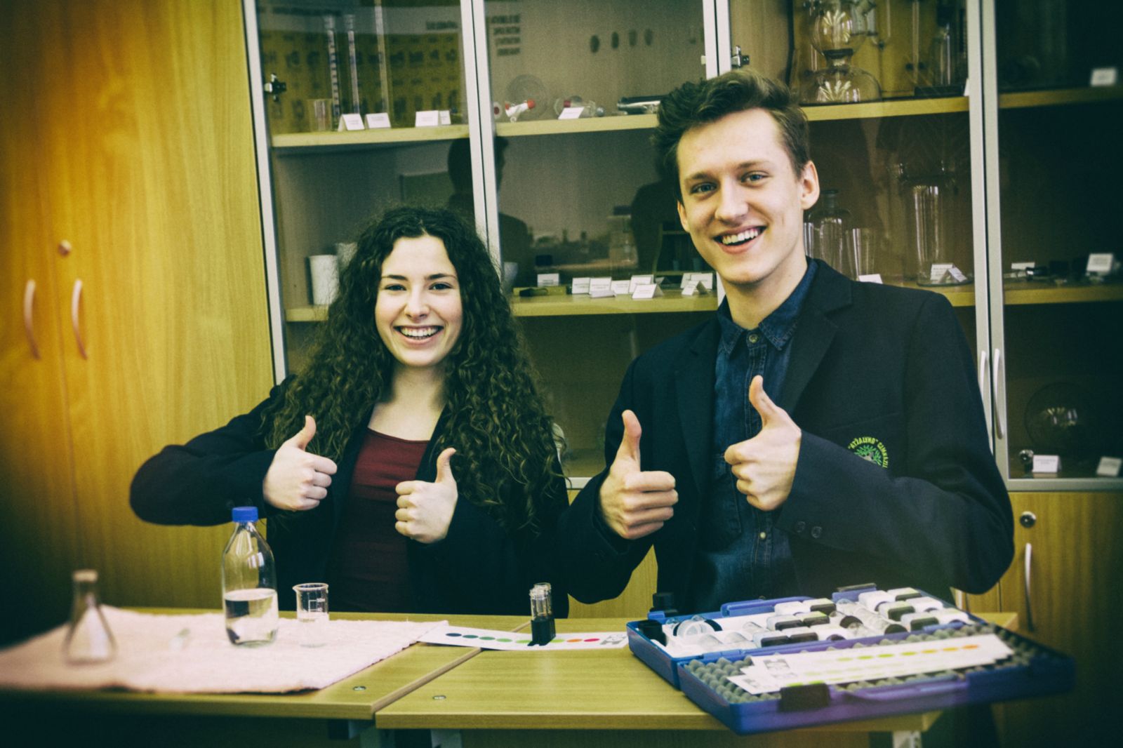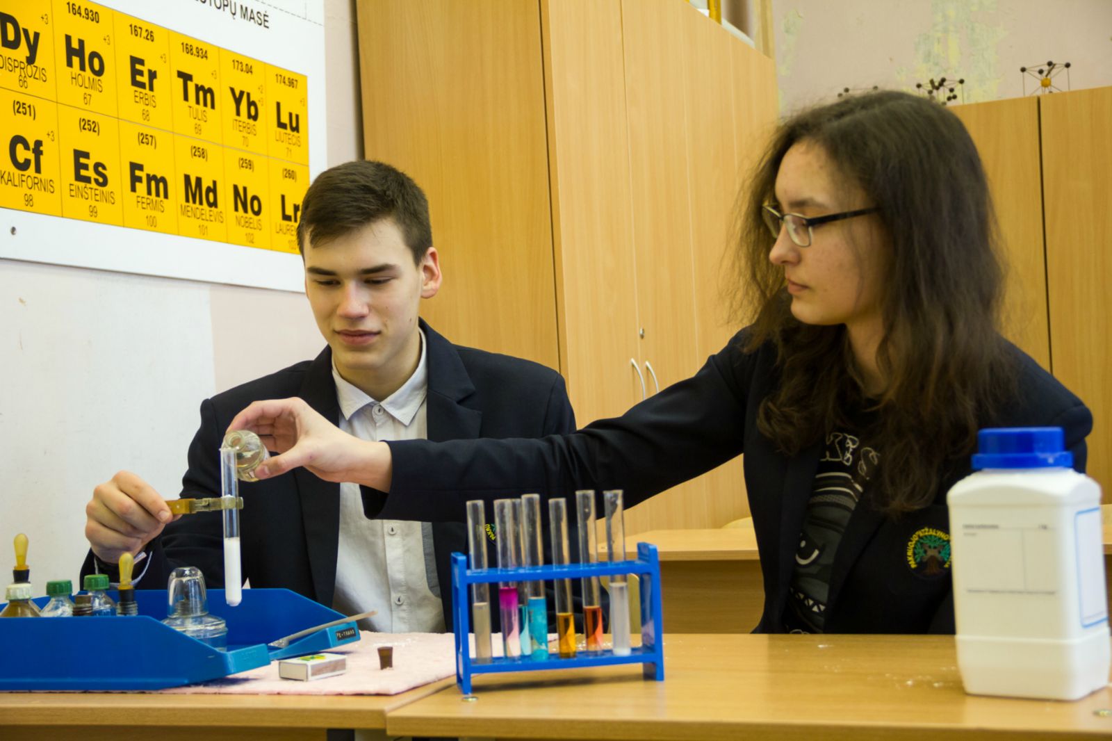 Šių metų vasario 10d. vykusios 63-osios Lietuvos mokinių fizikos olimpiados II etape puikiai sekėsi mūsų gimnazijos mokiniams. Deividas Zaleskis užėmė pirmąją vietą iš pirmų klasių atstovų. Donata Pakeltytė užėmė pirmąją vietą iš ketvirtų klasių atstovų.