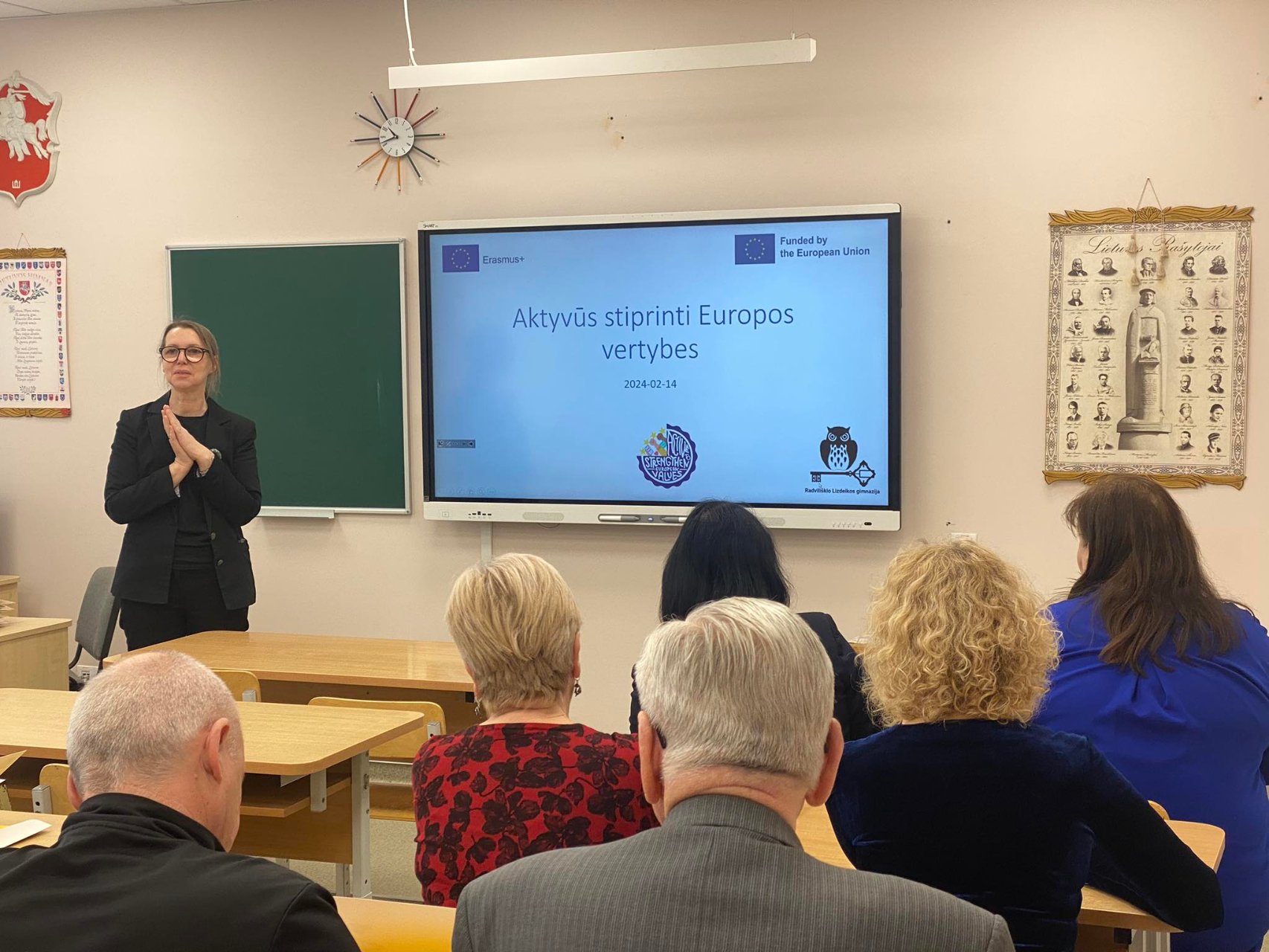 Vasario 14 d. į svečius atvyko Radviliškio Lizdeikos gimnazijos direktoriaus pavaduotoja ugdymui Skirmantė Petraitienė. Viešnia mūsų mokytojams pristatė debatus kaip įtraukią edukacinę priemonę, aptarė jų metodiką ir viešąjį kalbėjimą įvairių dalykų pamokose. Be to, Skirmantė Petraitienė pakvietė į Radviliškio Lizdeikos gimnaziją pasisemti praktinių patarimų, išvysti, kaip debatai integruojami į skirtingų dalykų pamokas. Susitikimas įkvėpė plačiau pasidomėti universaliu debatų metodu ir jo taikymo praktikomis. Nuoširdžiai dėkojame Radviliškio Lizdeikos gimnazijos direktoriaus pavaduotojai Skirmantei Petrauskienei už informatyvų pristatymą.