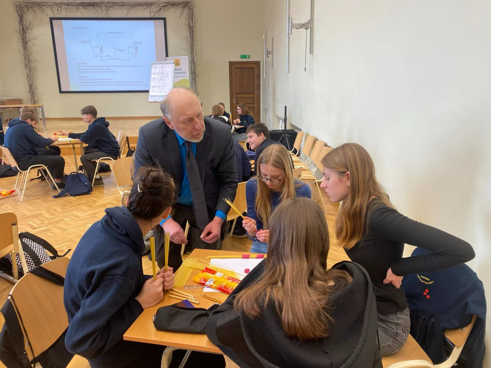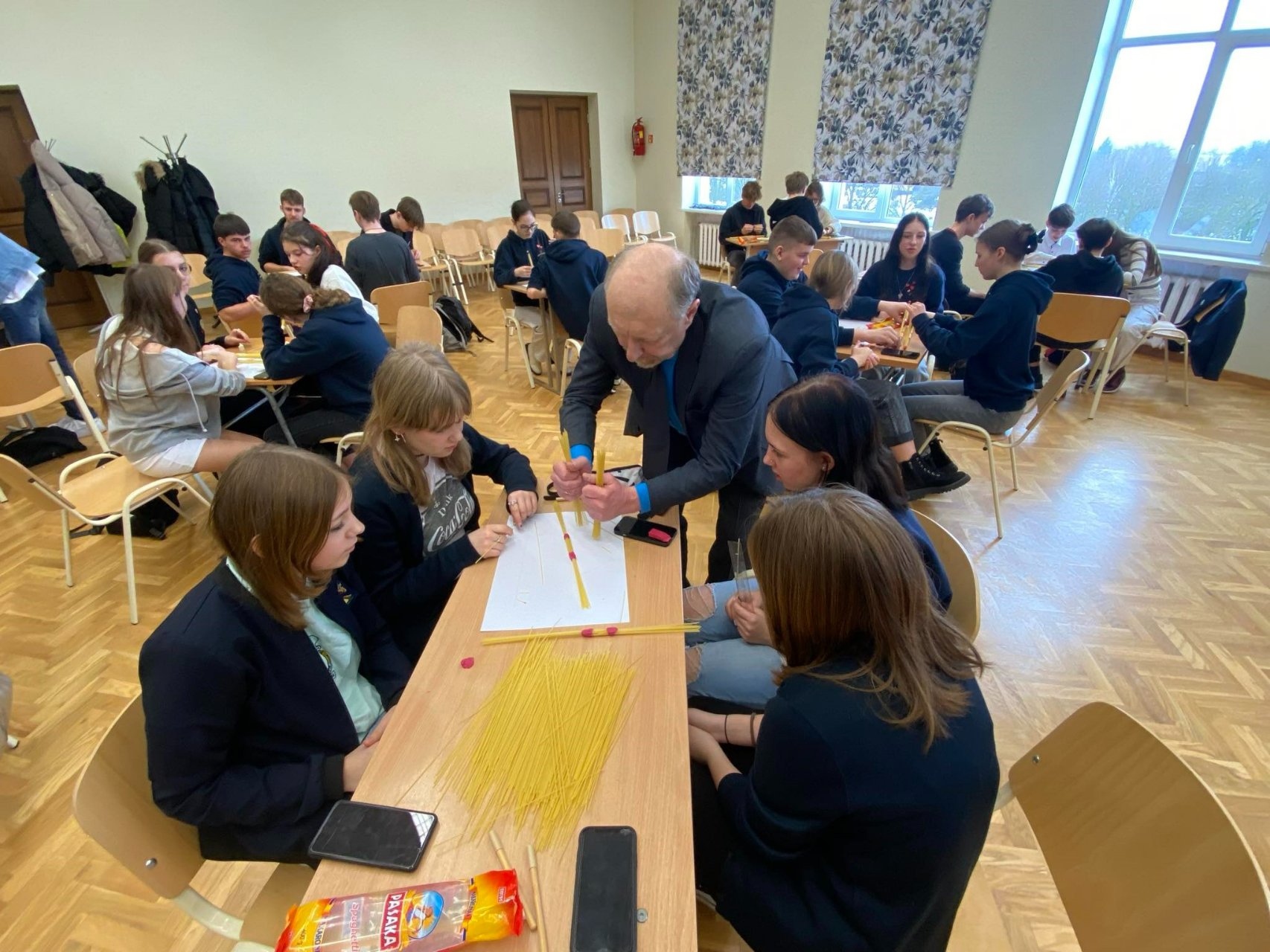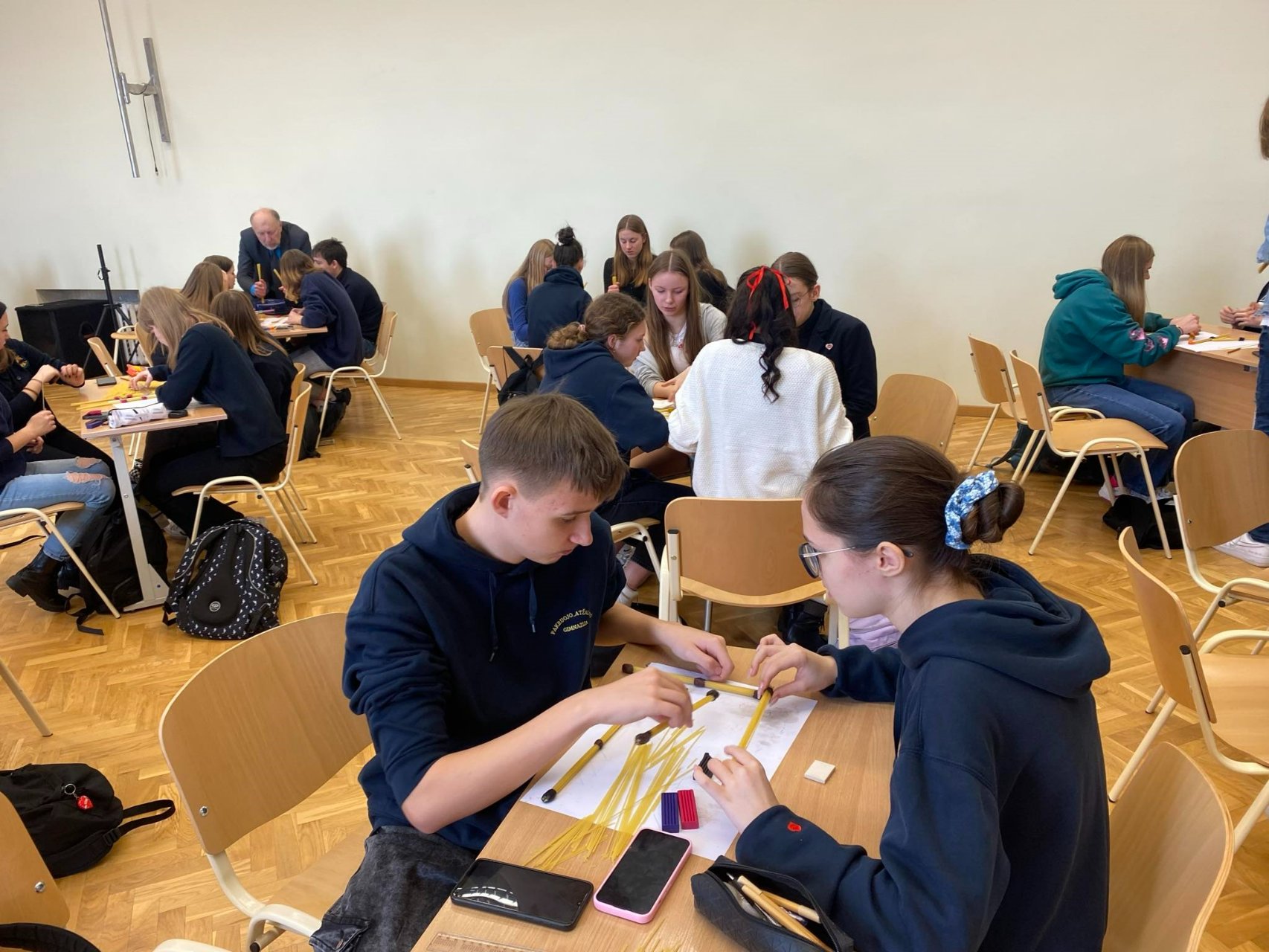 Šiais metais gimnazijoje meilės dieną paminėjome visiškai netradiciškai. Gimnazija kartu su Vilniaus Tech universitetu organizavo nacionalinio mokinių čempionato „Makaronų tiltai 2024“ atrankos etapą.